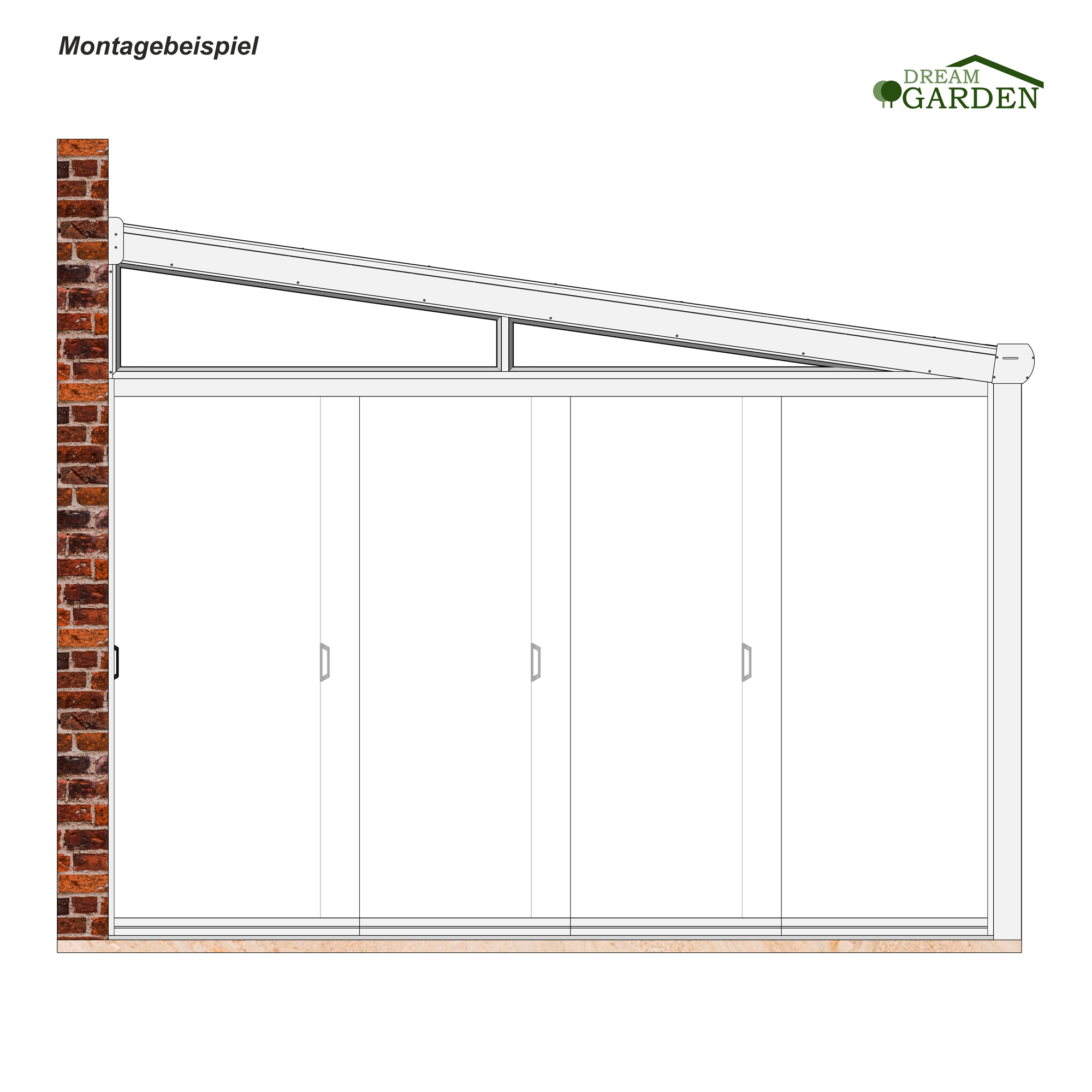 Dreamgarden Abschlusskeil aus Aluminium und ESG-Sicherheitsglas verleiht Ihrer Terrassenüberdachung ein vollendetes Bild, verhindert das Eindringen von Schlagregen und ermöglicht zusätzlich die Installation der Seitenelemente.