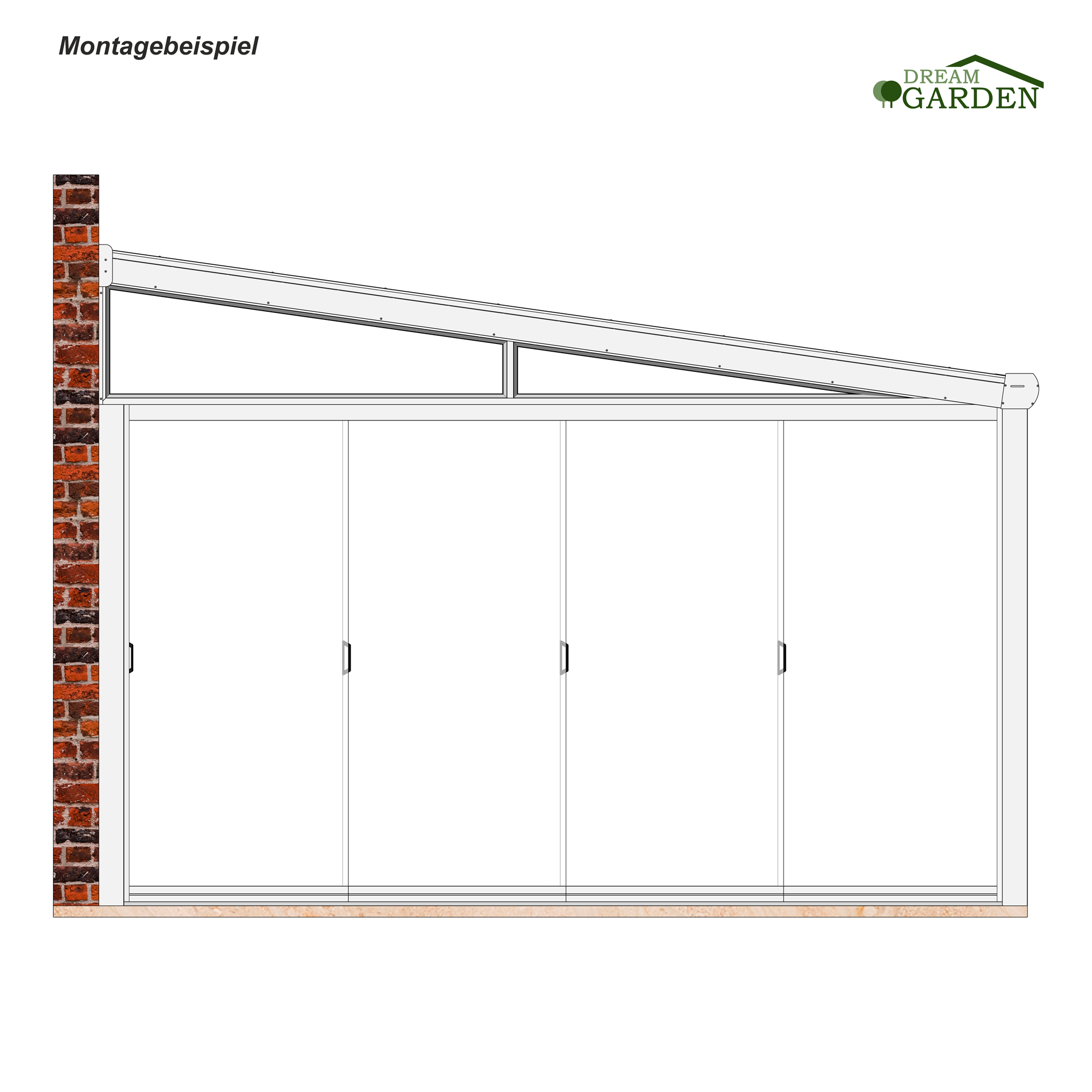 Dreamgarden Abschlusskeil aus Aluminium und ESG-Sicherheitsglas verleiht Ihrer Terrassenüberdachung ein vollendetes Bild, verhindert das Eindringen von Schlagregen und ermöglicht zusätzlich die Installation der Seitenelemente.