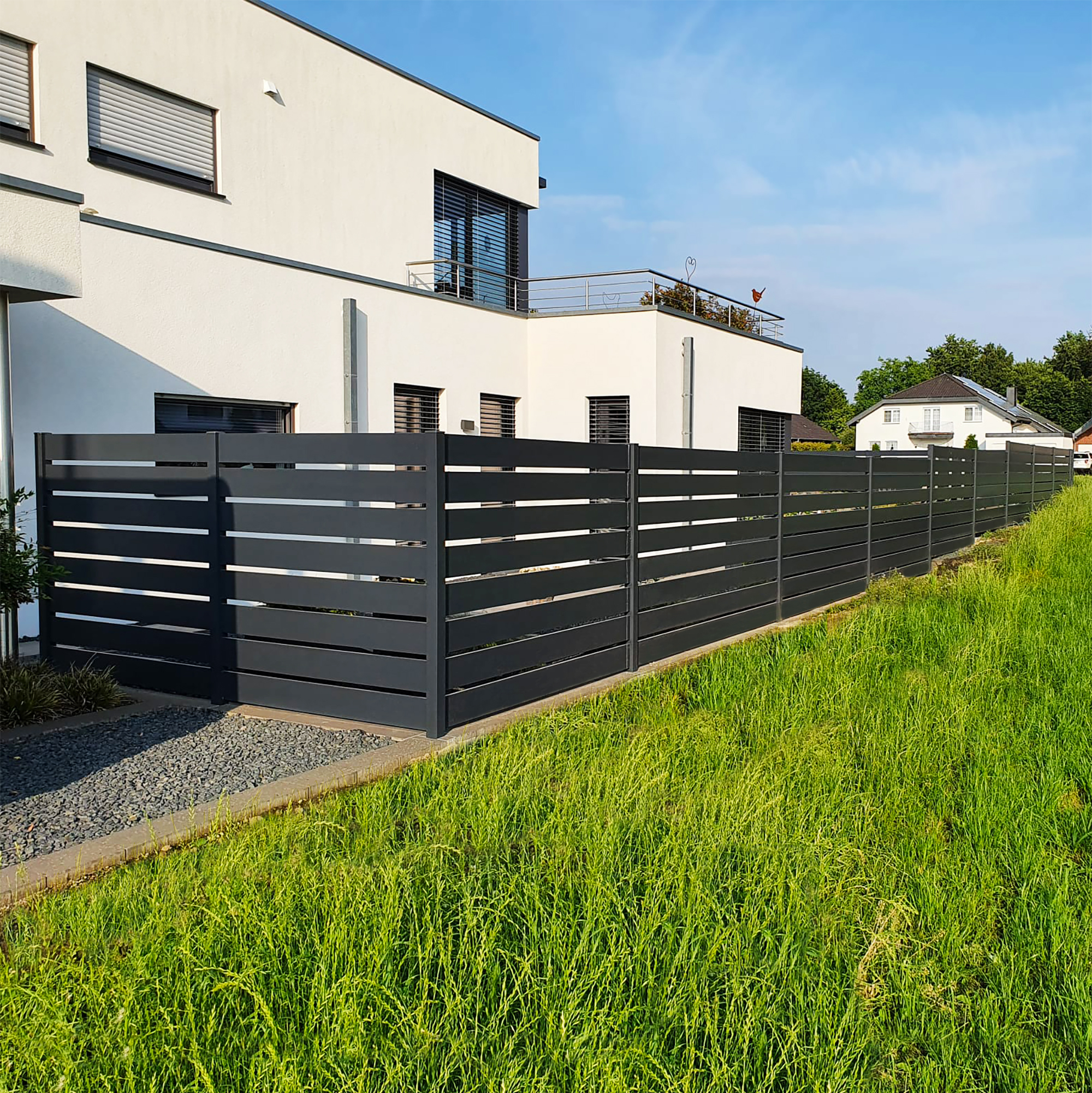Die hochwertig verarbeiteten Aluminiumzäune mit Pulverbeschichtung von Dreamgarden bieten Ihnen den idealen Sichtschutz für Ihr Grundstück. Das moderne und schlichte Design passt perfekt zu jedem Haus. So können Sie das moderne Bild Ihres Eigenheims abrunden und gleichzeitig Ihre Privatsphäre schützen.