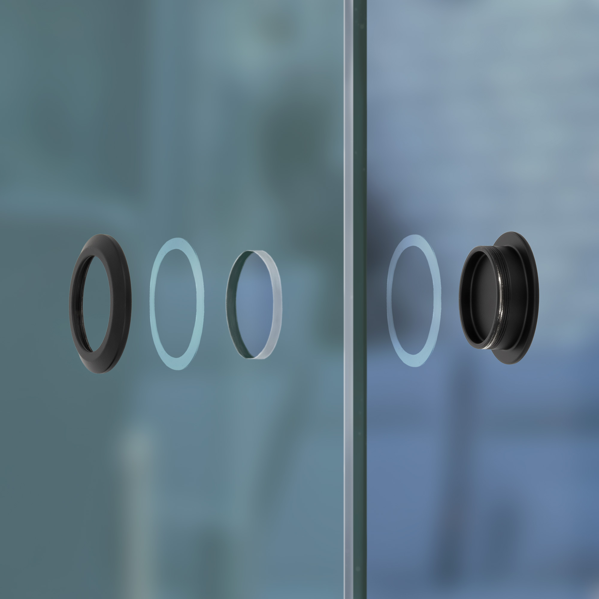 Die Plastikscheiben sind dazu da um die Glasstärke bei Bedarf auszugleichen.