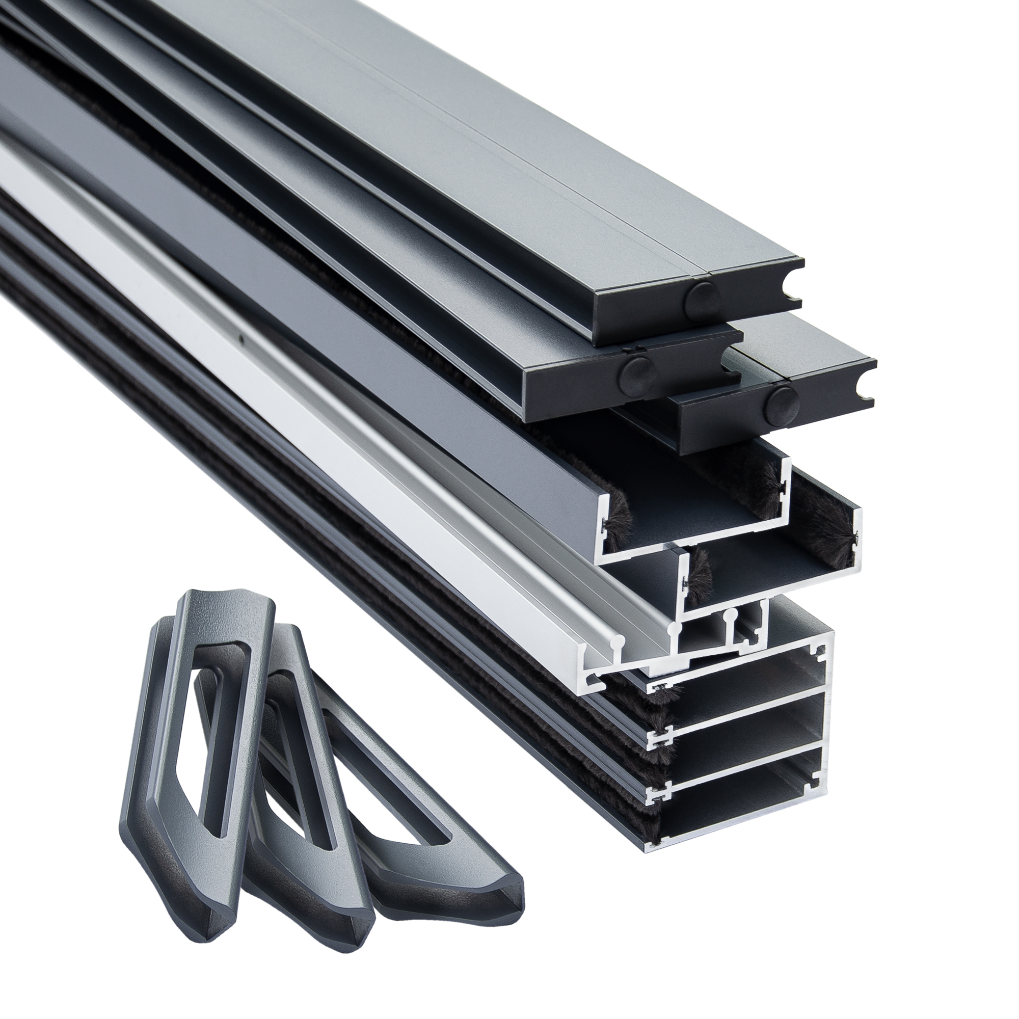 Bausatz beinhaltet: Schienensystem inkl. Türgriffe (ohne Glasscheiben)