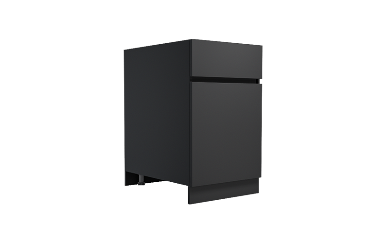 Eintüriger Schrank mit integrierten Doppelbehälter für Abfall und Schublade, der ideale Ort, um Müllbeutel und andere Reinigungsutensilien aufzubewahren, damit Sie sie bei Bedarf immer zur Hand haben. Hilft, Abfälle außer Sichtweite zu halten und sorgt für eine sauberere Außenumgebung.