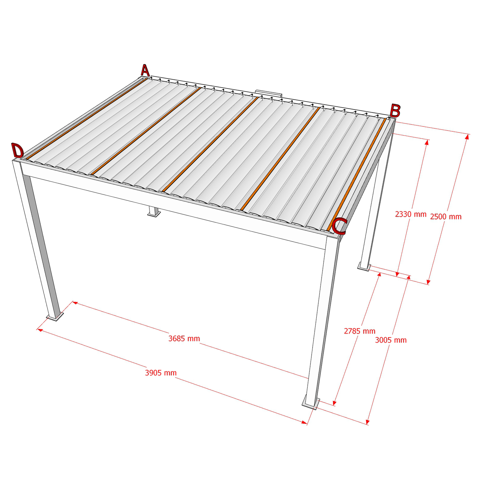 Maße Pergola (LxBxH): 3005x3905x2500 mm