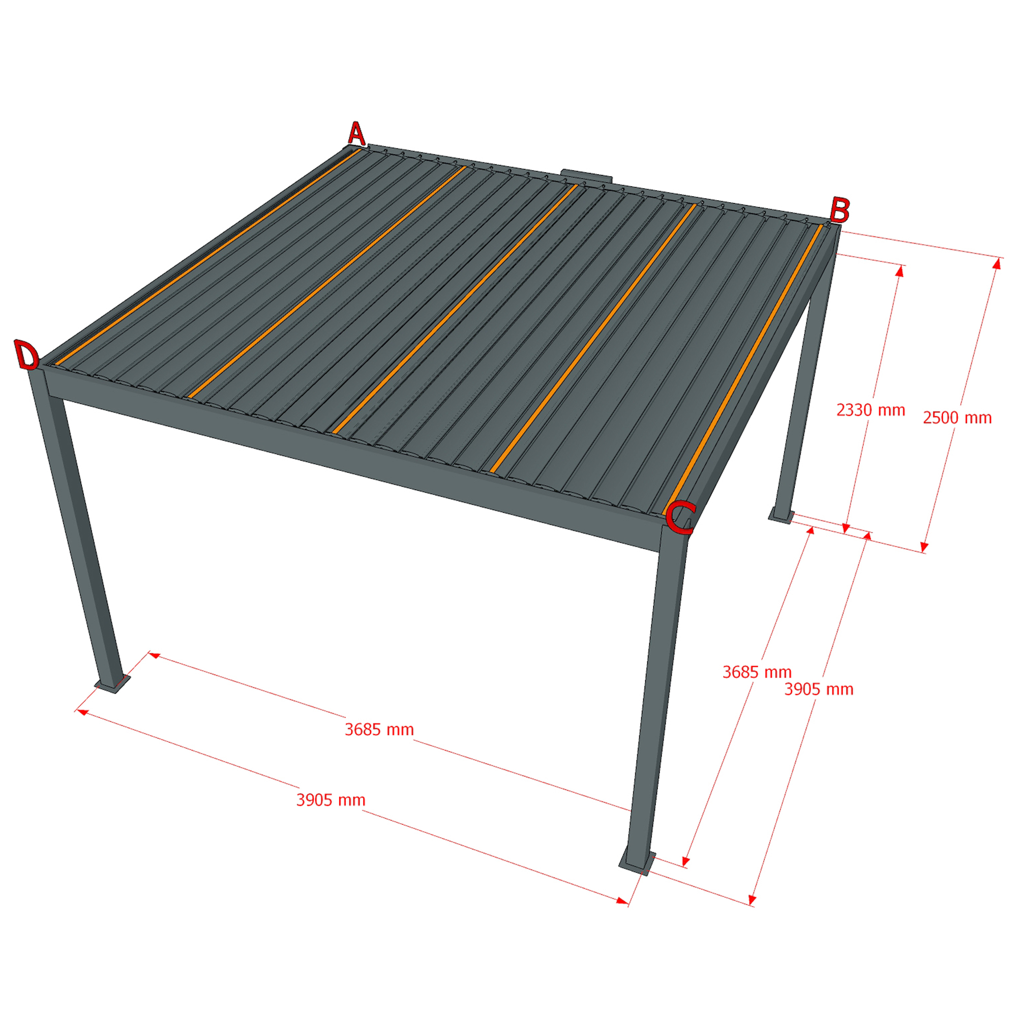 Maße Pergola (LxBxH): 3905x3905x2500 mm