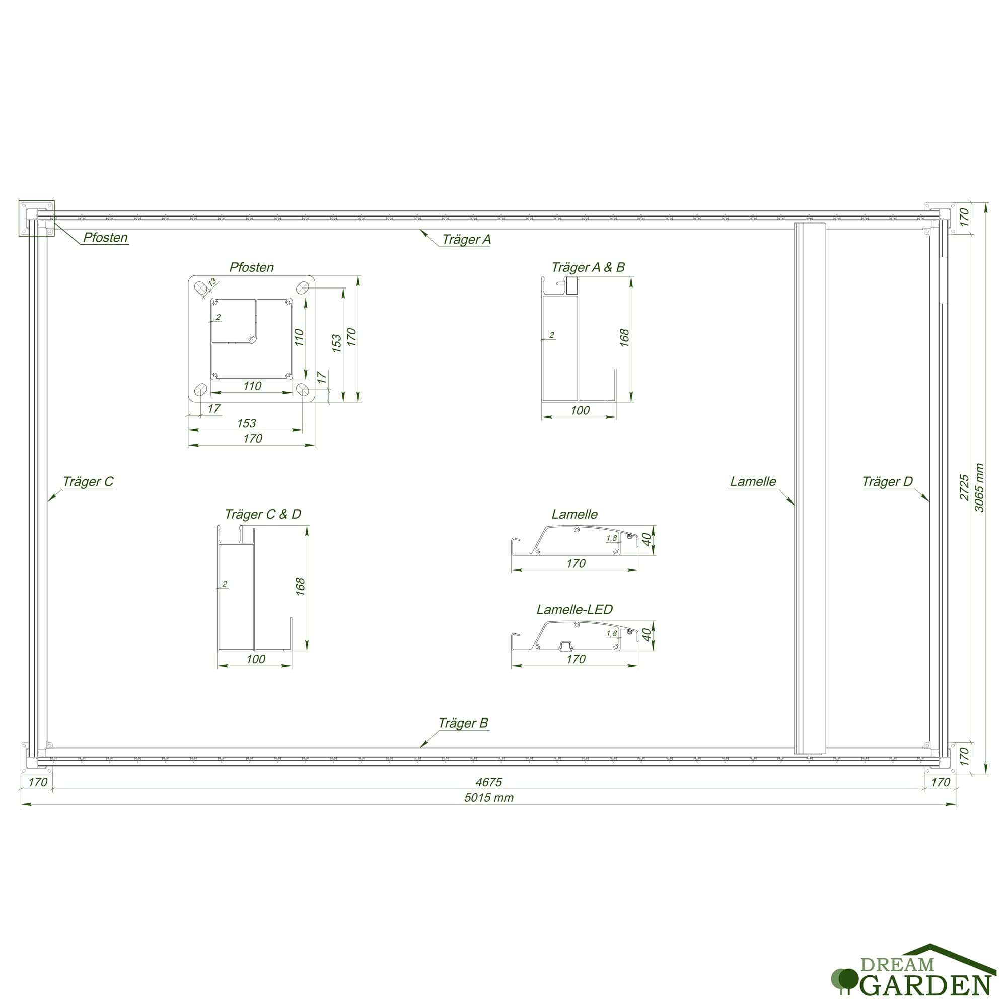 Maße Pergola (LxBxH): 3005x4955x2500 mm