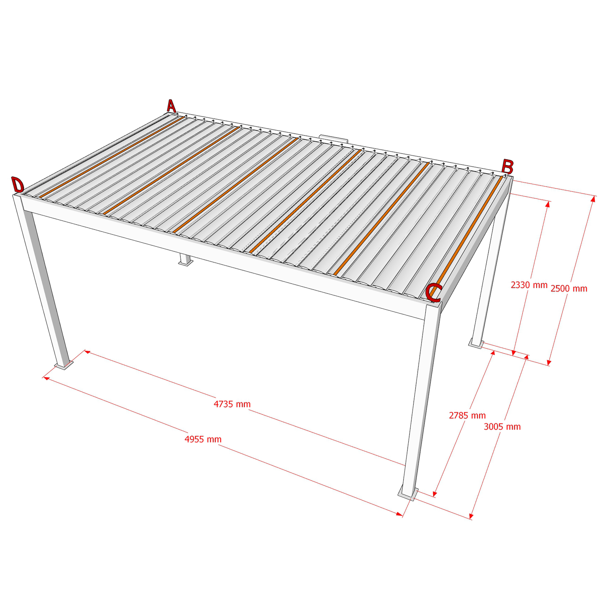 Maße Pergola (LxBxH): 3005x4955x2500 mm