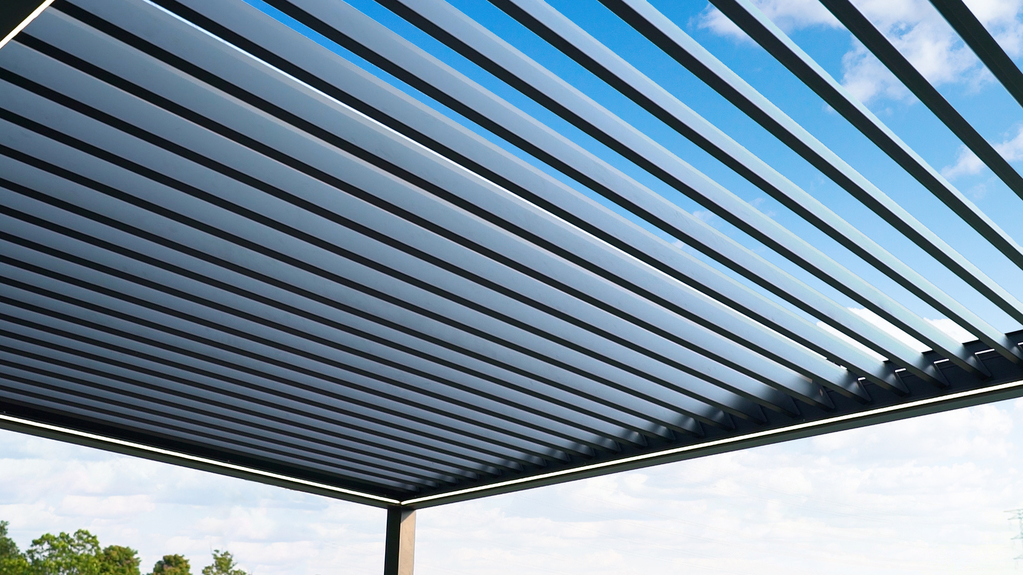Robuste Konstruktion mit drehbaren Lamellen aus pulverbeschichtetem Aluminium, die unter höchsten Qualitätsstandards produziert wurde. Ergibt sowohl an modernen, als auch an klassischen Objekten ein gutes Gesamtbild, auch als Carport nutzbar.