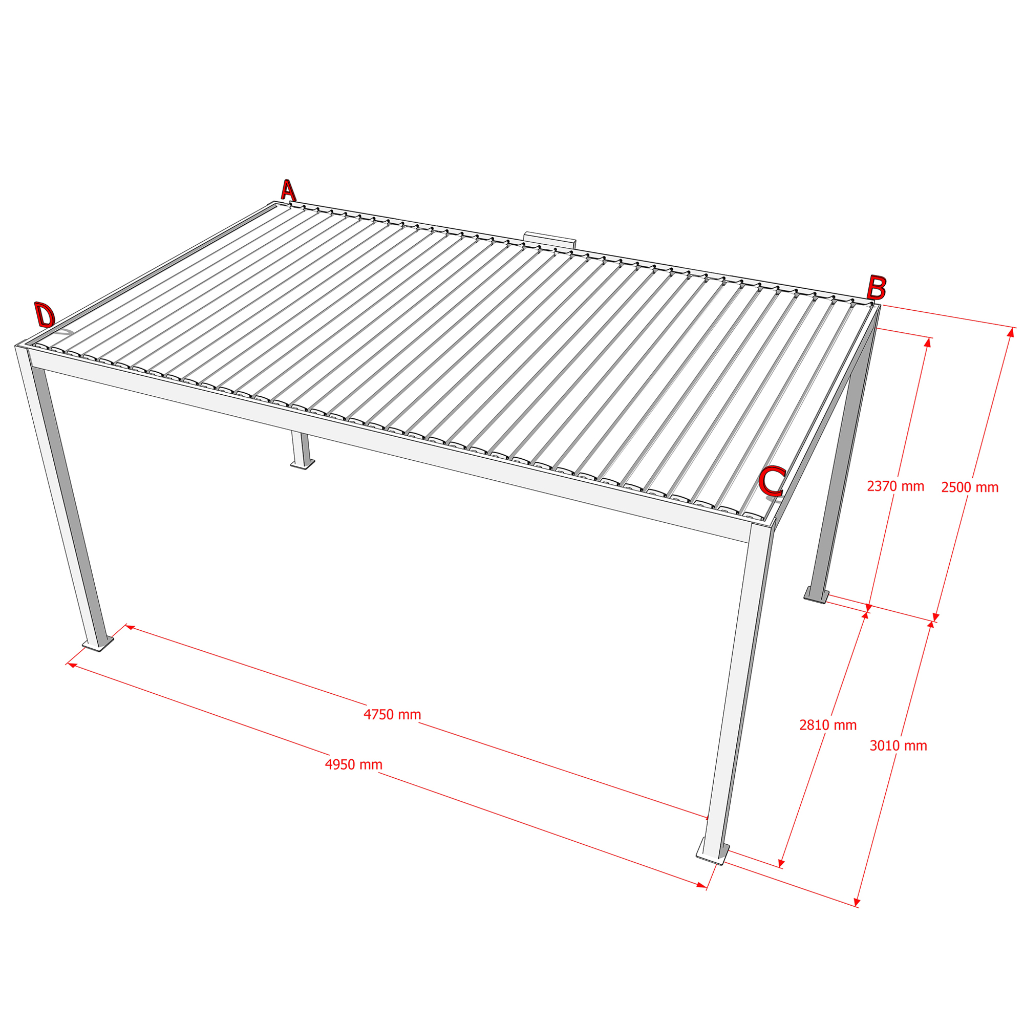 Maße Pergola (LxBxH): 3010x4950x2500 mm