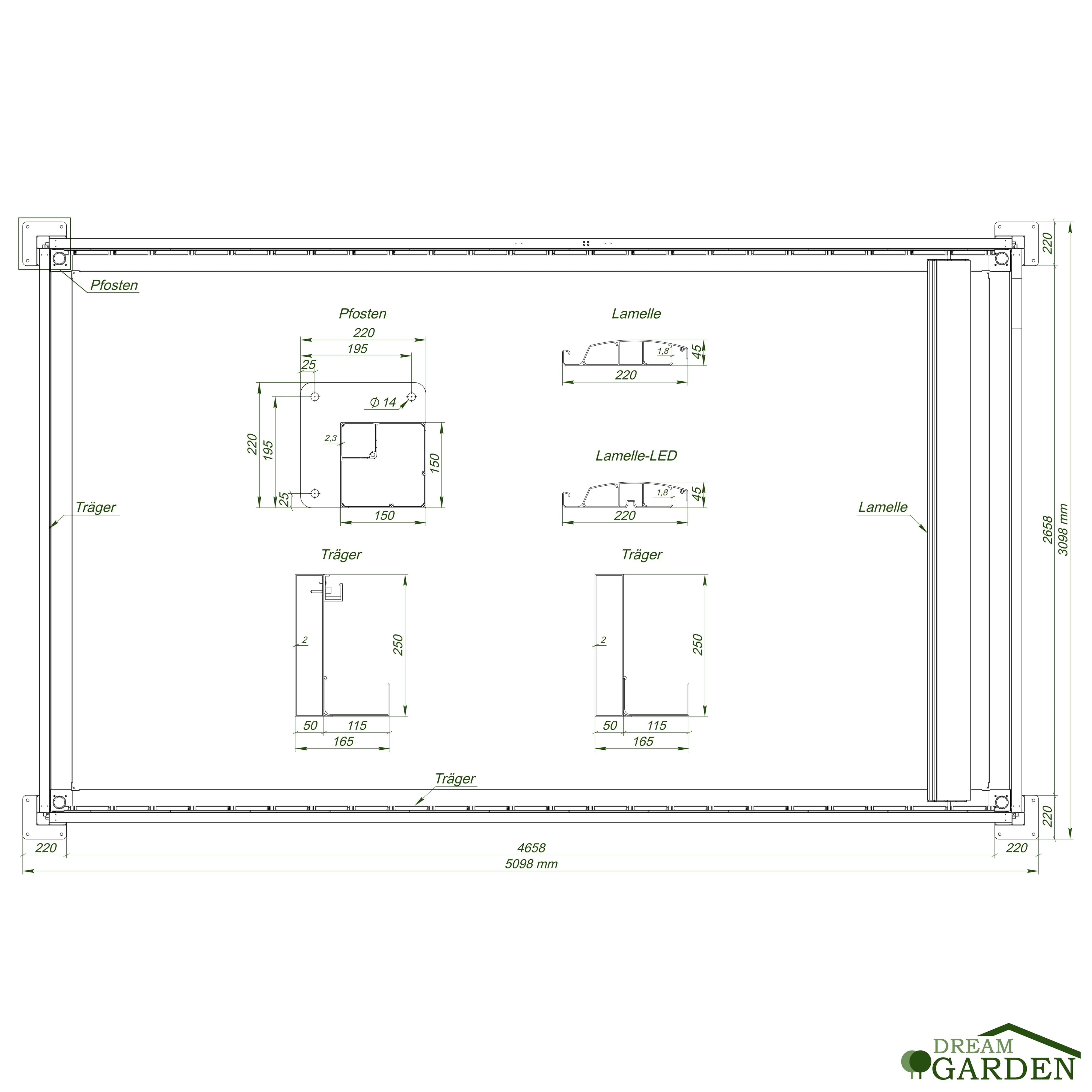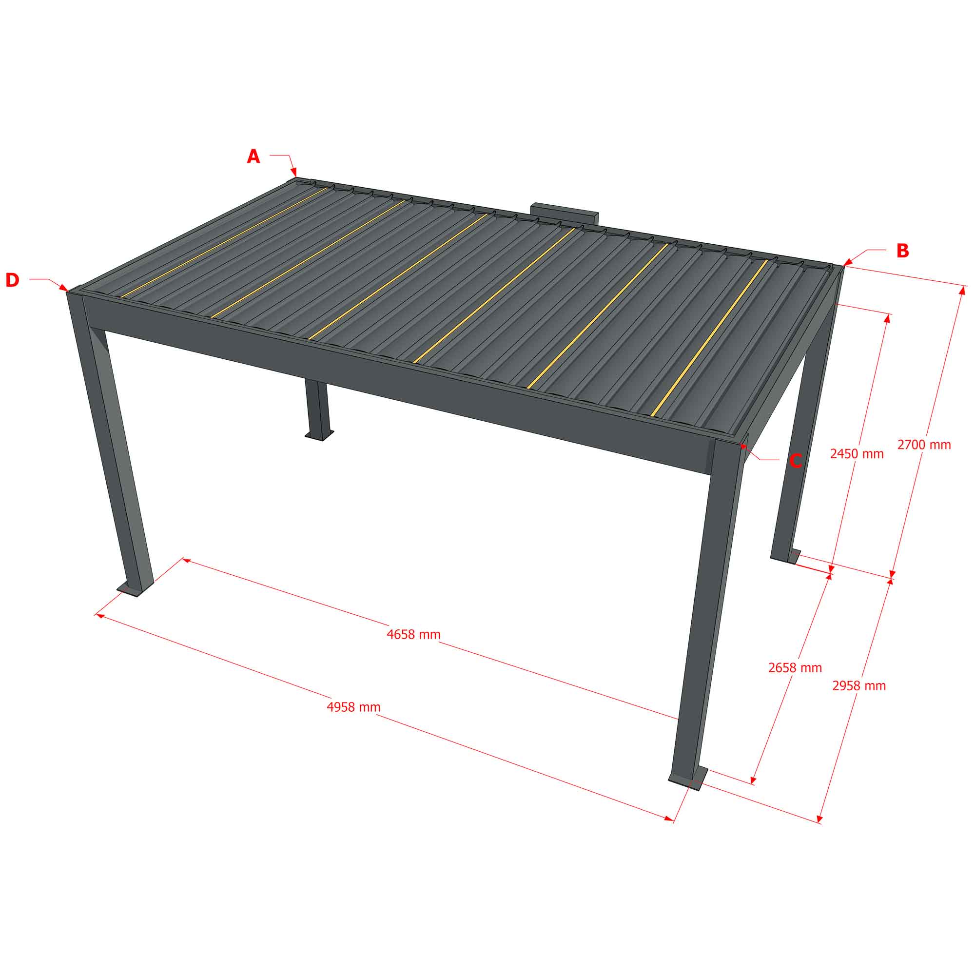 Maße Pergola (LxBxH): 2958x4958x2700 mm