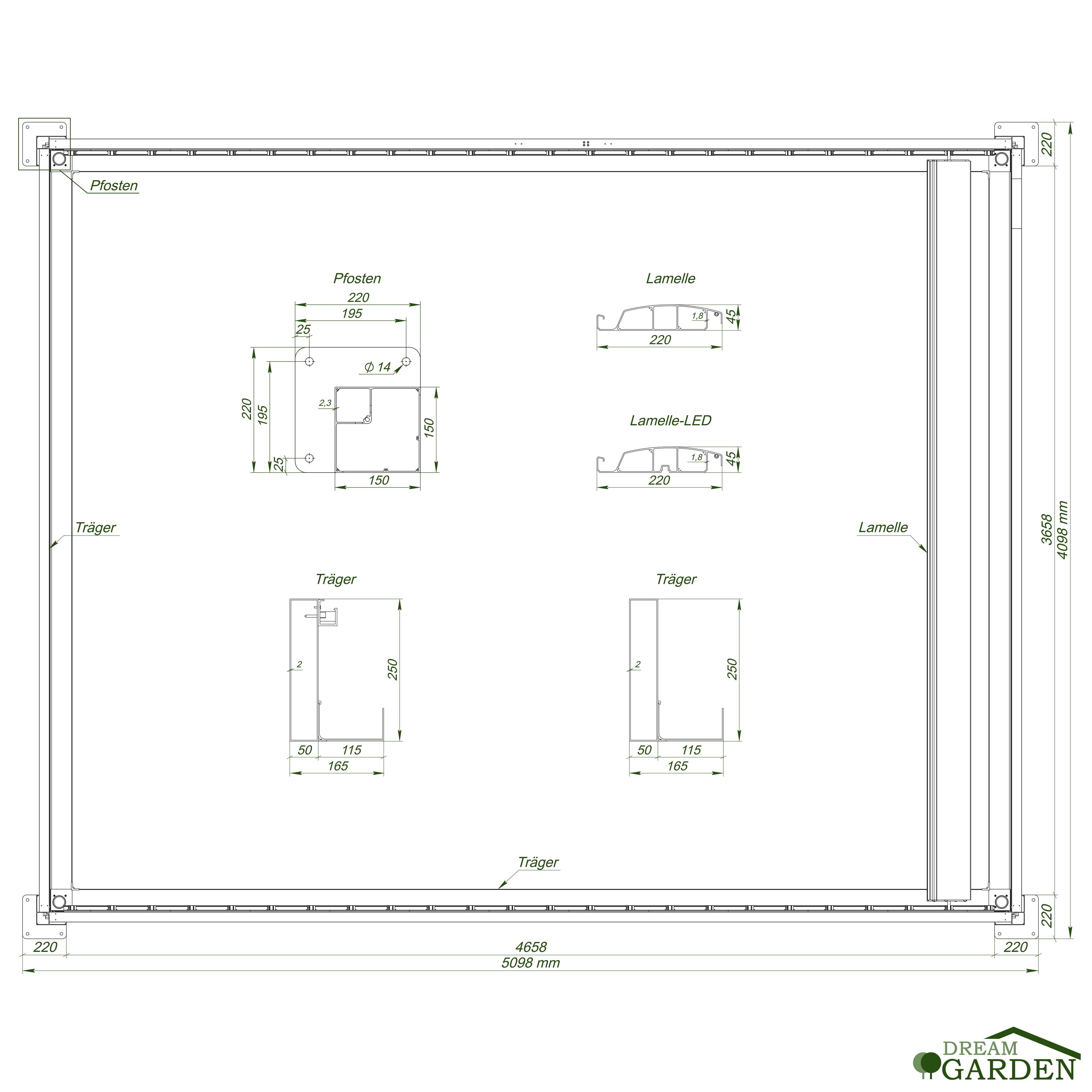 Maße Pergola (LxBxH): 3958x4958x2700 mm