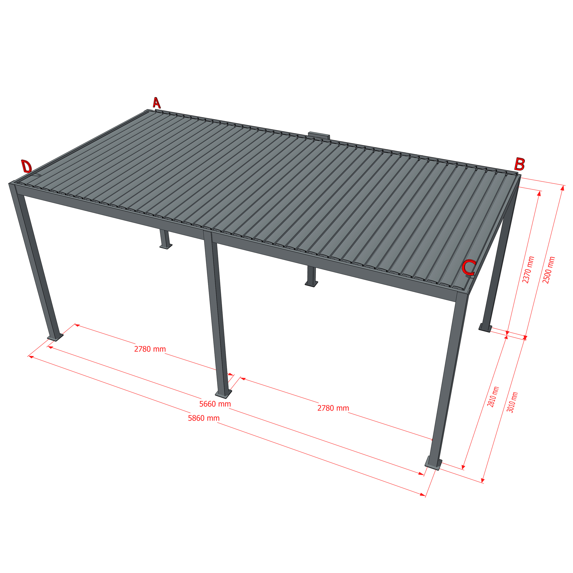 Maße Pergola (LxBxH): 3010x5860x2500 mm