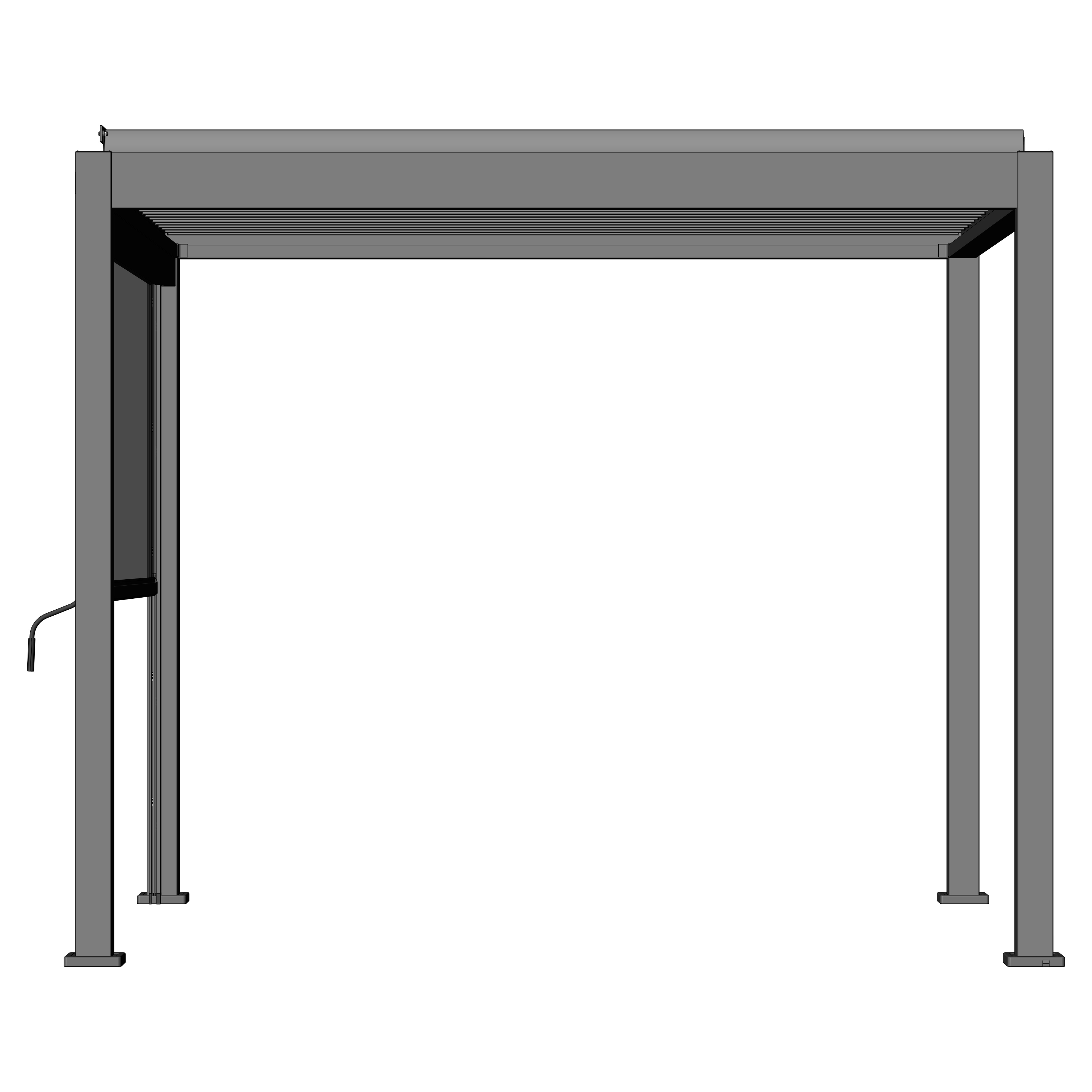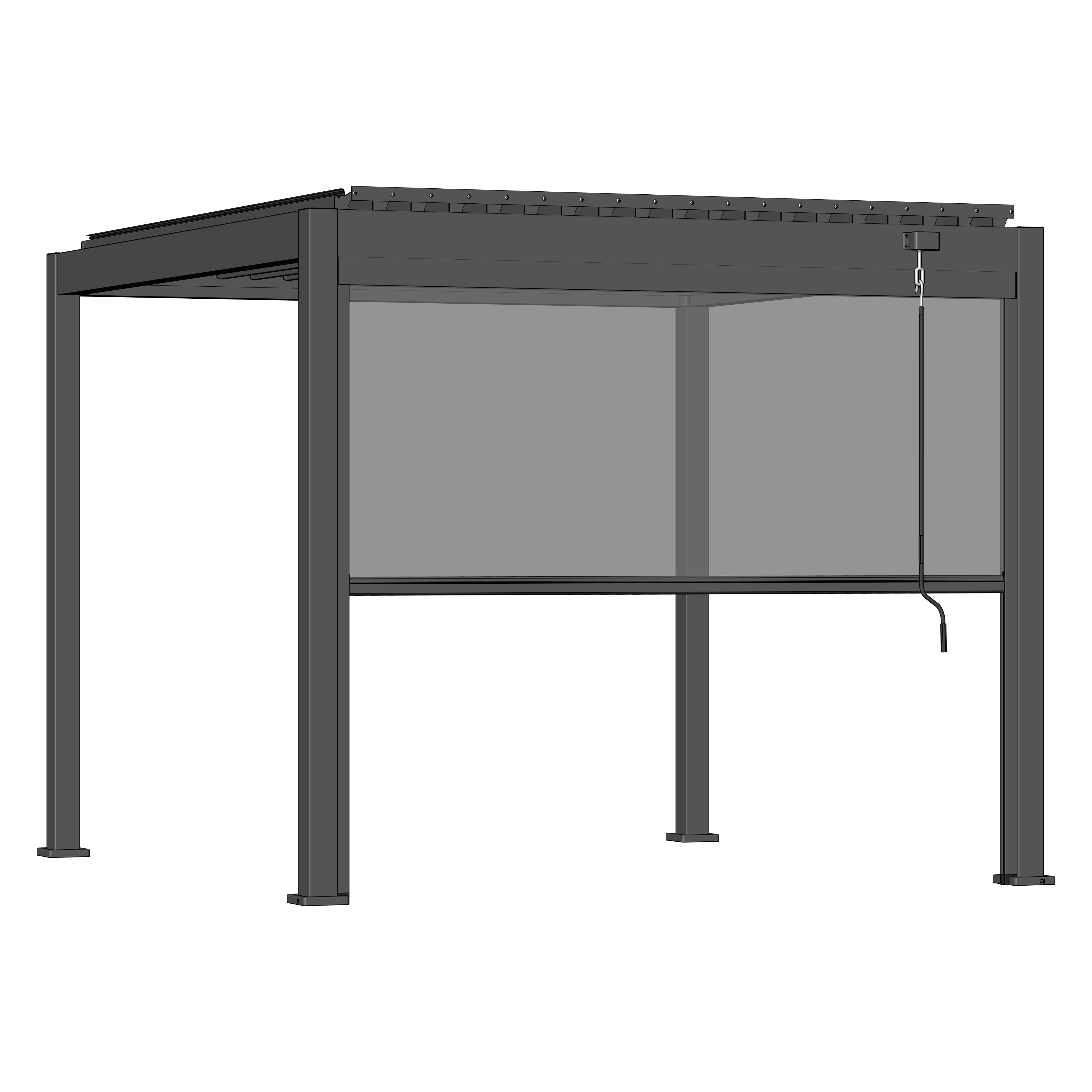 Seitenrollo ist im Rahmen an allen vier Seiten der Pergola montierbar und bietet optimalen Schutz gegen Wind, Sonne und andere äußere Einflüsse.