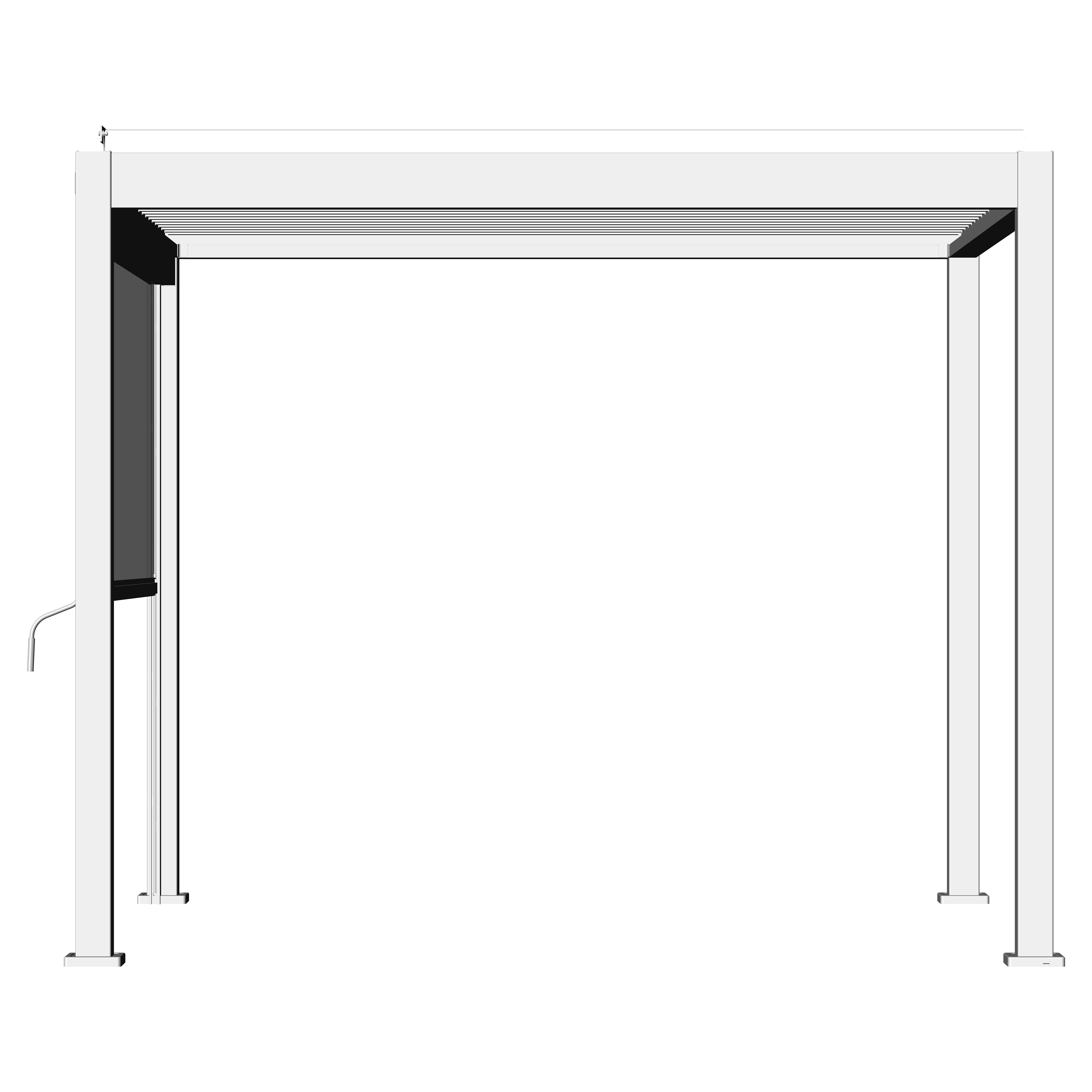 Seitenrollo ist im Rahmen an allen vier Seiten der Pergola montierbar und bietet optimalen Schutz gegen Wind, Sonne und andere äußere Einflüsse.
