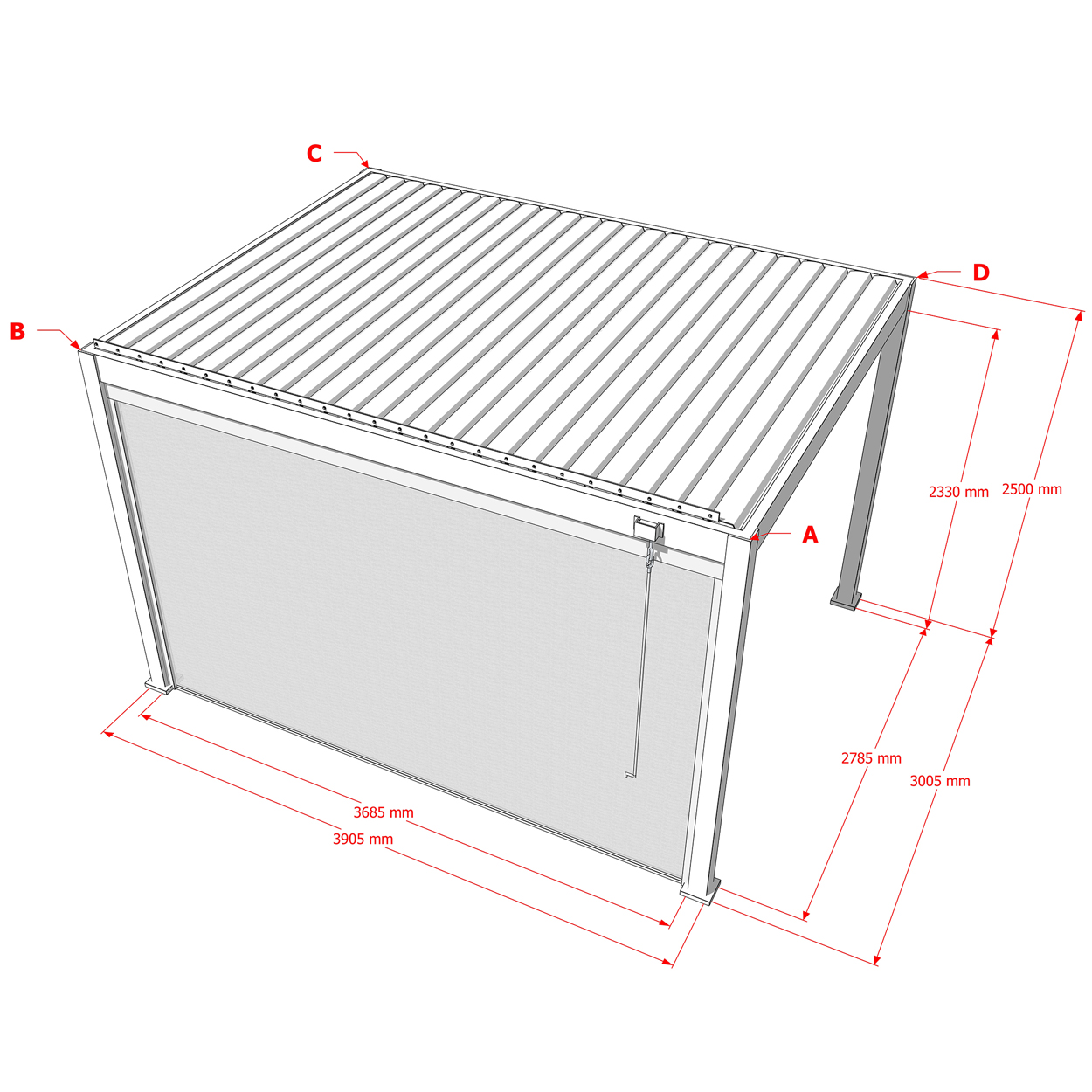 Seitenrollo ist im Rahmen an allen vier Seiten der Pergola montierbar und bietet optimalen Schutz gegen Wind, Sonne und andere äußere Einflüsse.