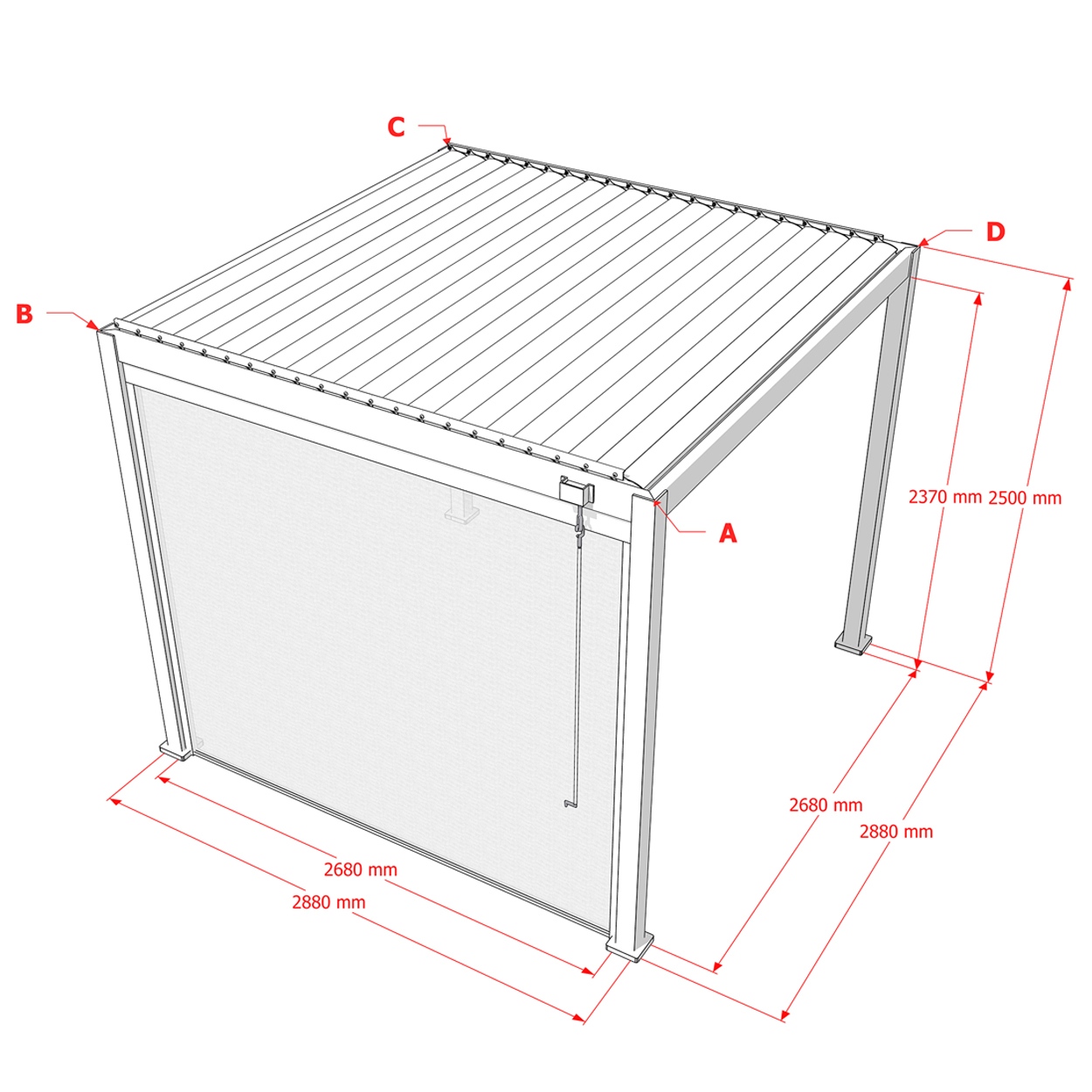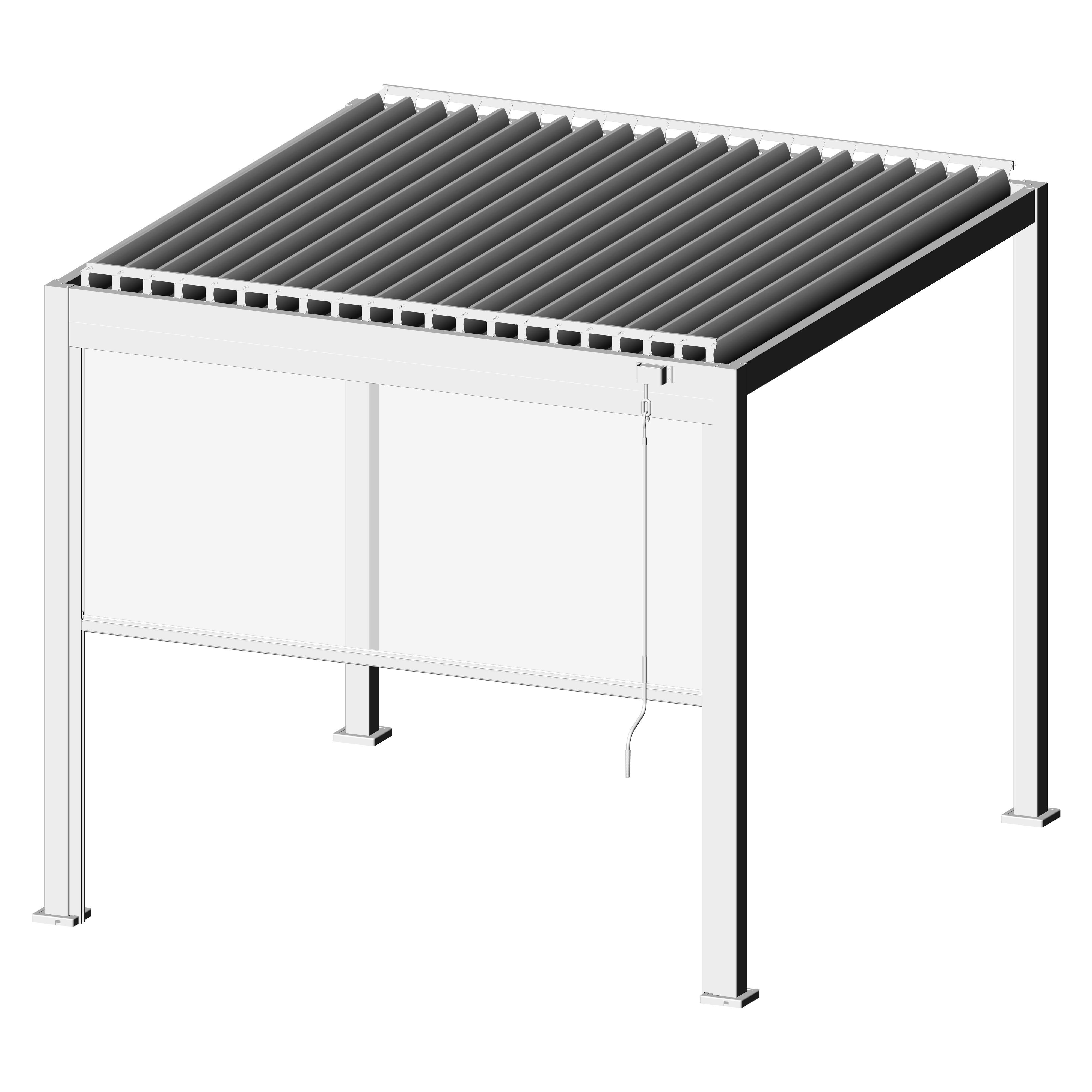 Senkrechtmarkise ist im Rahmen an allen vier Seiten der Pergola montierbar und bietet optimalen Schutz gegen Wind, Sonne und andere äußere Einflüsse.
