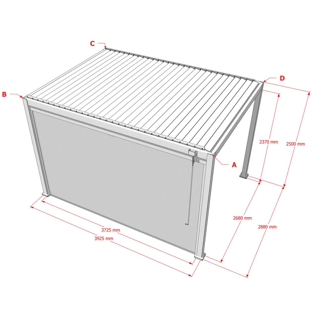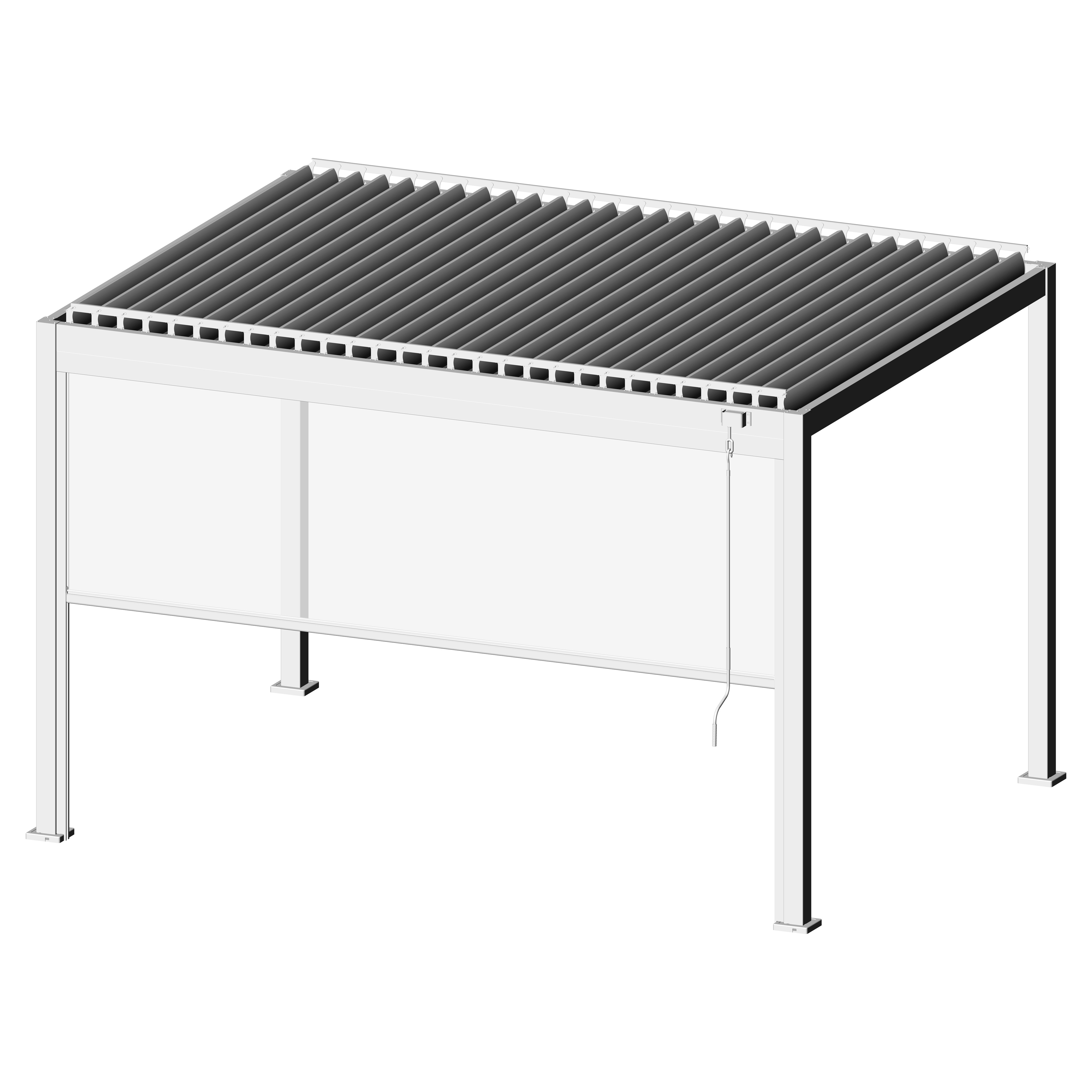 Senkrechtmarkise ist im Rahmen an allen vier Seiten der Pergola montierbar und bietet optimalen Schutz gegen Wind, Sonne und andere äußere Einflüsse.
