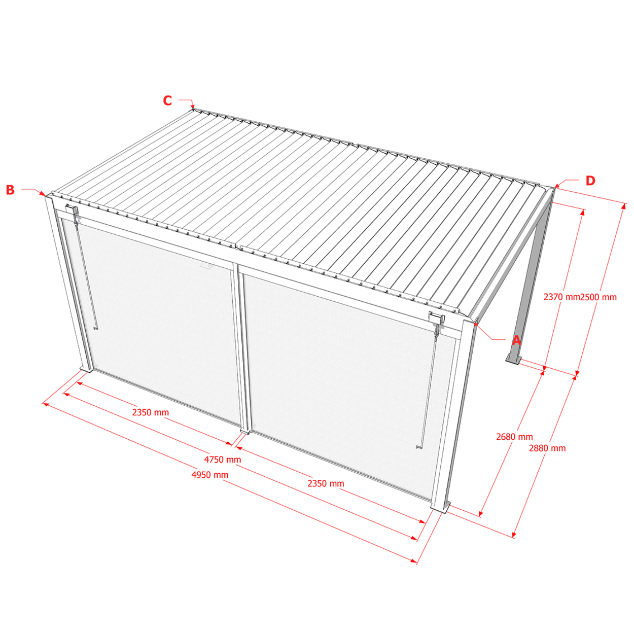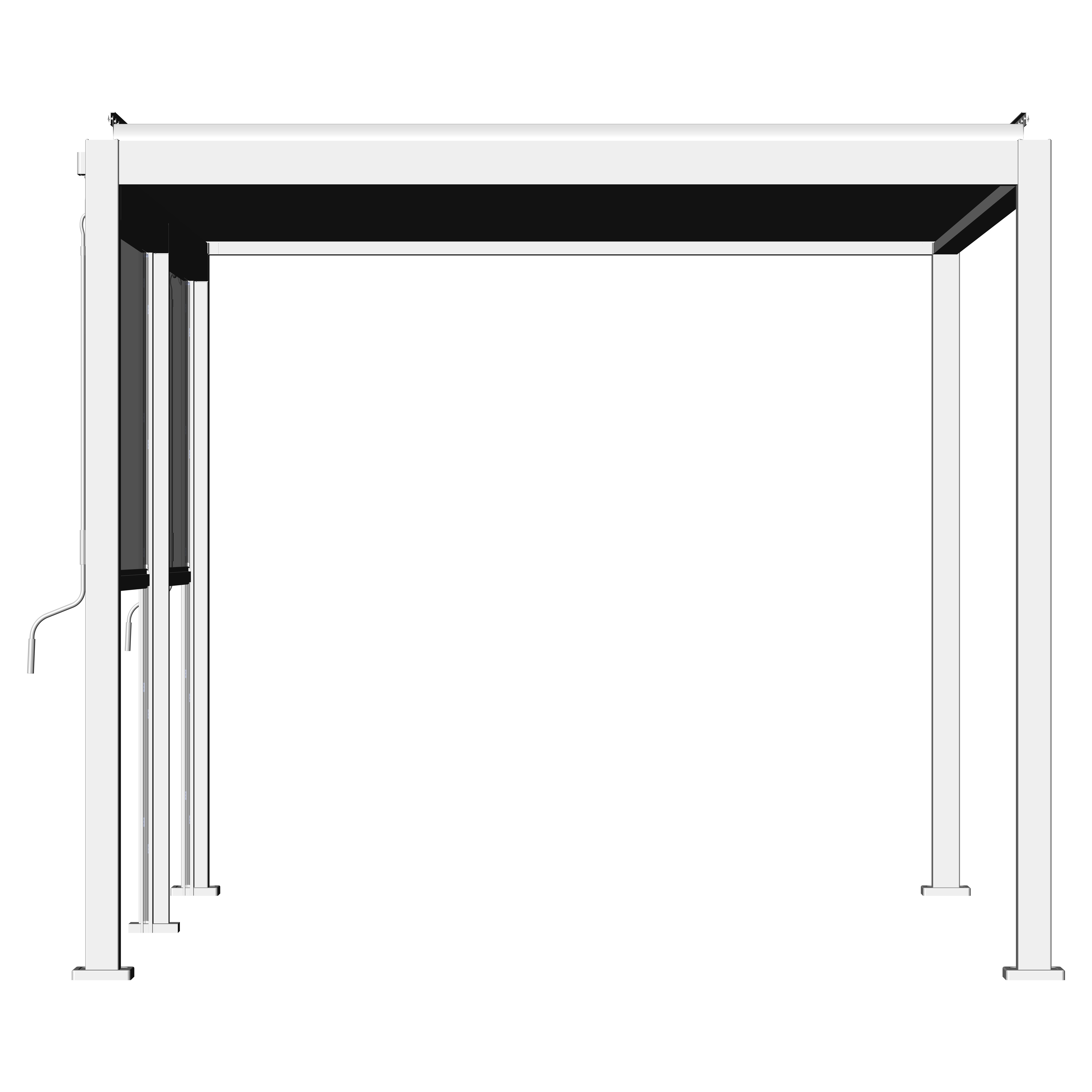 Senkrechtmarkise ist im Rahmen an allen vier Seiten der Pergola montierbar und bietet optimalen Schutz gegen Wind, Sonne und andere äußere Einflüsse.