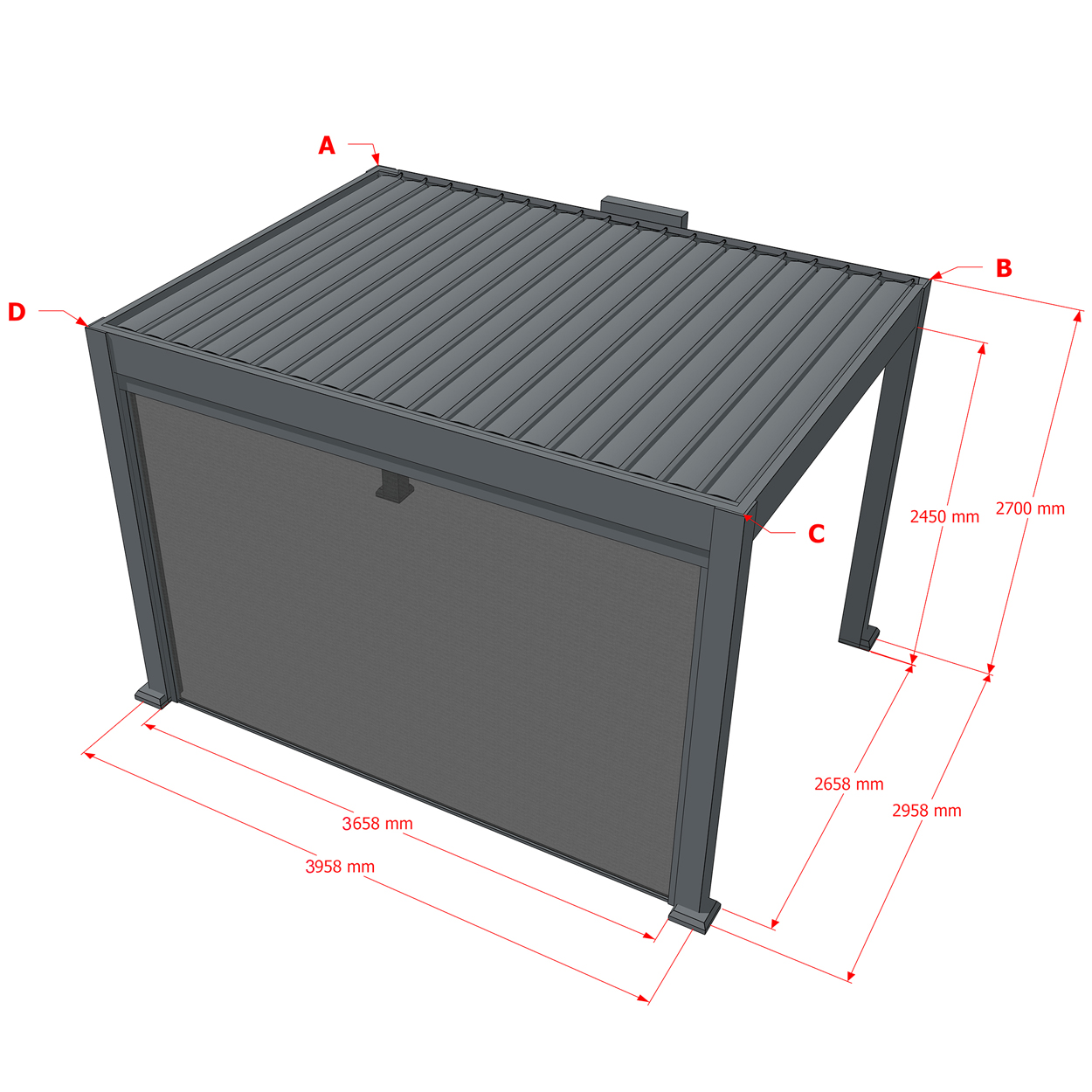 Seitenrollo ist höhenverstellbare Sonnen- und Sichtschutzblende, die im Rahmen an allen vier Seiten der Pergola montiert werden kann, bietet optimalen Schutz gegen Wind, Regen und andere äußere Einflüsse.