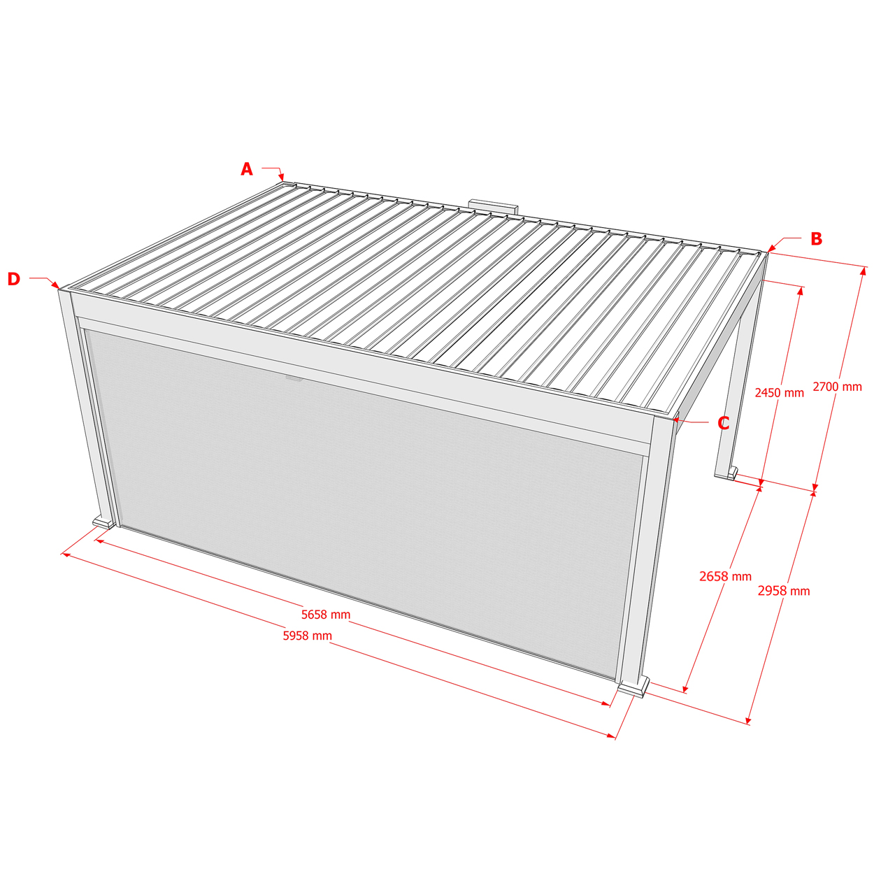 Seitenrollo ist höhenverstellbare Sonnen- und Sichtschutzblende, die im Rahmen an allen vier Seiten der Pergola montiert werden kann, bietet optimalen Schutz gegen Wind, Regen und andere äußere Einflüsse.