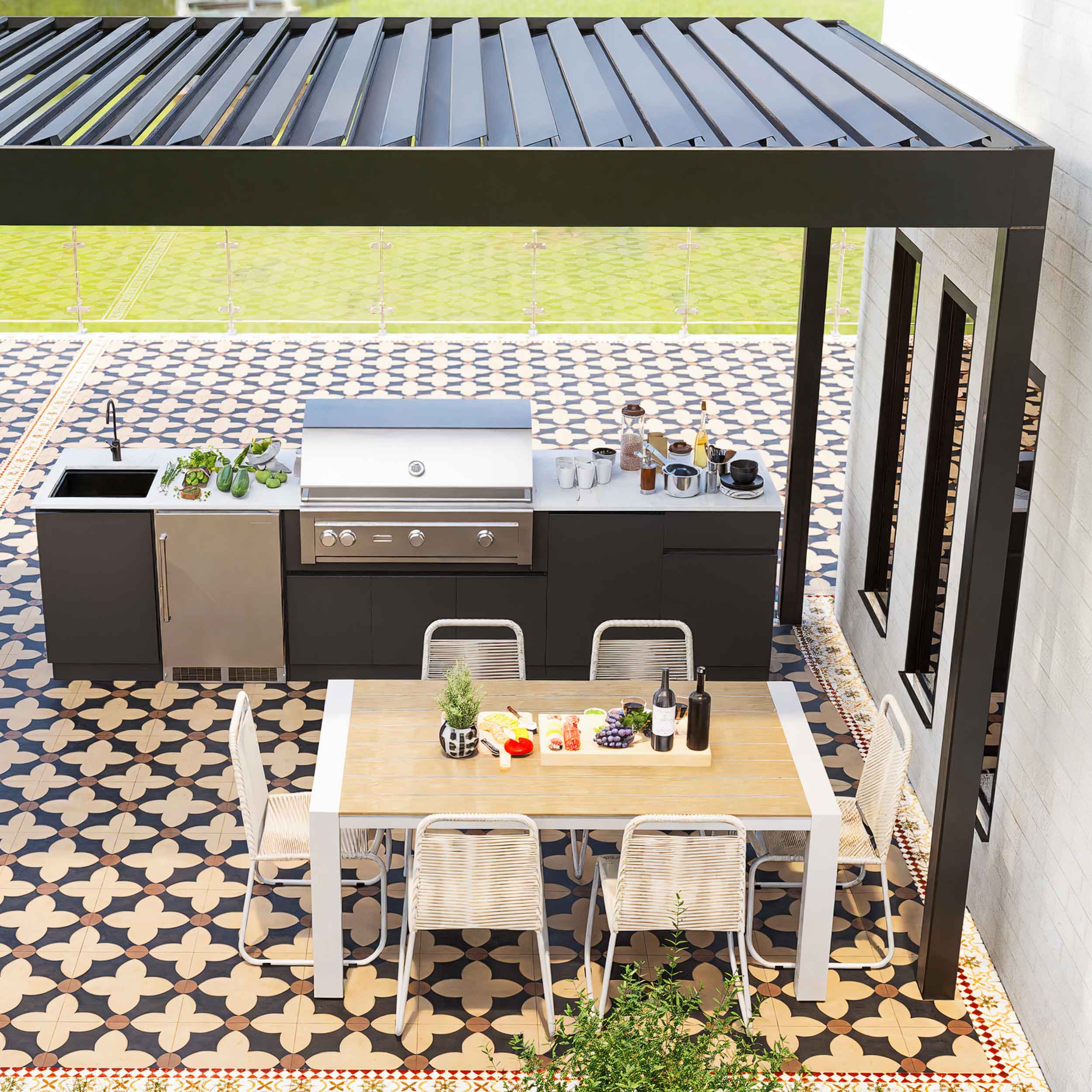 Eine Außenküche ist ein wunderbarer Ort, um das Kochen und Essen im Freien zu genießen. Lassen Sie sich eine Traum-Küche individuell zusammenstellen, damit Familie und Freunde gemeinsam essen und entspannen können.