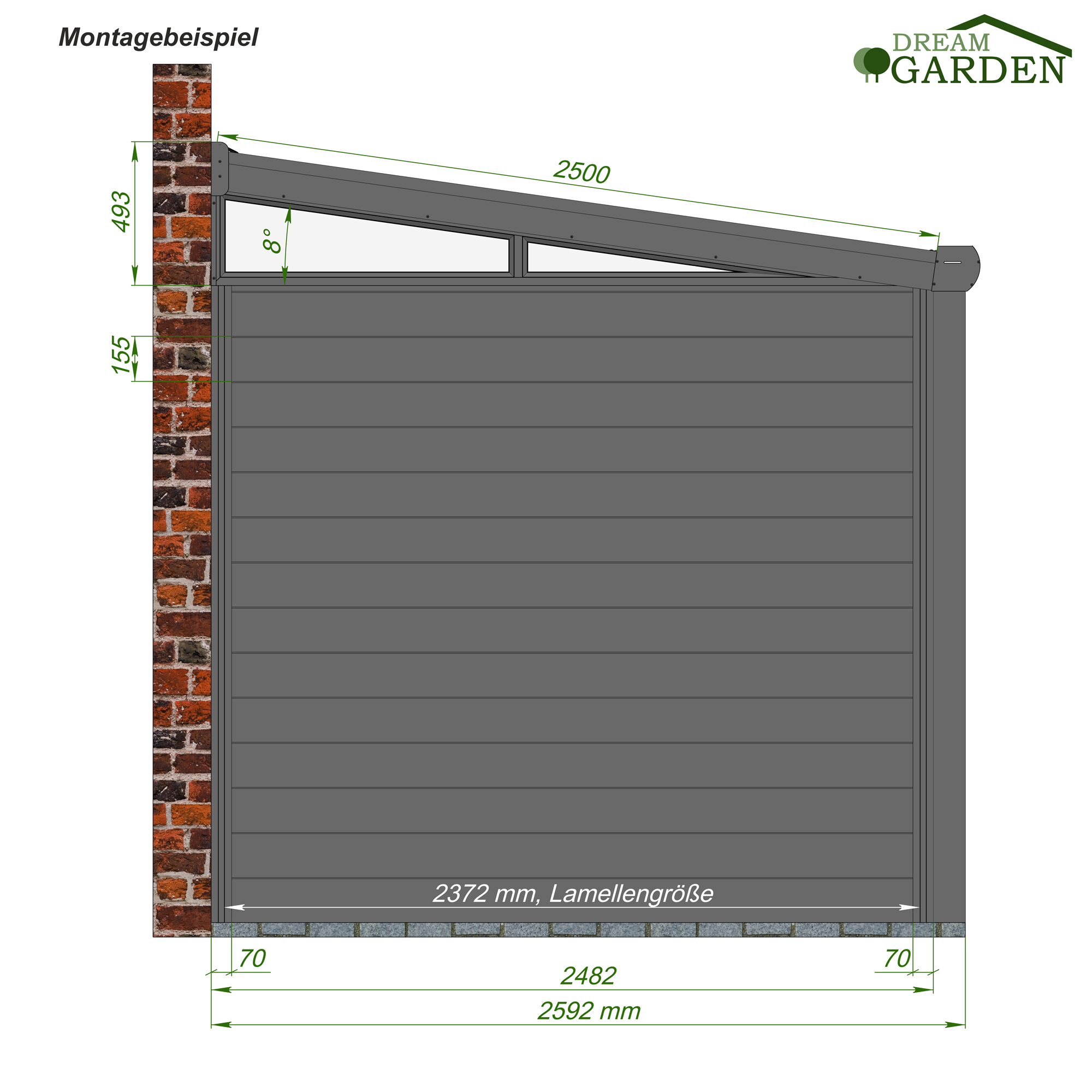 *Dreamgarden Seitenwände können mit einem Unterbau-Tragprofil aus Aluminium erweitert werden (Nicht im Lieferumfang)
