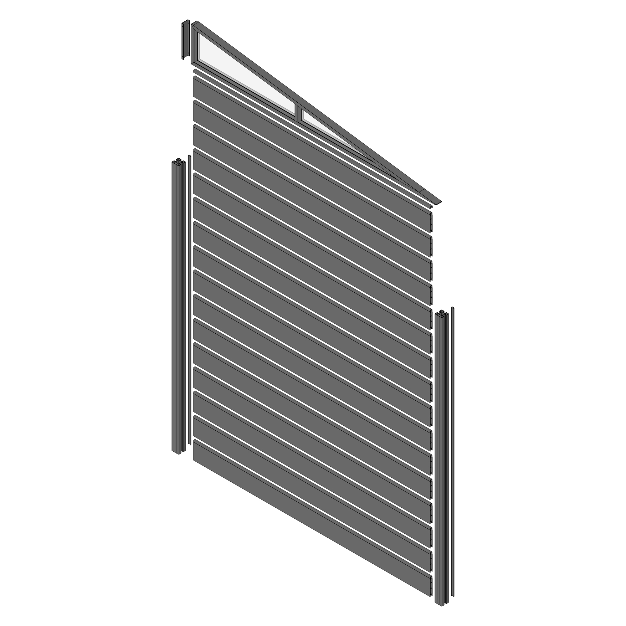 Bausatz beinhaltet: Abschlusskeil, Pfosten mit Pfostenabdeckung, Lamellen, Lamellenabdeckung, Schraubensatz