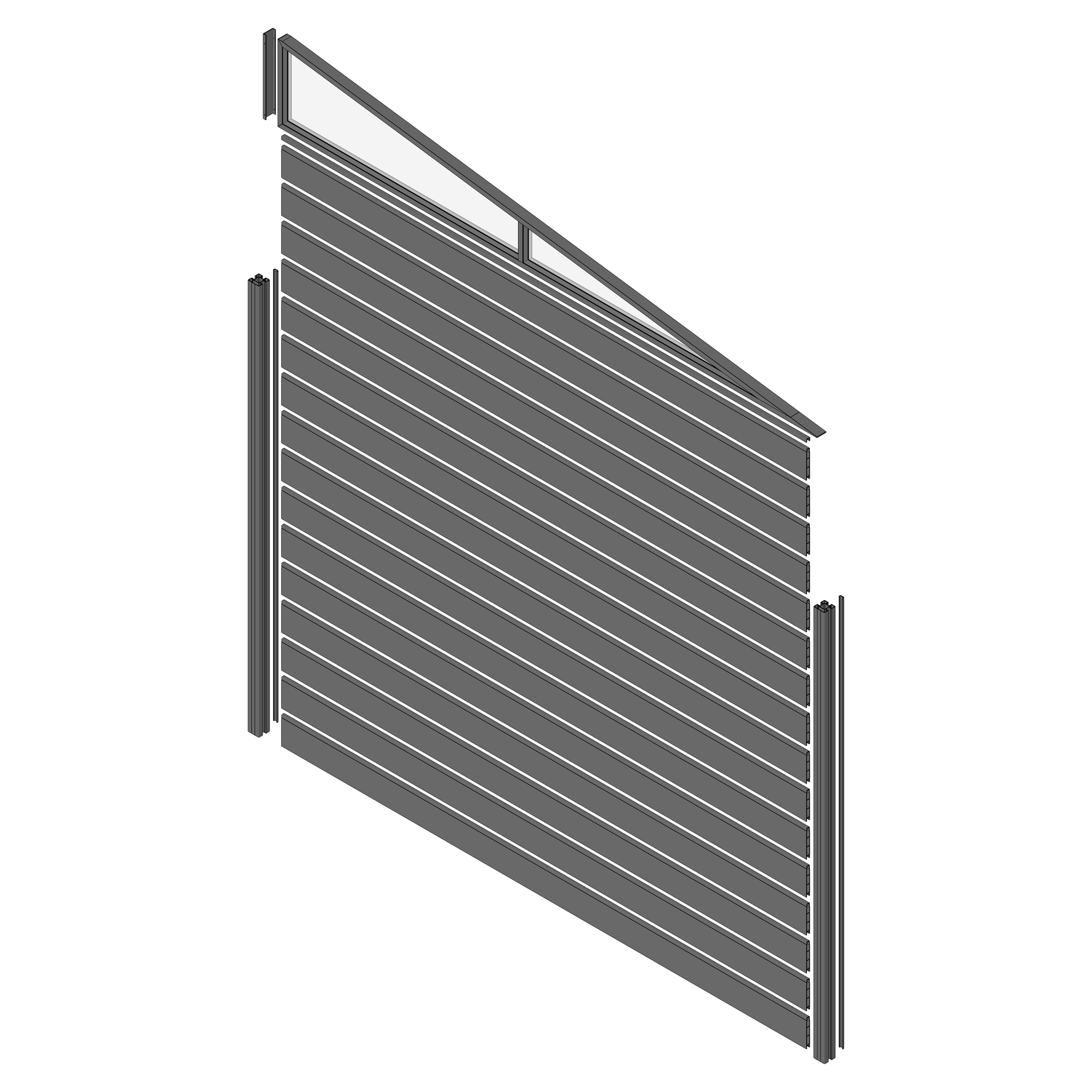 Bausatz beinhaltet: Abschlusskeil, Pfosten mit Pfostenabdeckung, Lamellen, Lamellenabdeckung, Schraubensatz