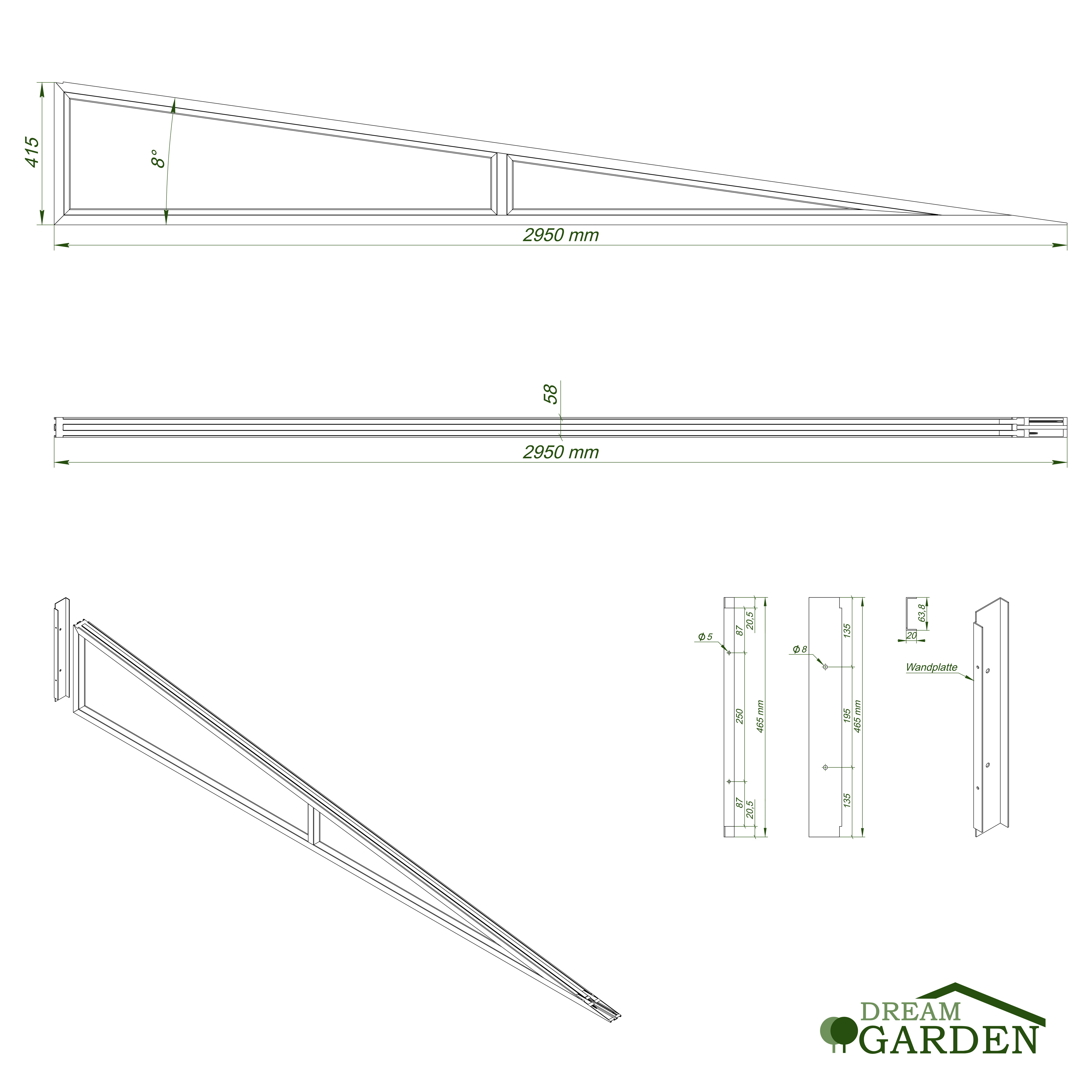 *Dreamgarden Seitenwände können mit einem Unterbau-Tragprofil aus Aluminium erweitert werden (Nicht im Lieferumfang)