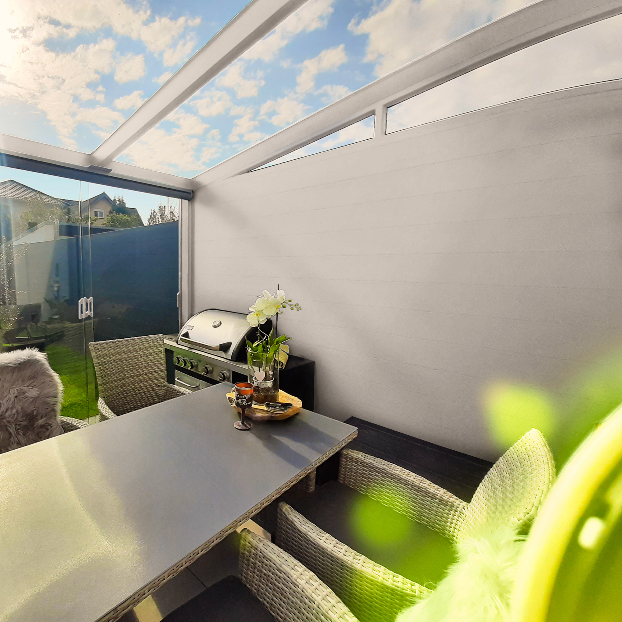 Entspannen Sie sich bei jedem Wetter auf Ihrer Terrasse mit den Seitenwänden von Dreamgarden. Die hochwertig produzierten Terrassenseitenwände schützen Sie optimal vor Kälte, Wind, Niederschlag und natürlich auch vor den neugierigen Blicken der Nachbarn.