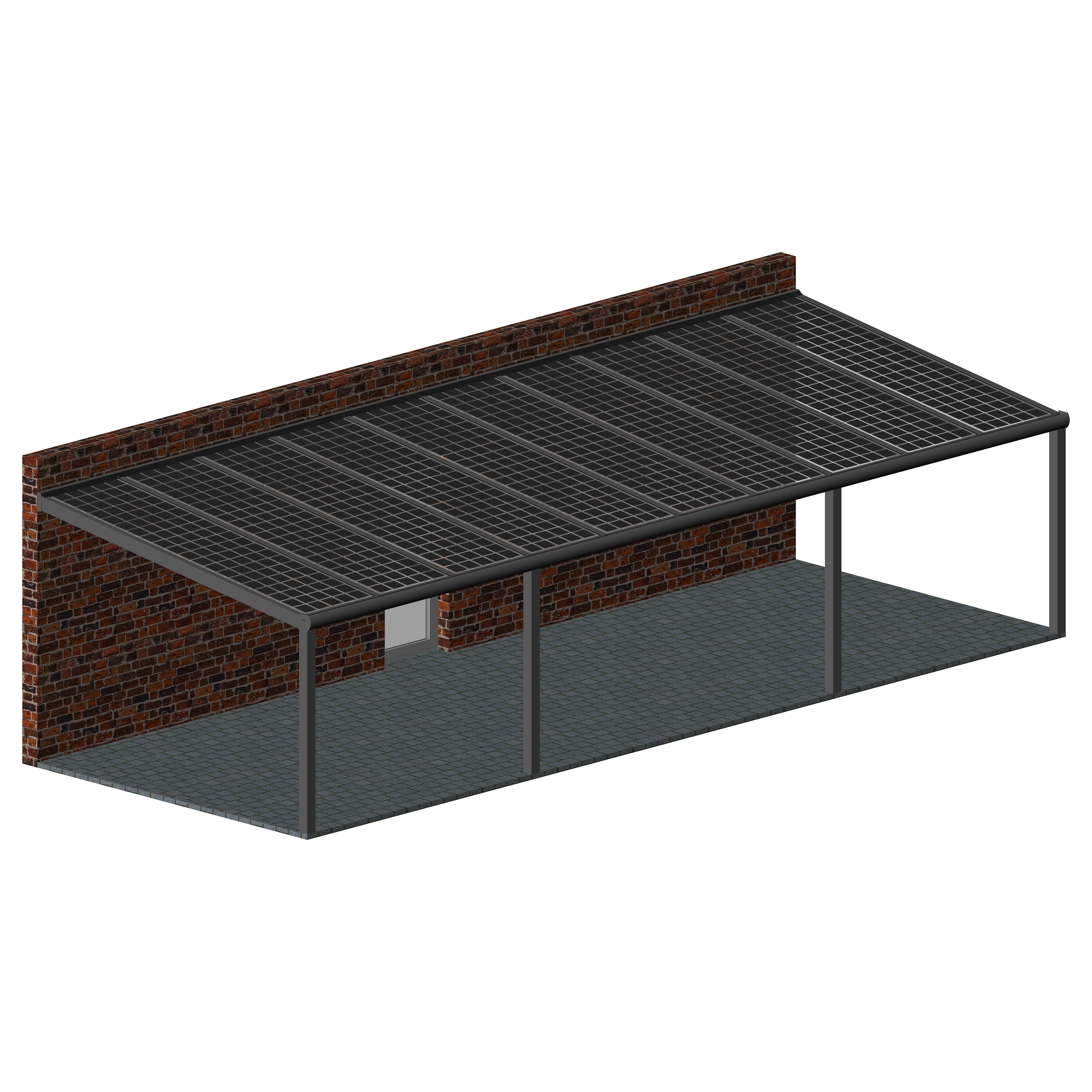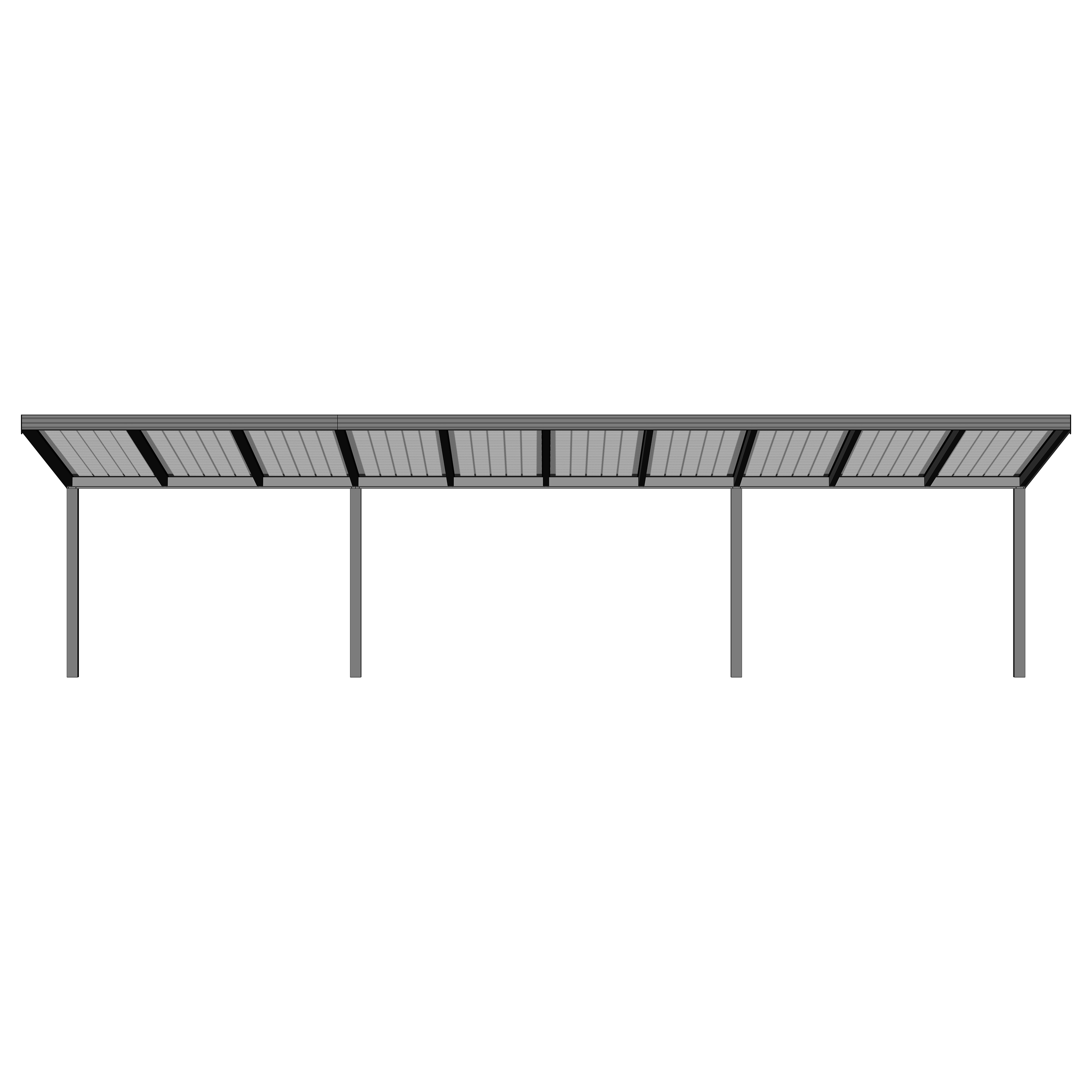 Hochwertige und kostengünstige Überdachung mit Photovoltaik Modulen aus pulverbeschichtetem Aluminium.