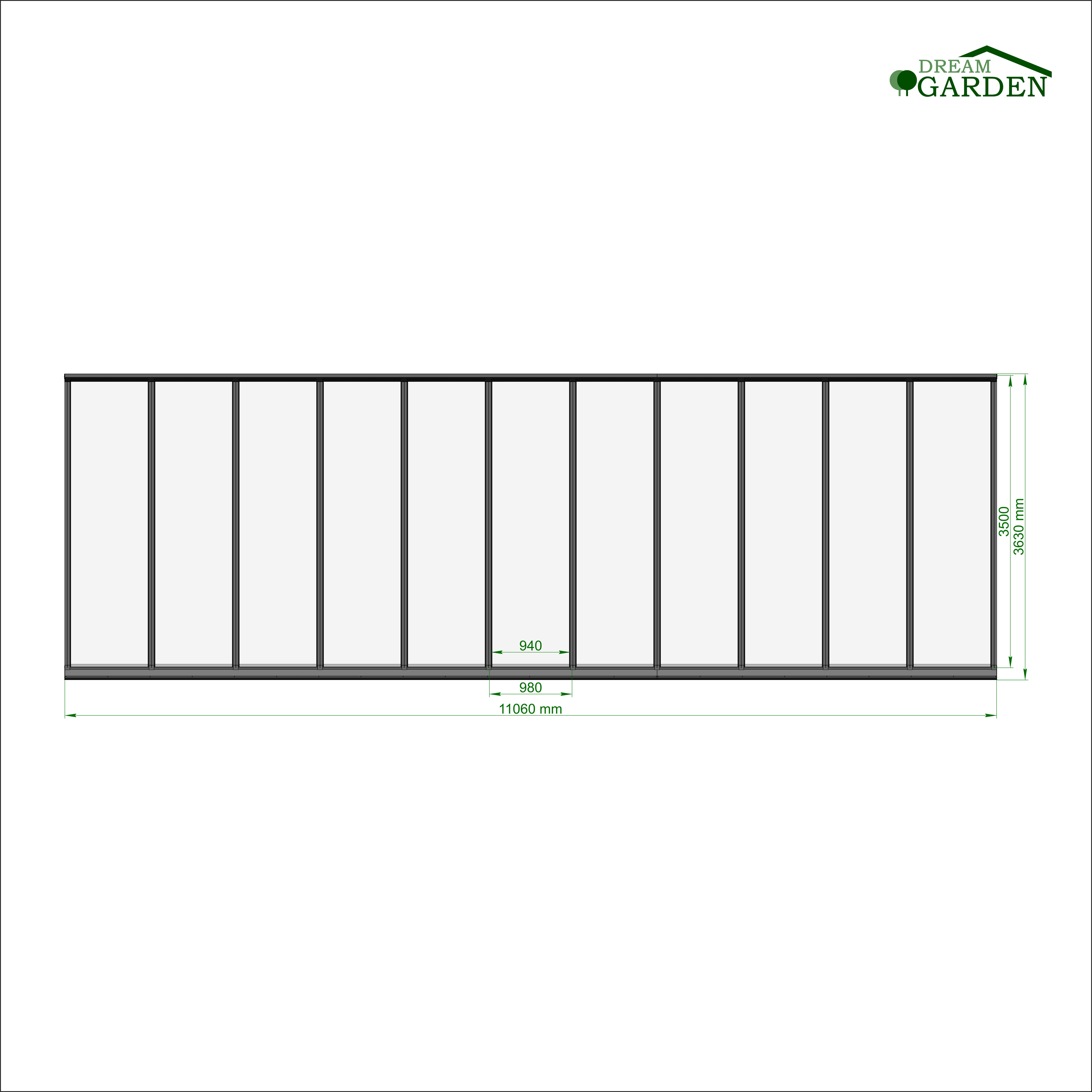 Dreamgarden Terrassenüberdachung 11,06 x 3,5 Meter Anthrazit VSG Glas Grau