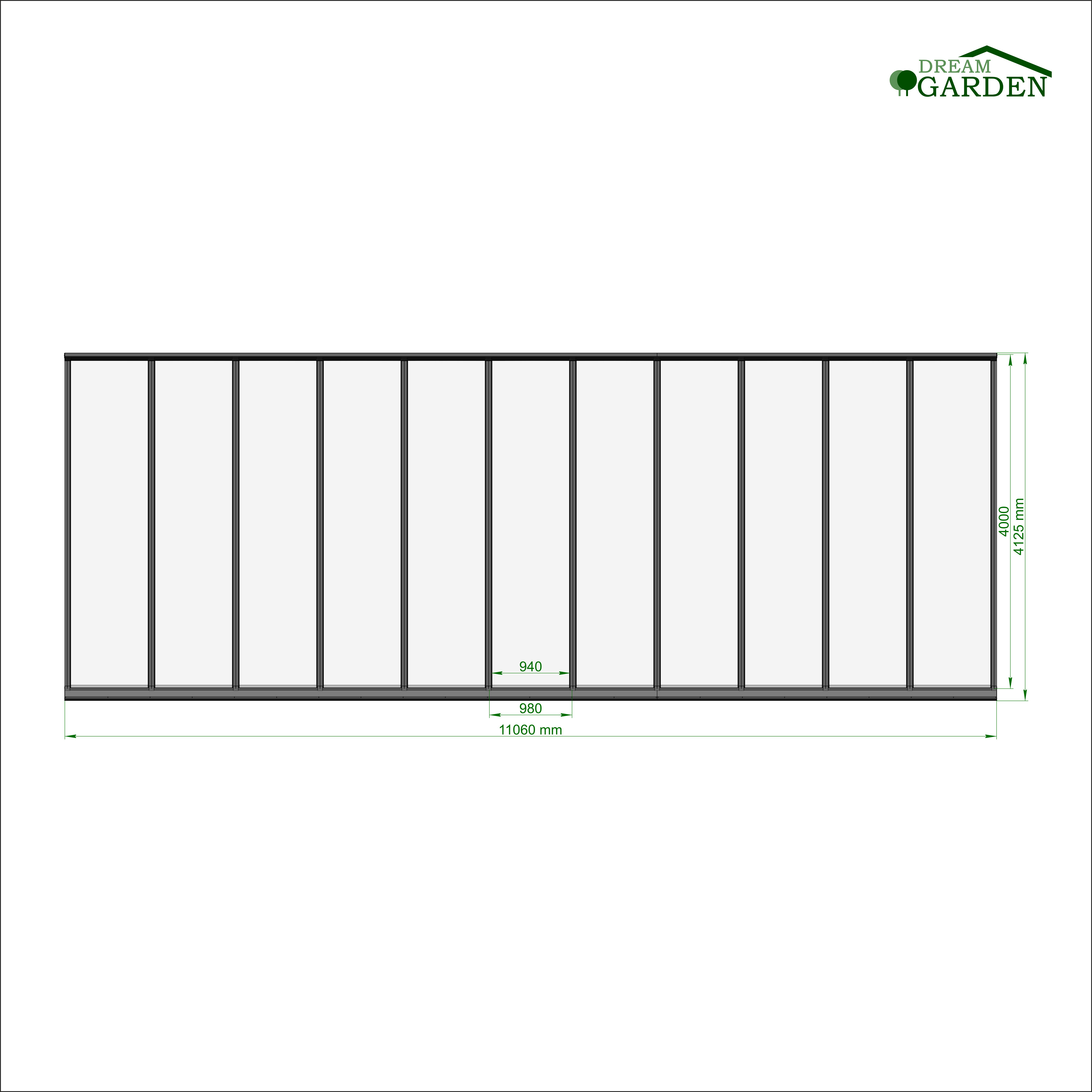 Dreamgarden Terrassenüberdachung 11,06 x 4 Meter Weiß VSG Glas Klar