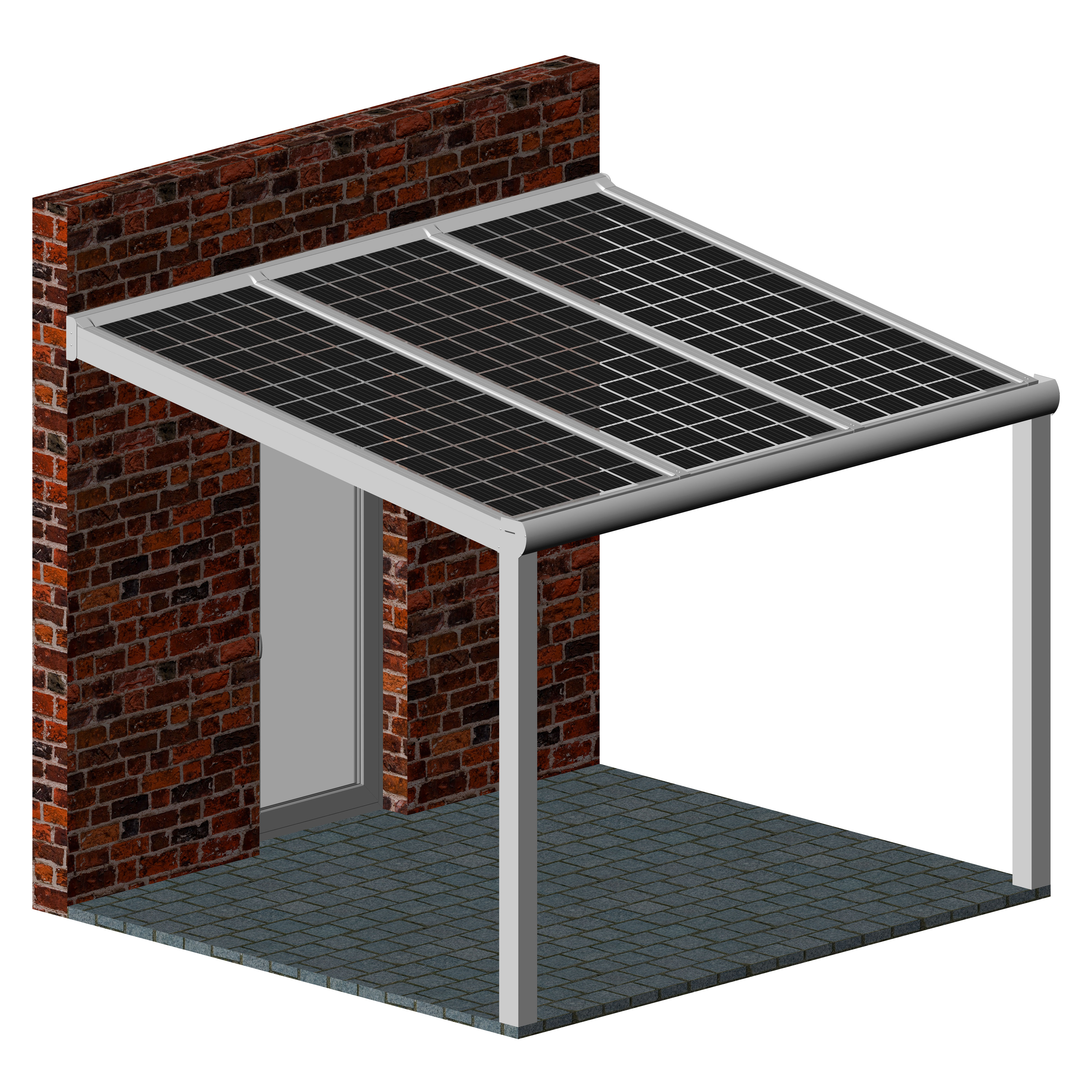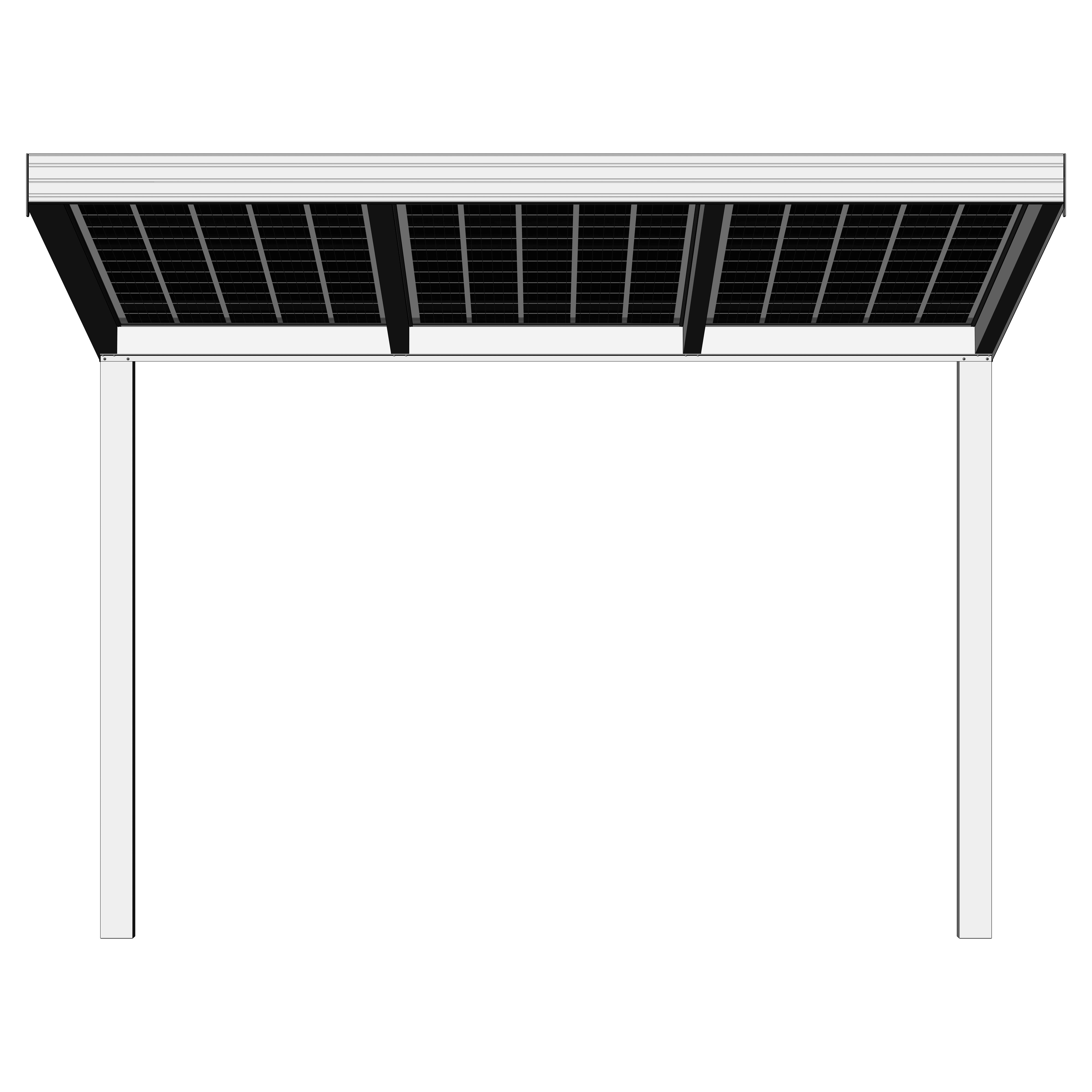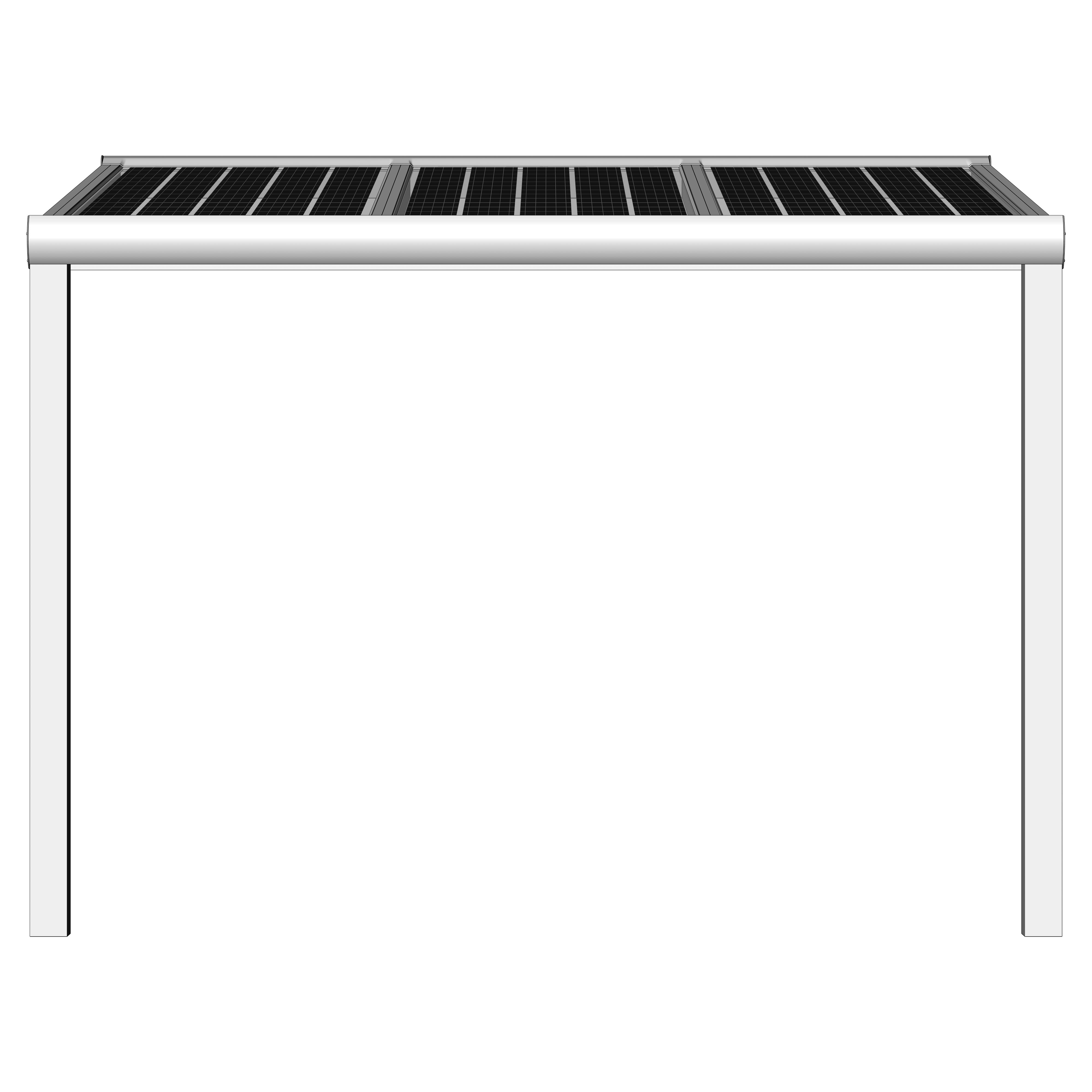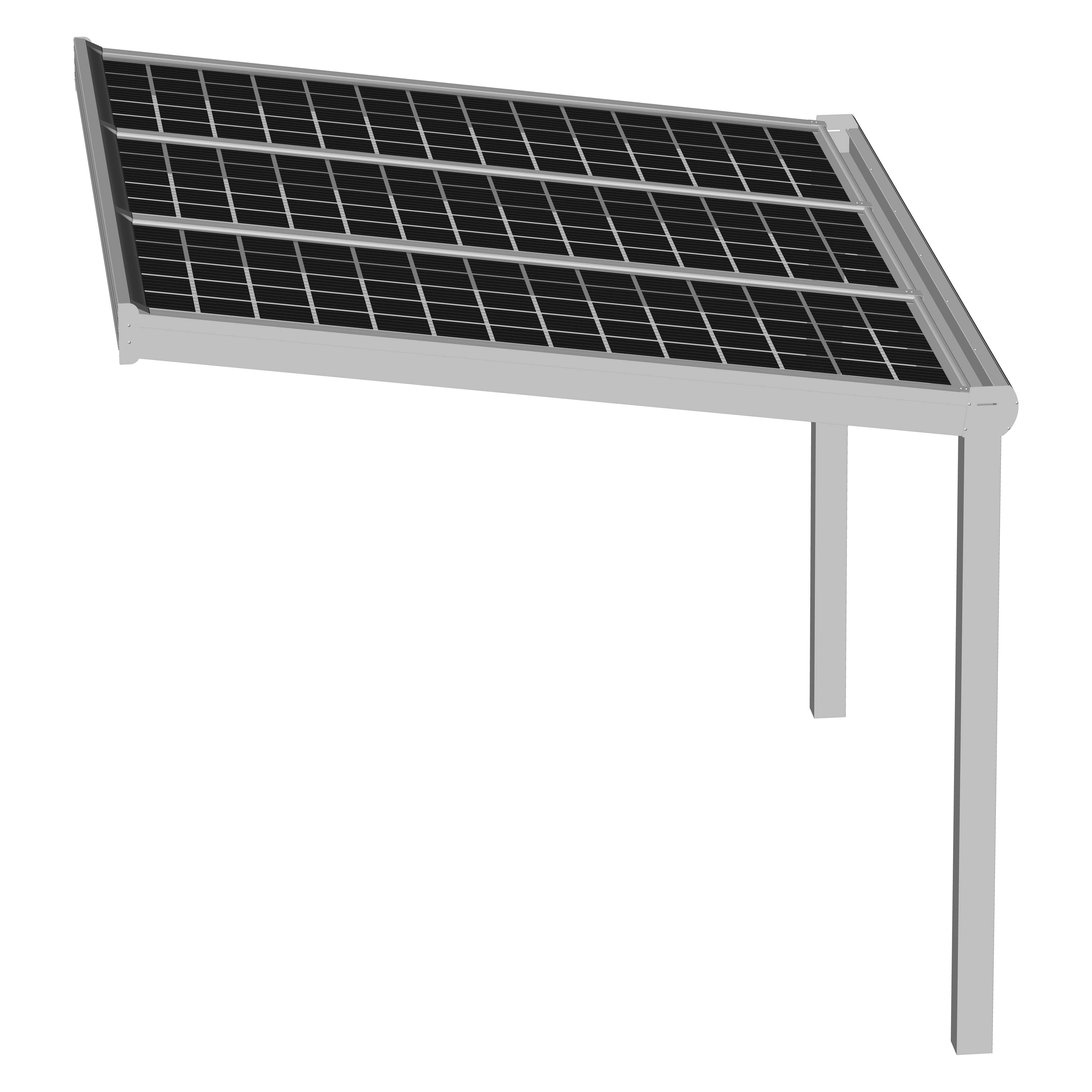Hochwertige und kostengünstige Überdachung mit Photovoltaik Modulen aus pulverbeschichtetem Aluminium.
