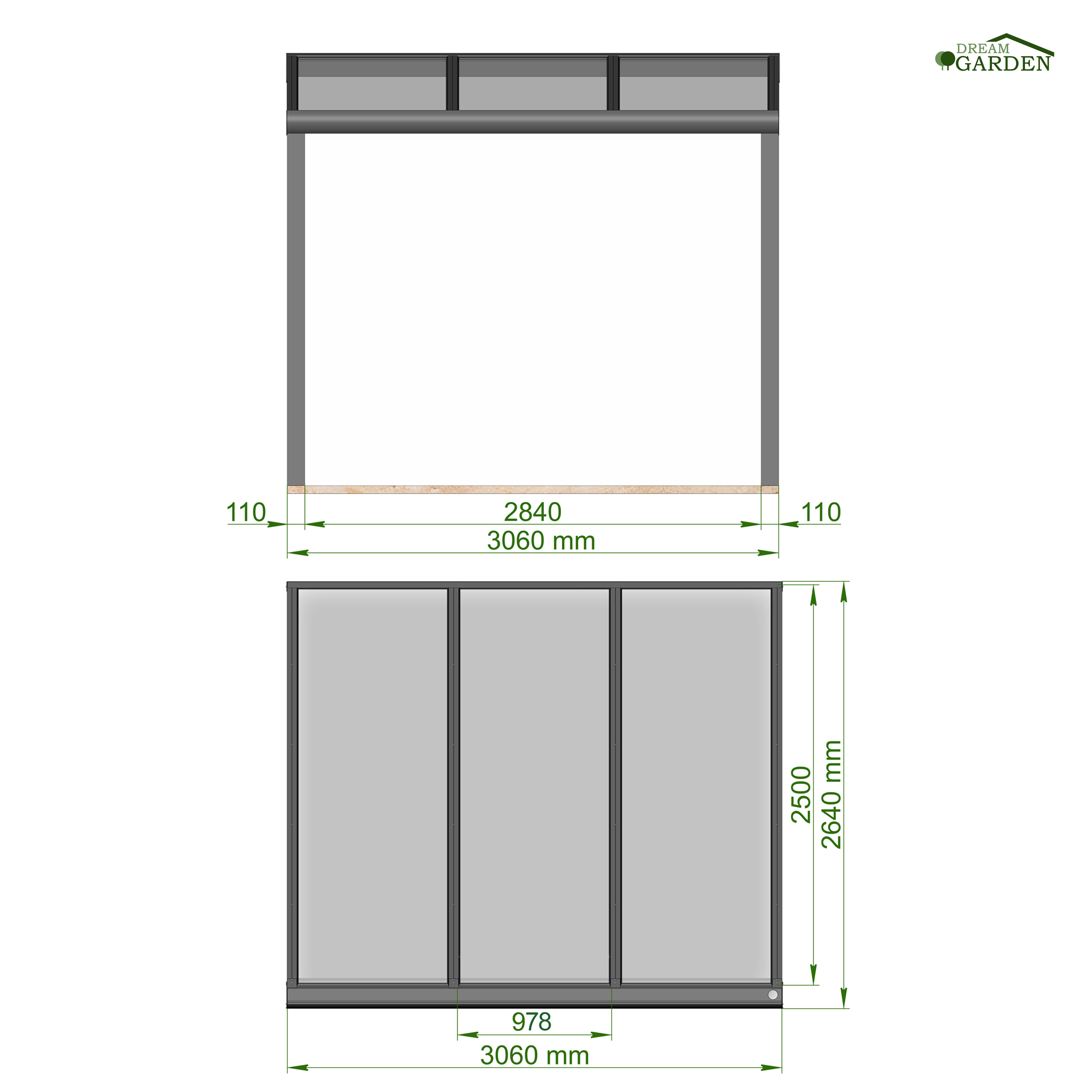 Dreamgarden Terrassenüberdachung 3,06 x 2,5 Meter Weiß Solar PV-Glas Photovoltaik