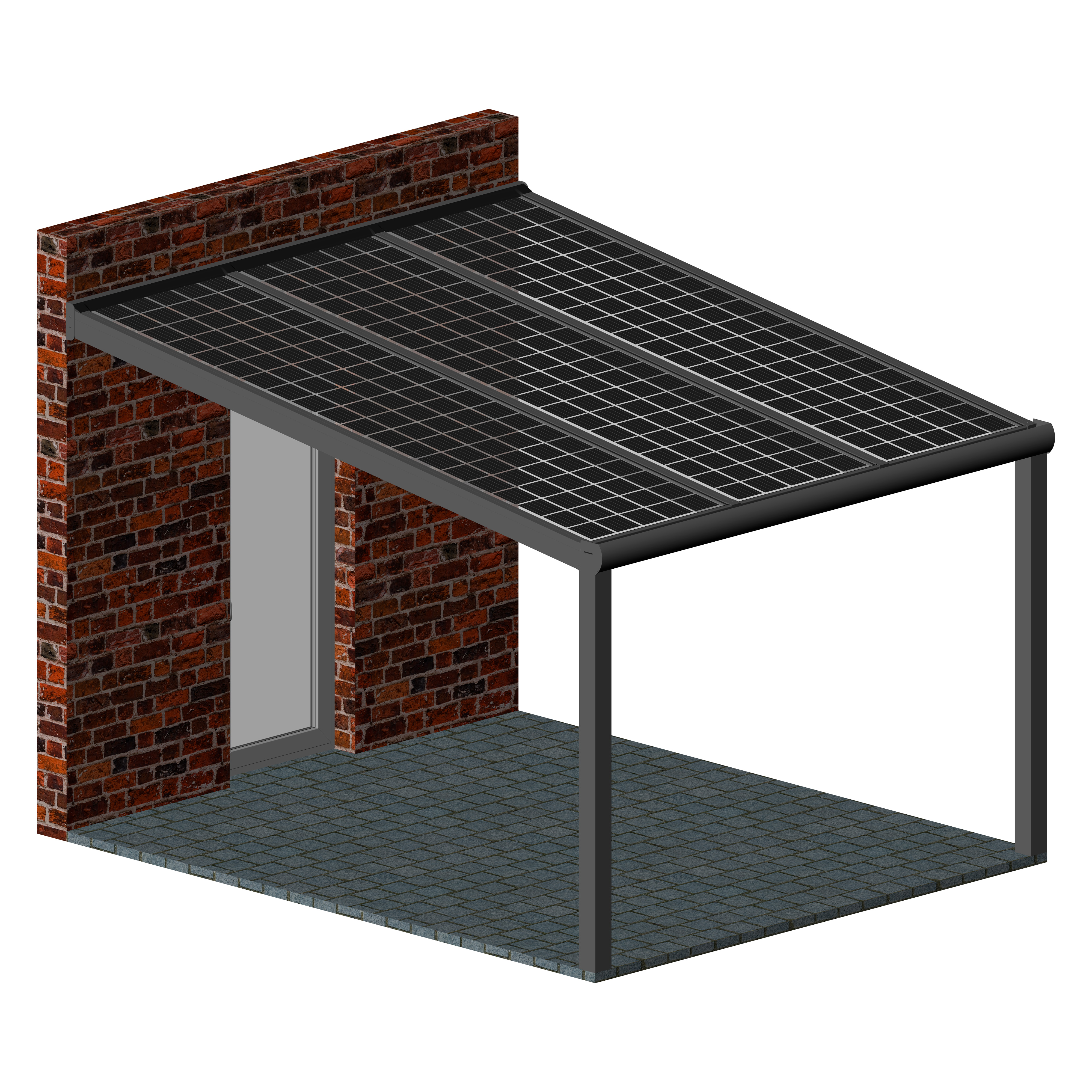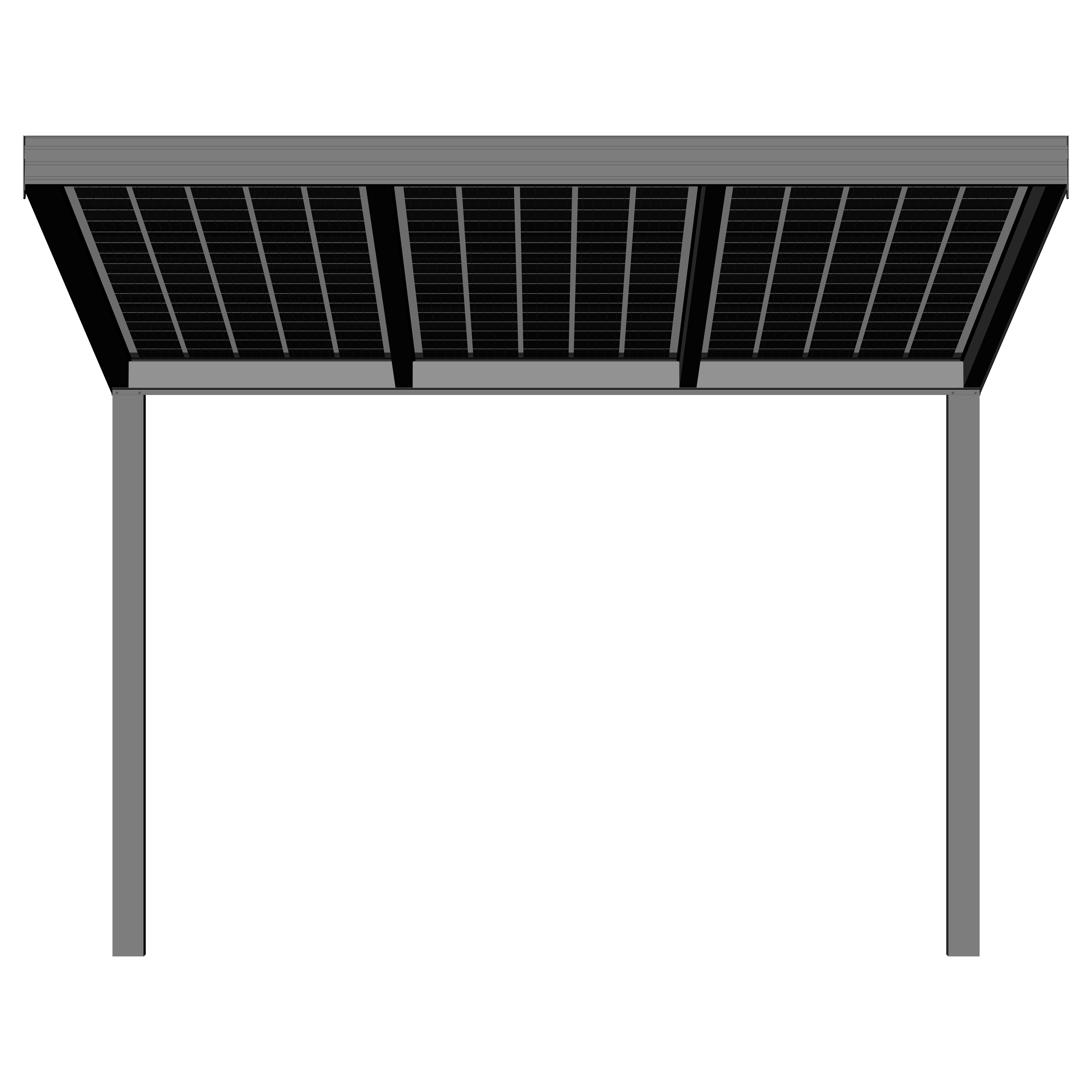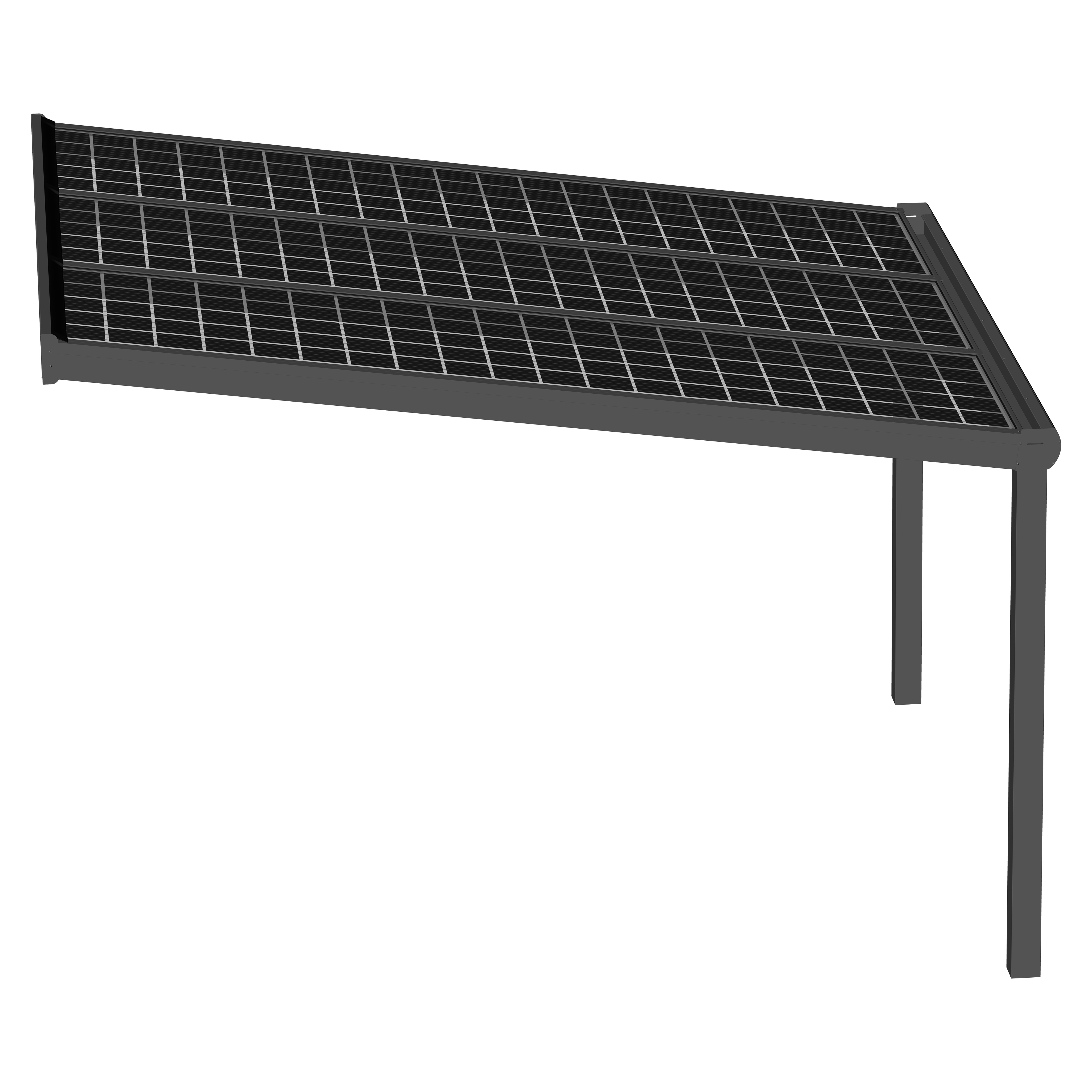 Hochwertige und kostengünstige Überdachung mit Photovoltaik Modulen aus pulverbeschichtetem Aluminium.