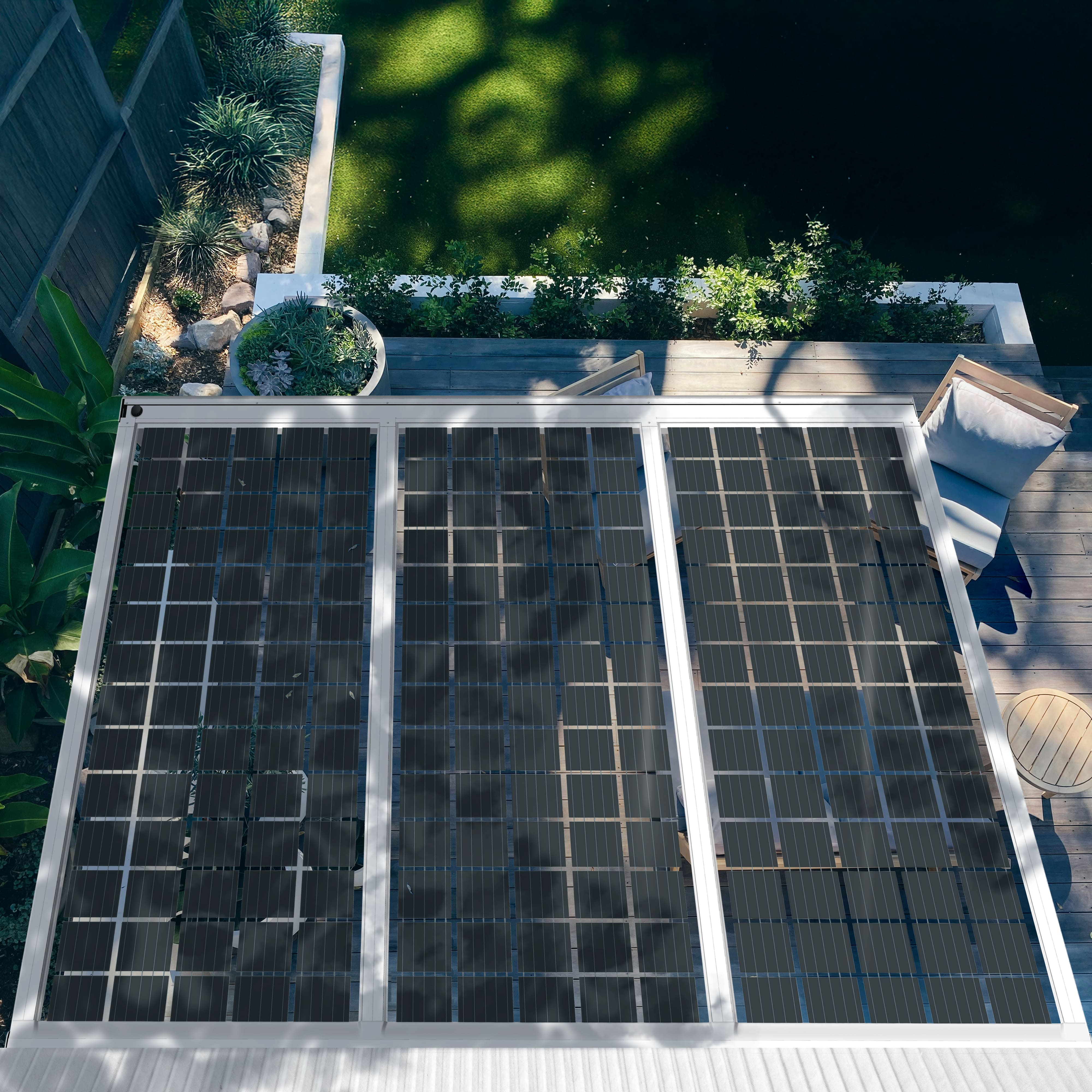 Die Kombination einer Terrassenüberdachung mit einer Photovoltaikanlage, auch bekannt als Solarterrassendach oder PV-Terrassendach, ist eine hervorragende Möglichkeit, den verfügbaren Raum optimal zu nutzen. Diese Art von Solardach bietet nicht nur Schutz vor Witterungseinflüssen, sondern ermöglicht es Ihnen auch, erneuerbare Energie zu erzeugen.