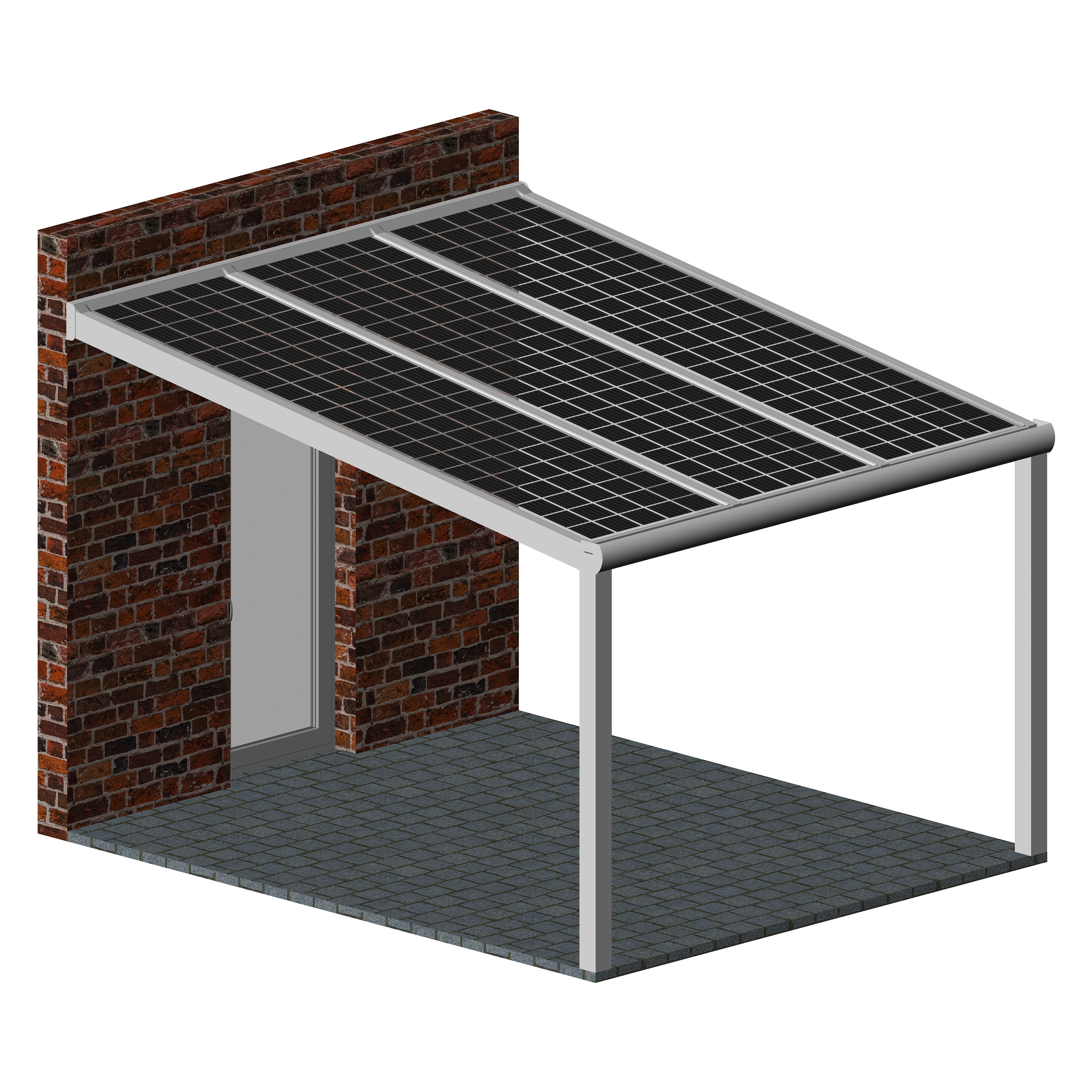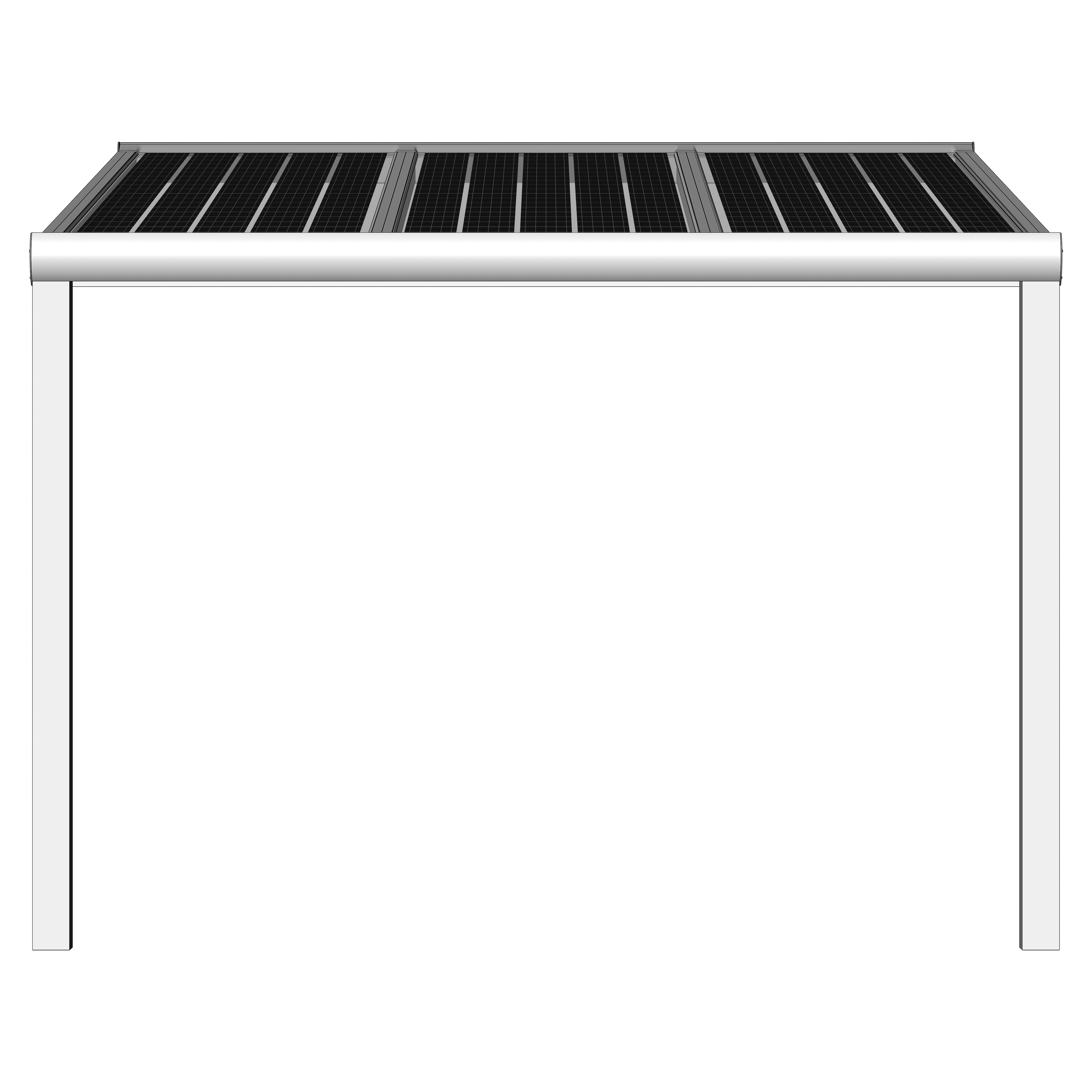 Hochwertige und kostengünstige Überdachung mit Photovoltaik Modulen aus pulverbeschichtetem Aluminium.