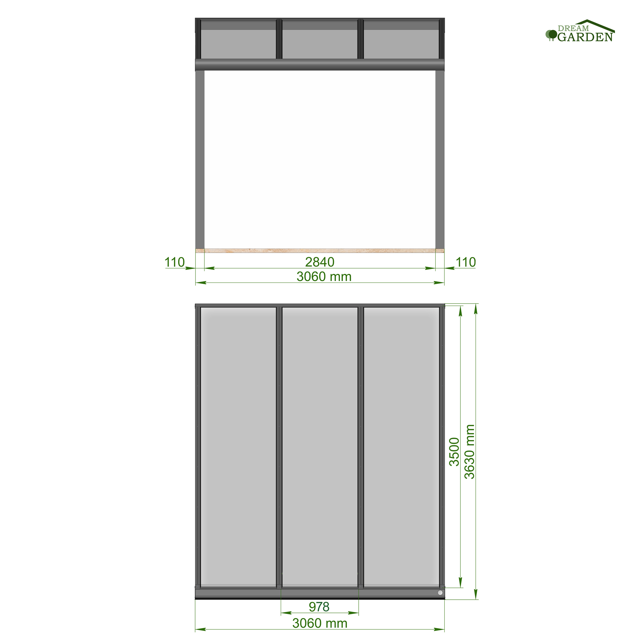 Dreamgarden Terrassenüberdachung 3,06 x 3,5 Meter Weiß Solar PV-Glas Photovoltaik