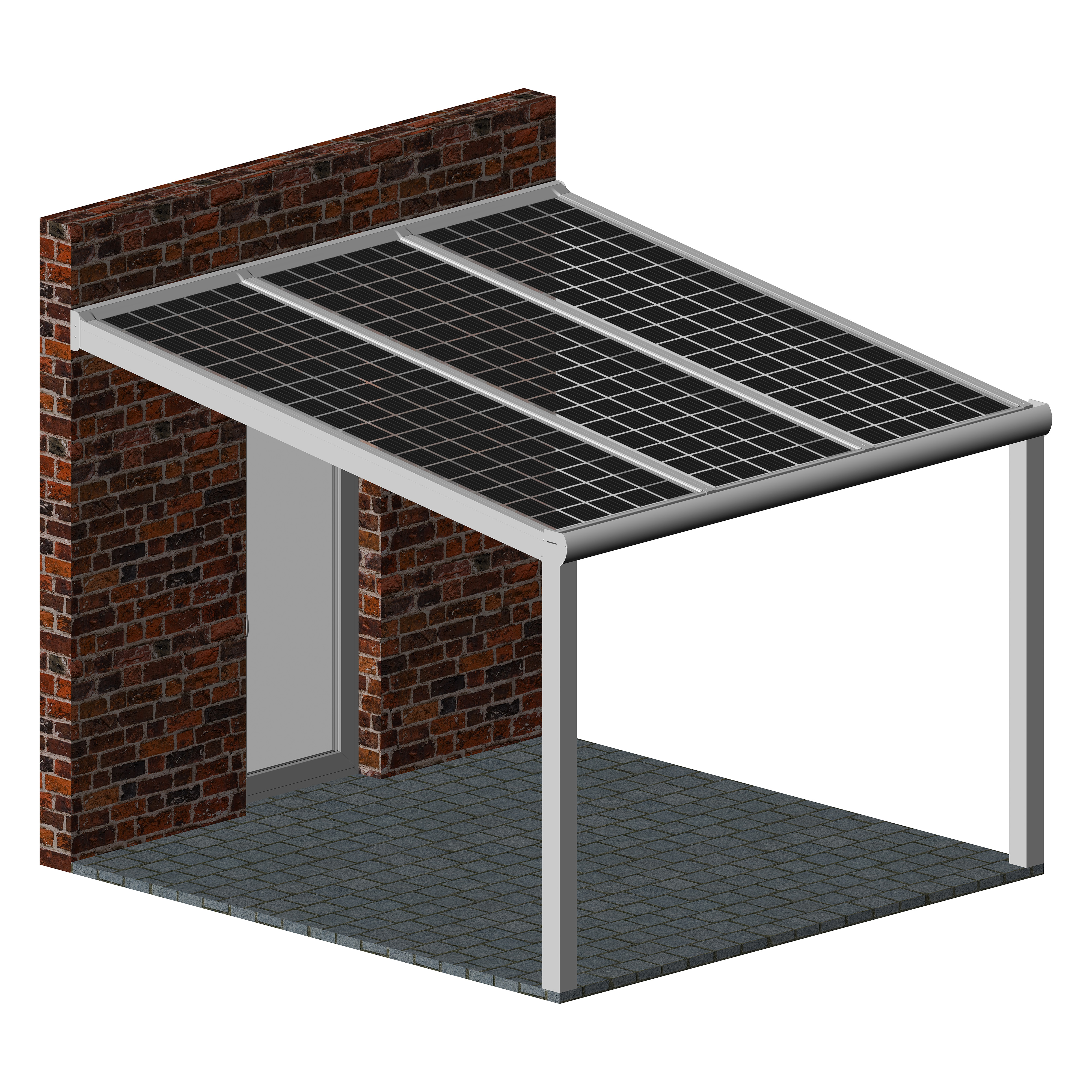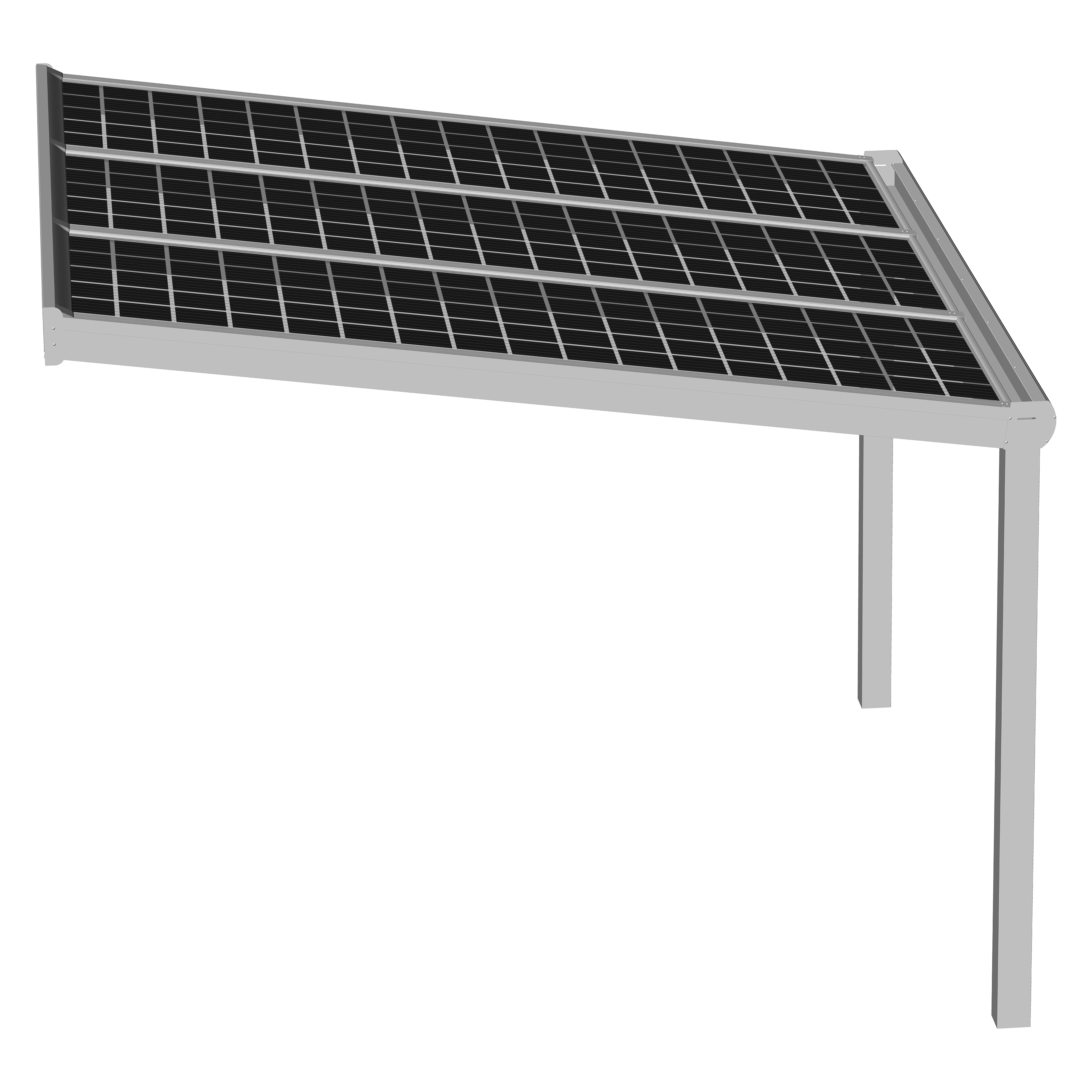 Hochwertige und kostengünstige Überdachung mit Photovoltaik Modulen aus pulverbeschichtetem Aluminium.