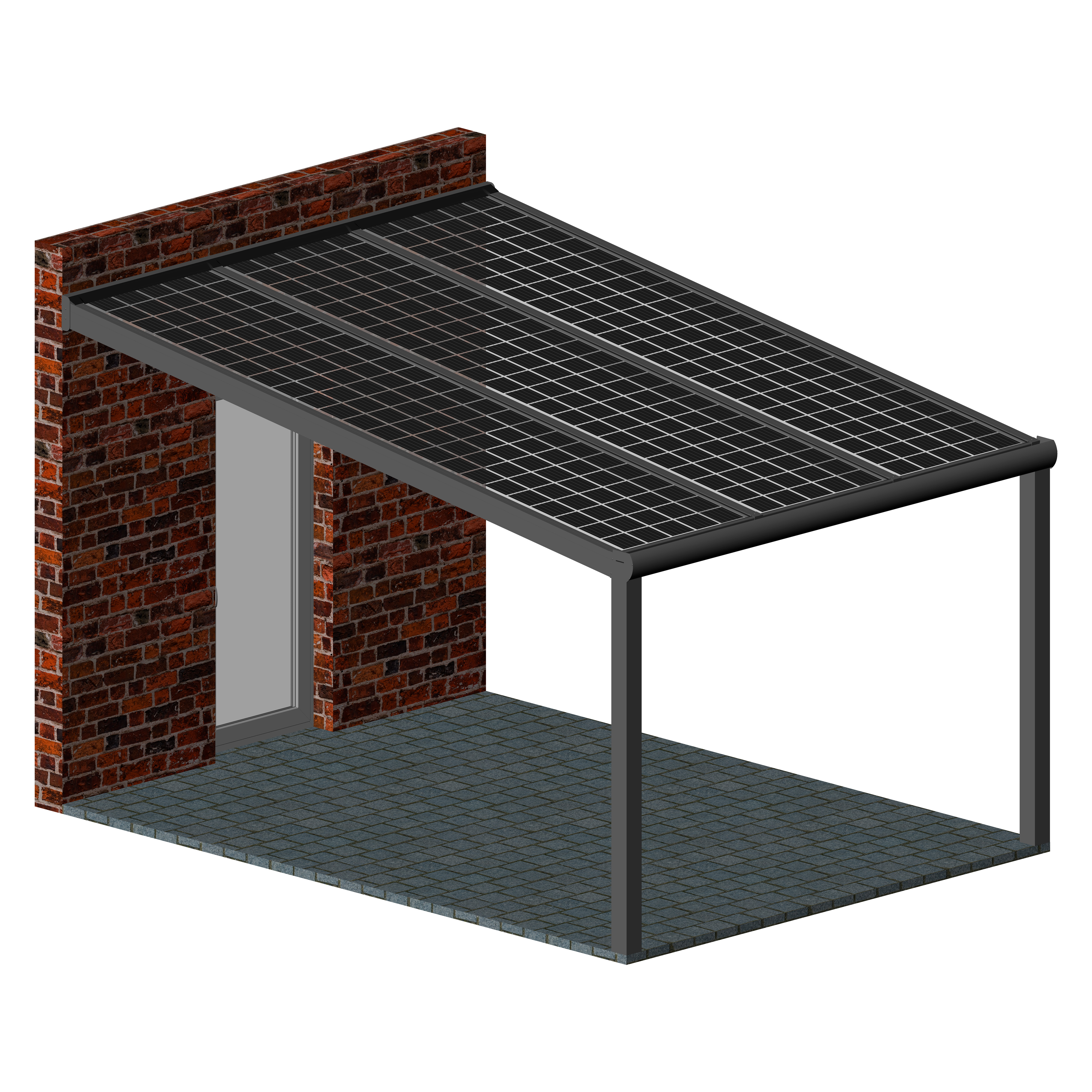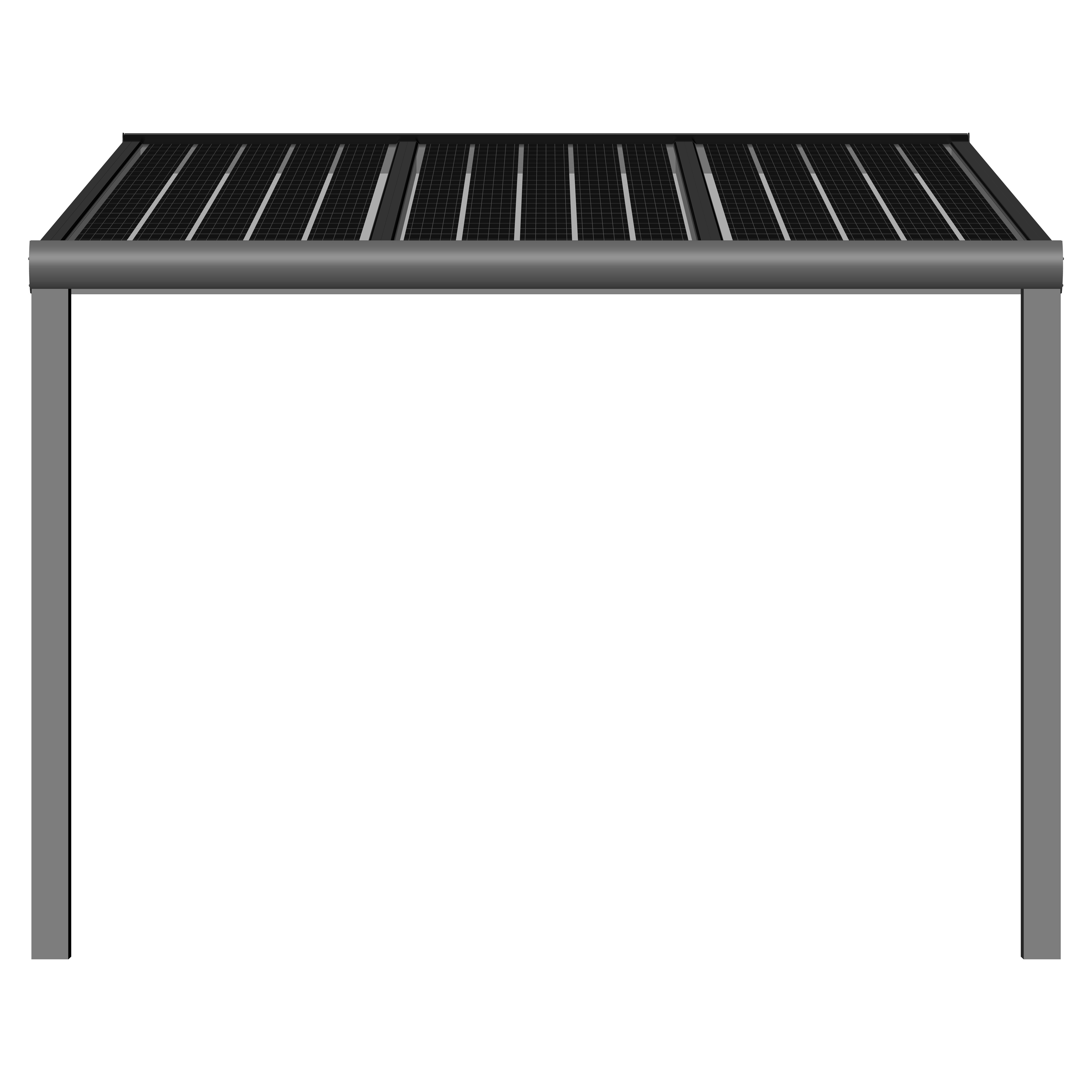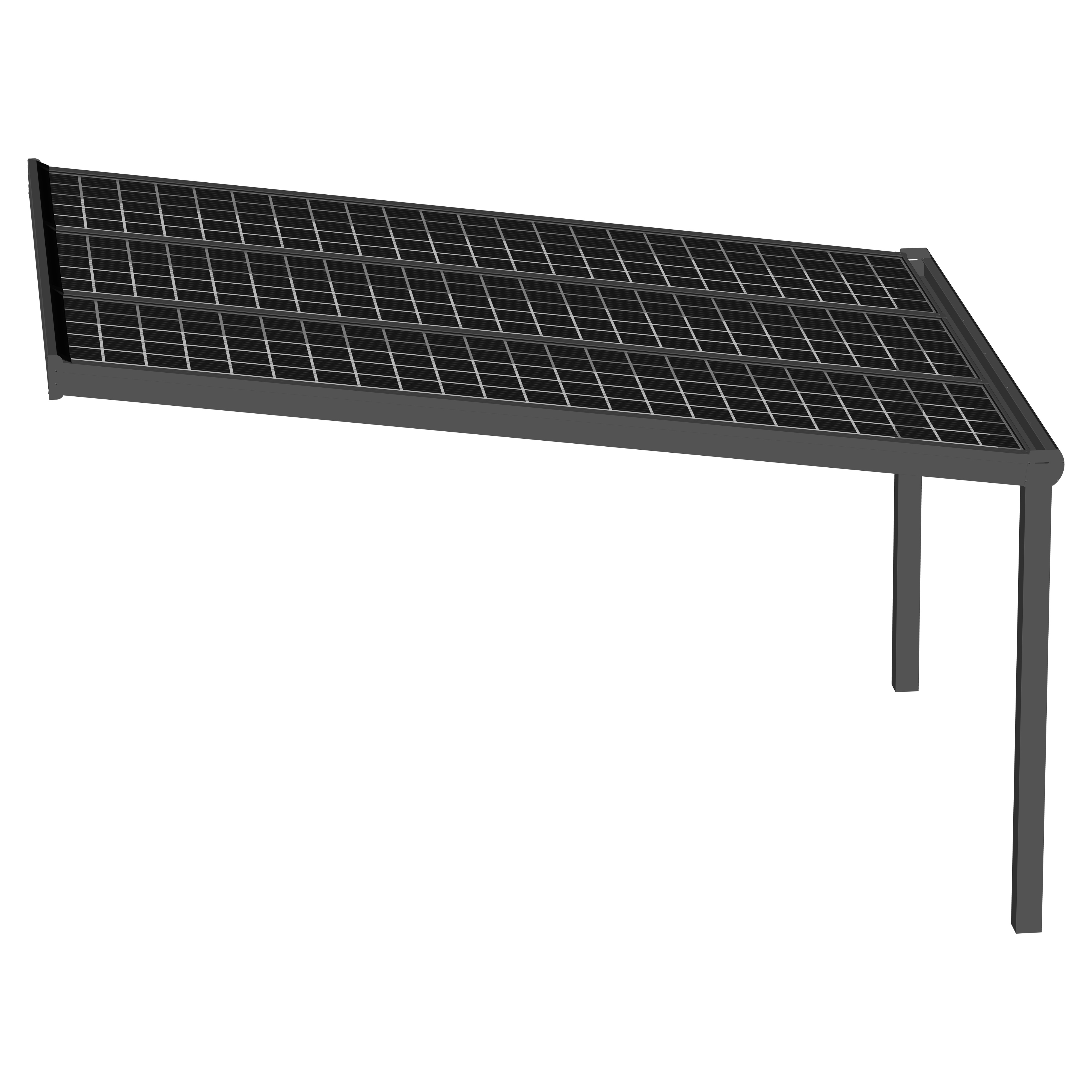 Hochwertige und kostengünstige Überdachung mit Photovoltaik Modulen aus pulverbeschichtetem Aluminium.