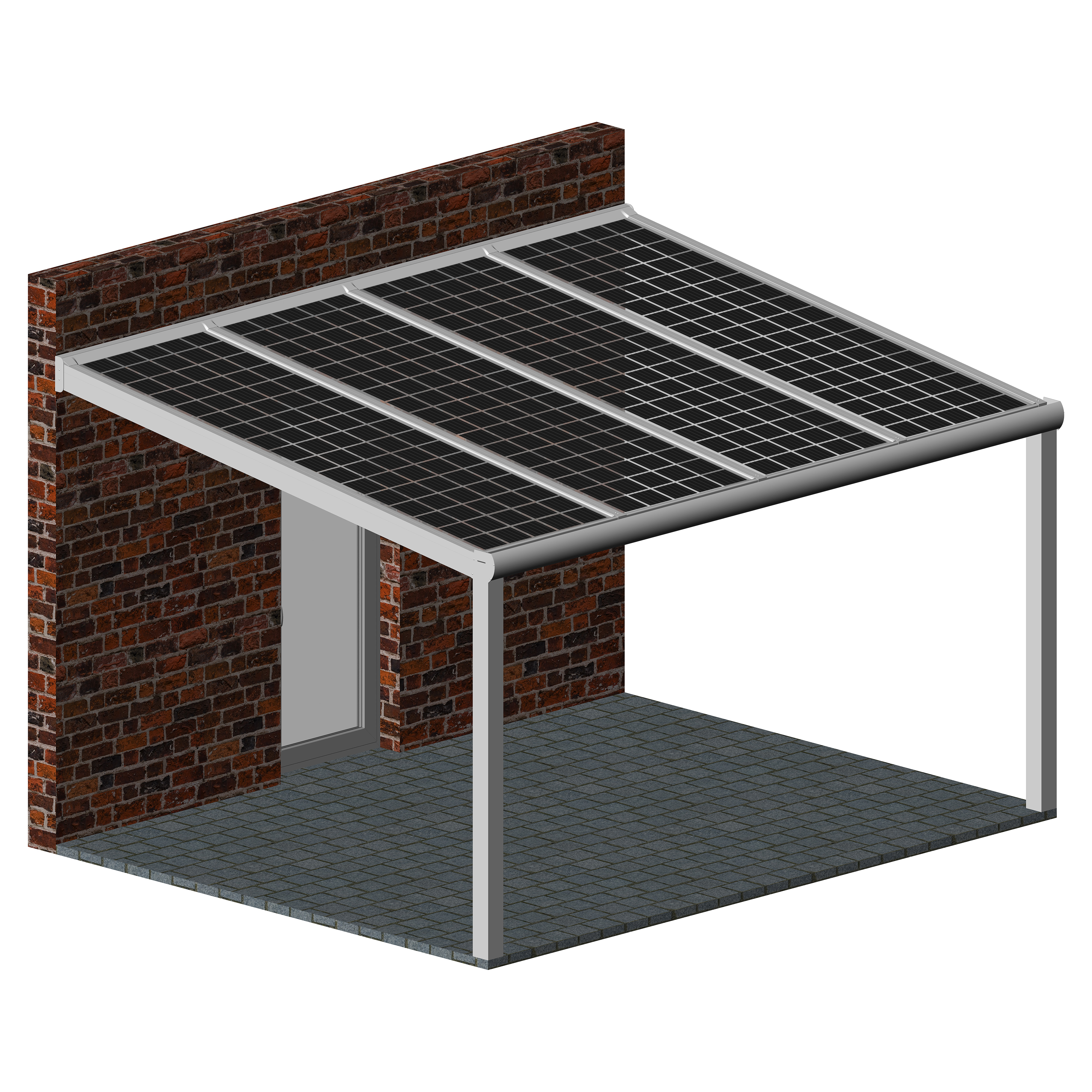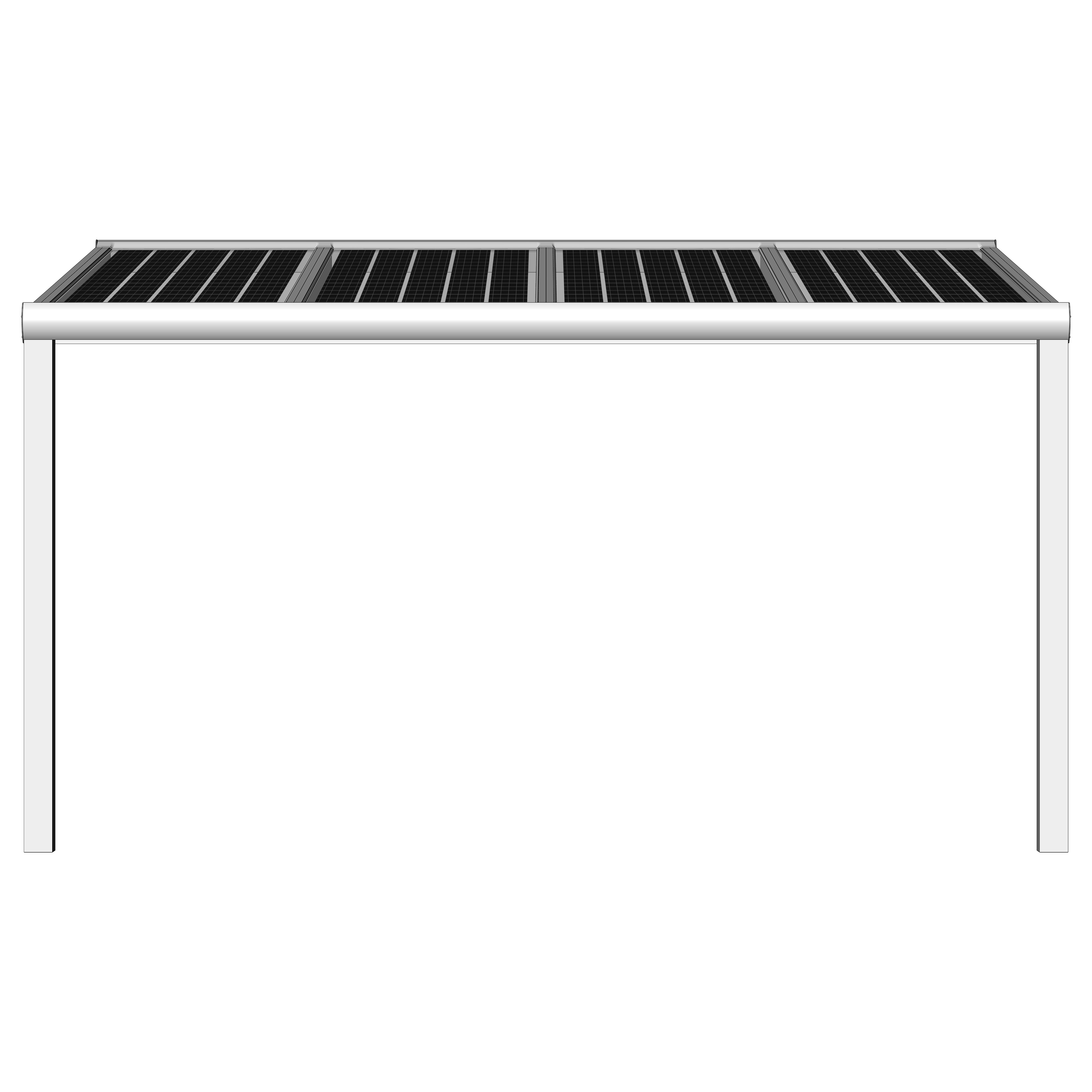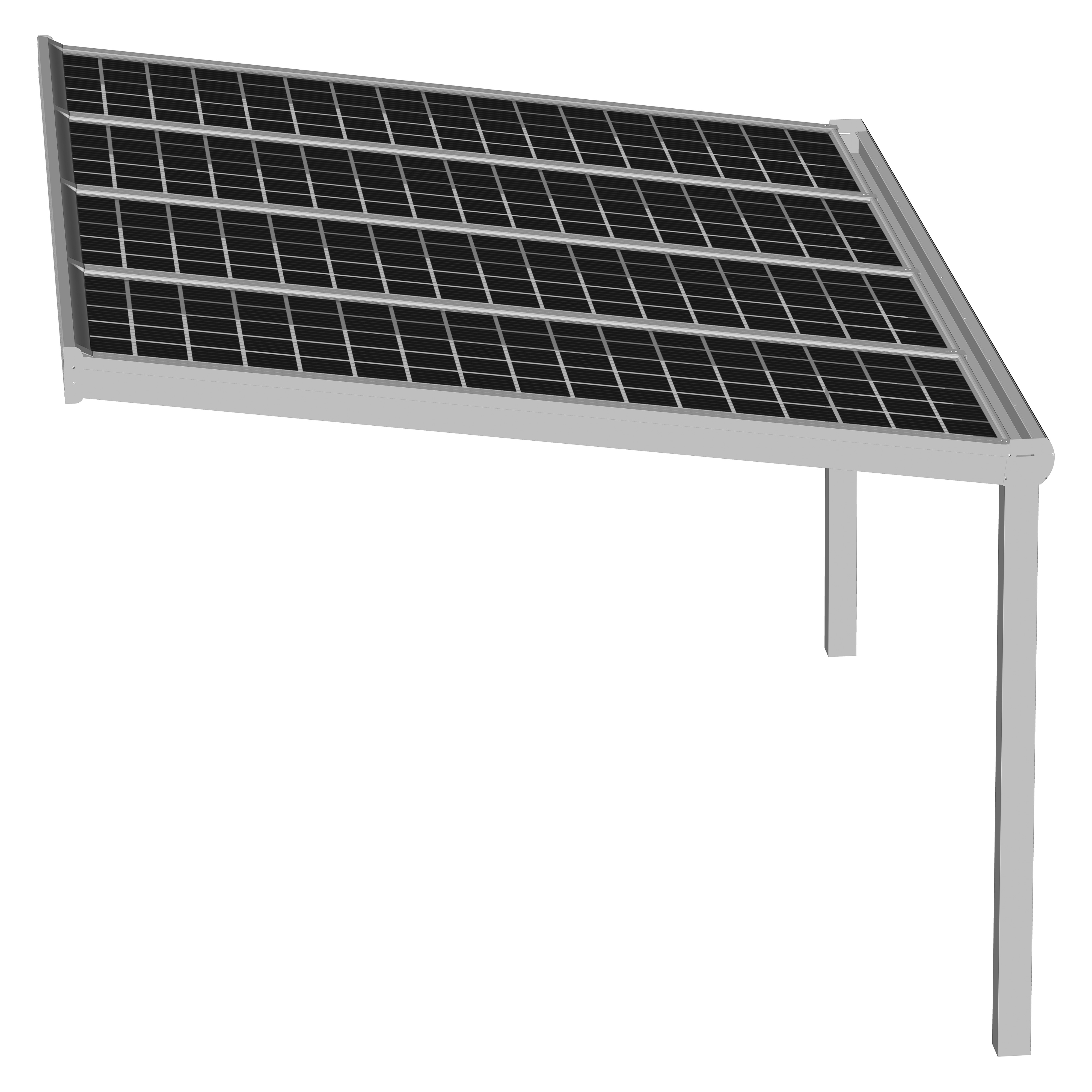 Hochwertige und kostengünstige Überdachung mit Photovoltaik Modulen aus pulverbeschichtetem Aluminium.