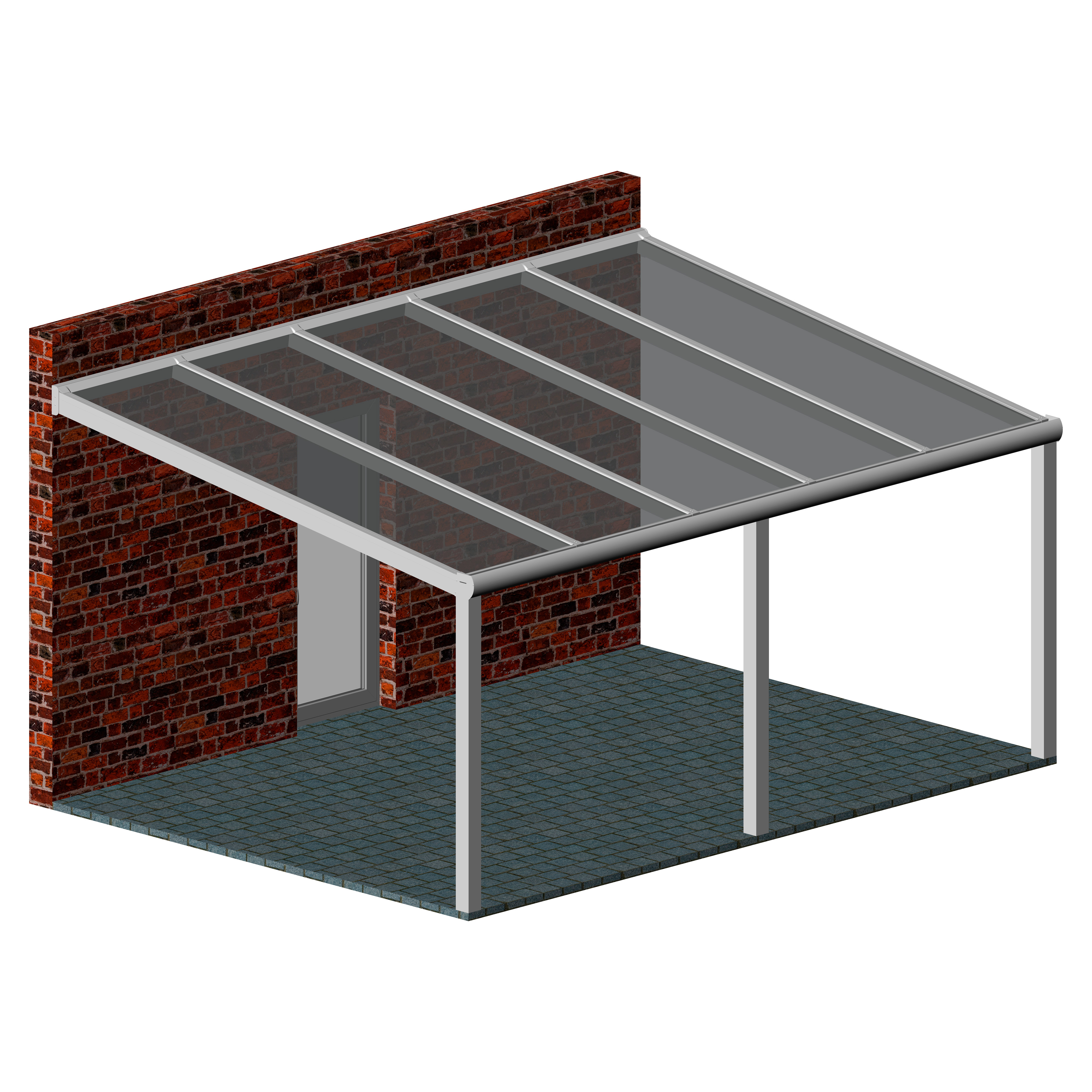 Hochwertige und kostengünstige Terrassenüberdachung aus pulverbeschichtetem Aluminium.