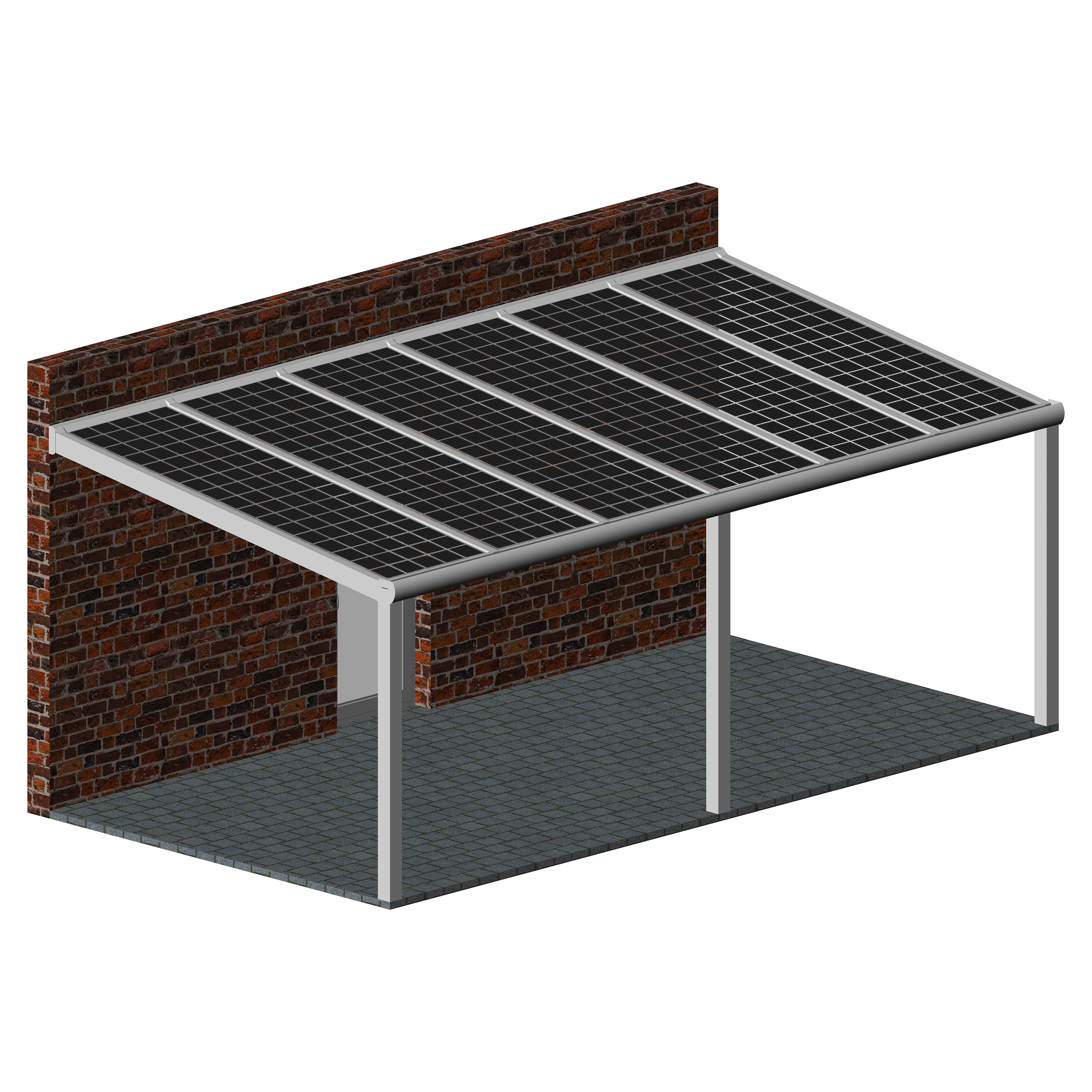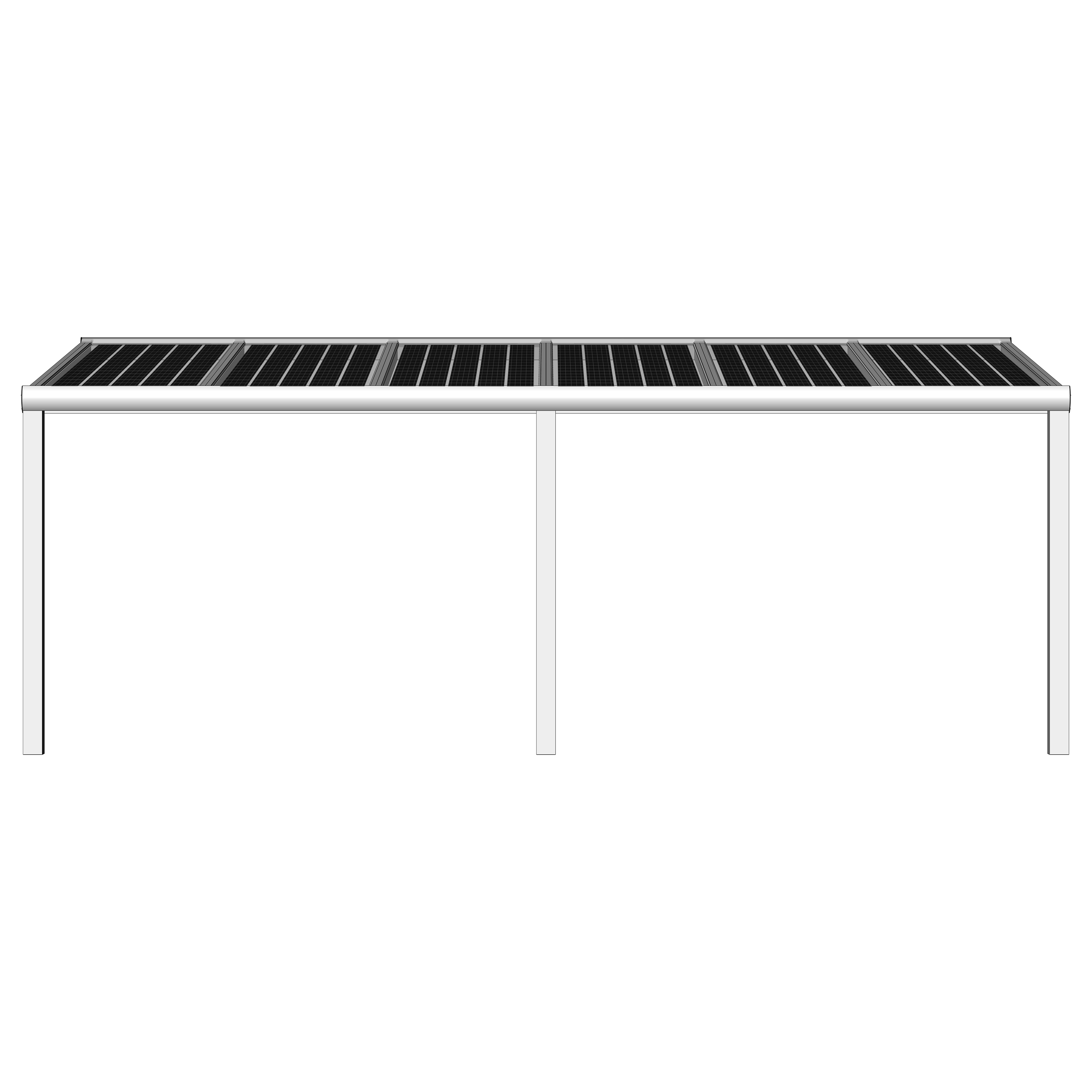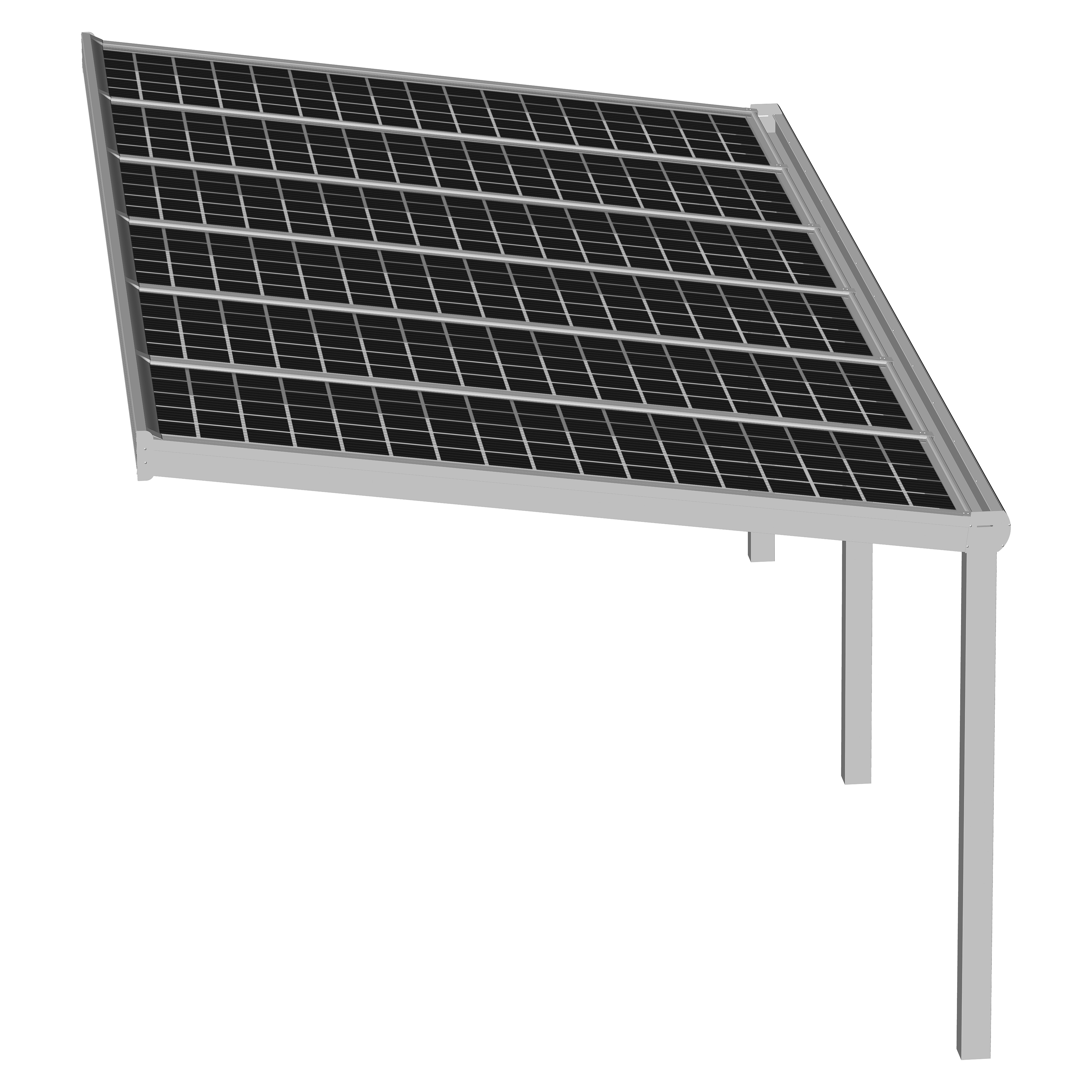 Hochwertige und kostengünstige Überdachung mit Photovoltaik Modulen aus pulverbeschichtetem Aluminium.