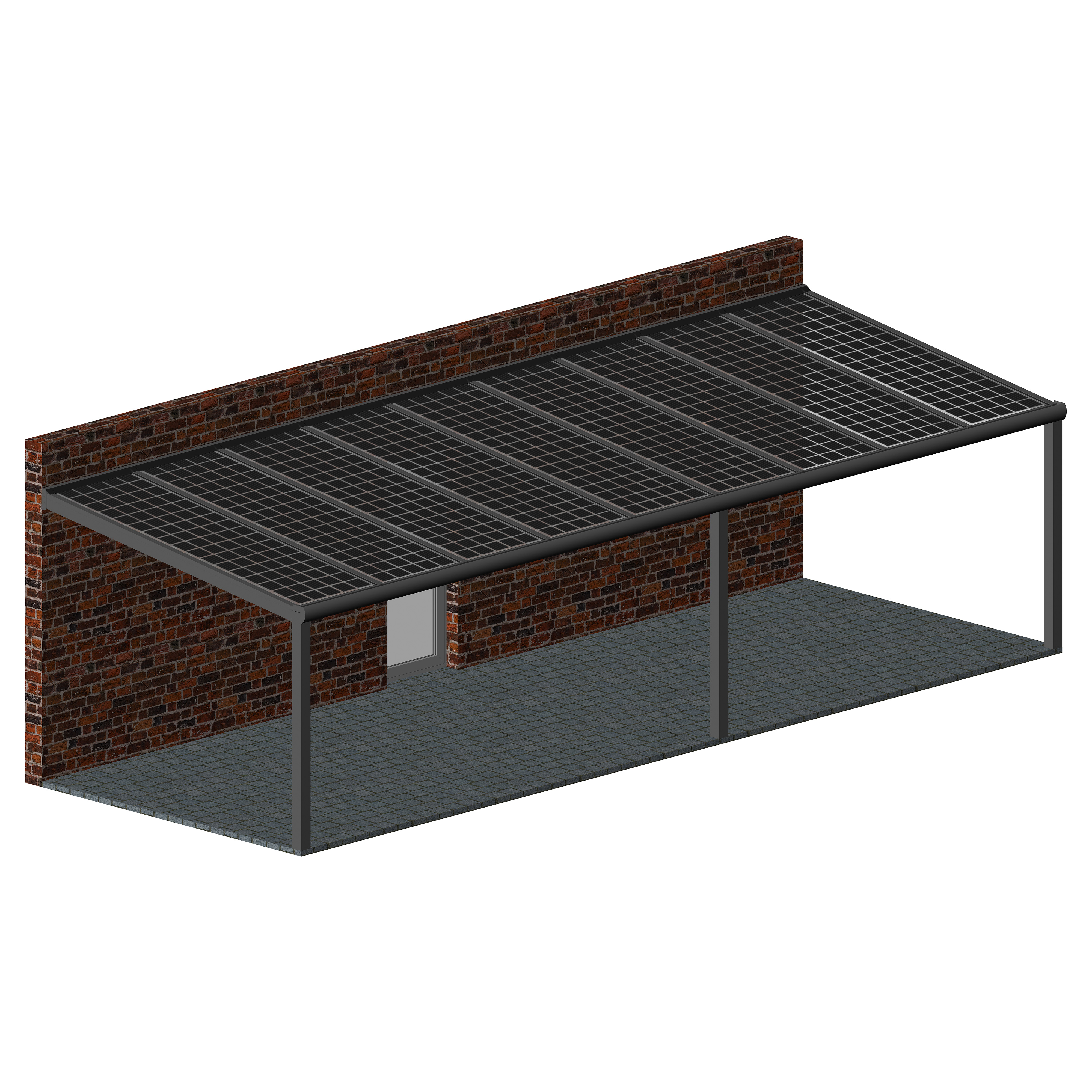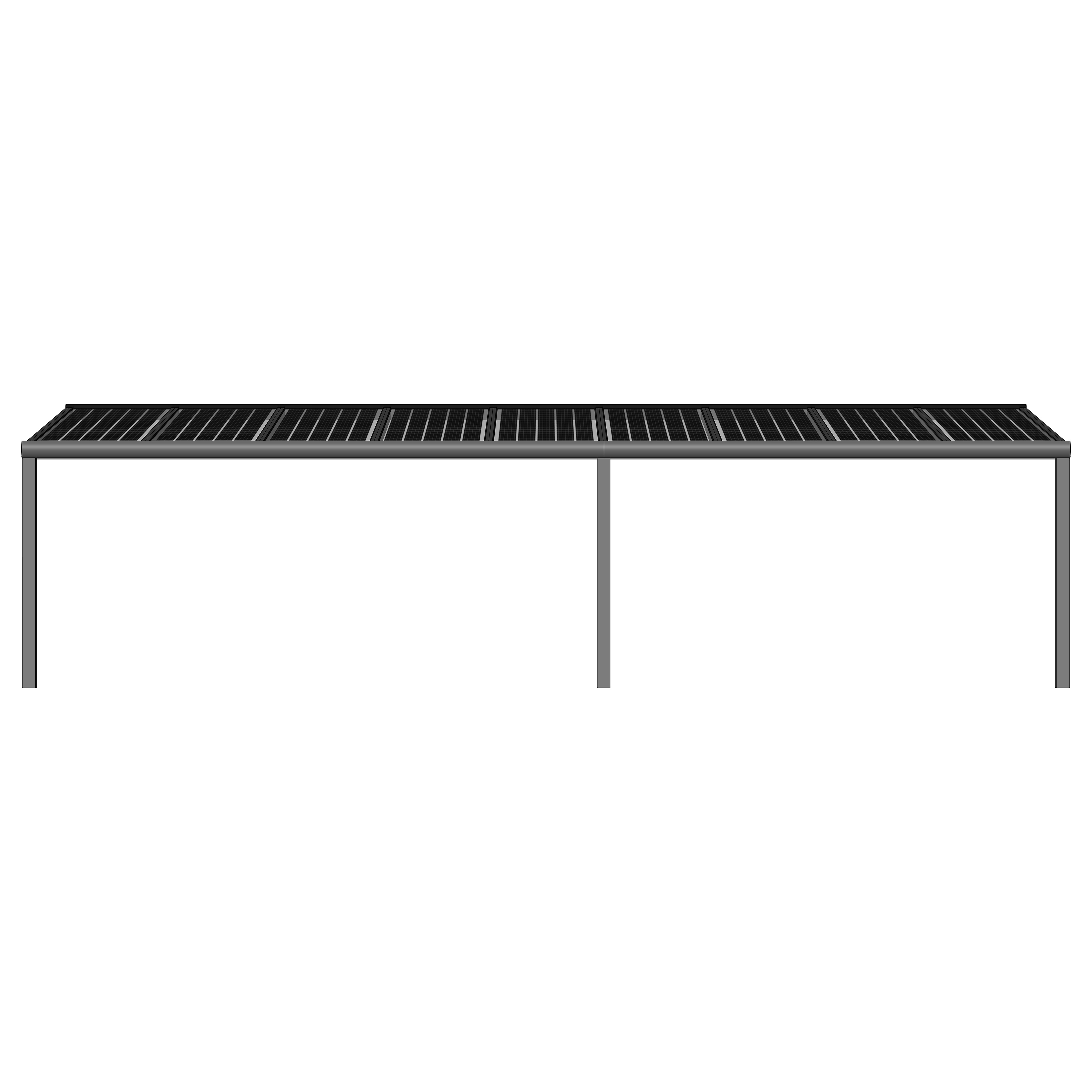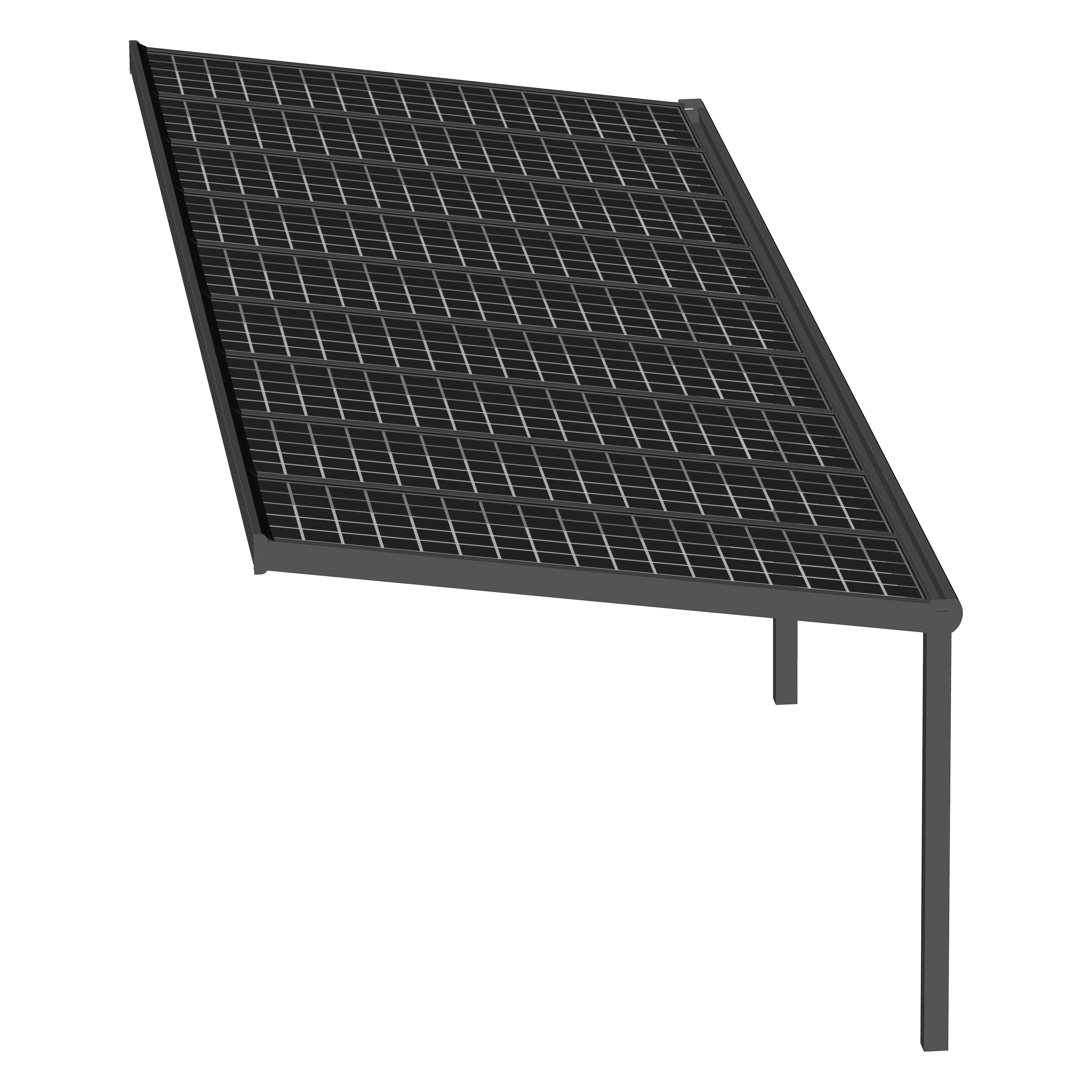 Hochwertige und kostengünstige Überdachung mit Photovoltaik Modulen aus pulverbeschichtetem Aluminium.