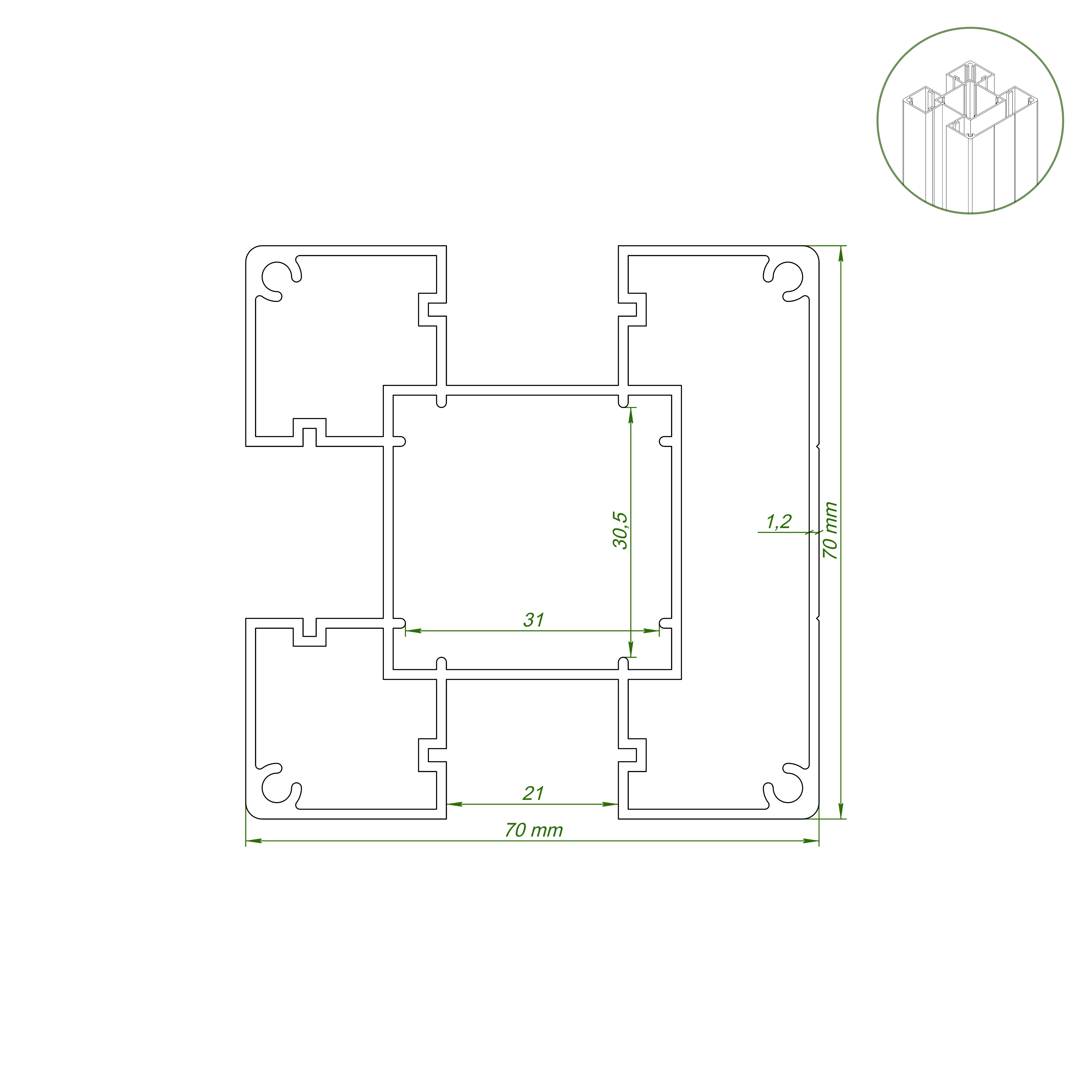 | Maße | 2500×70×70mm |