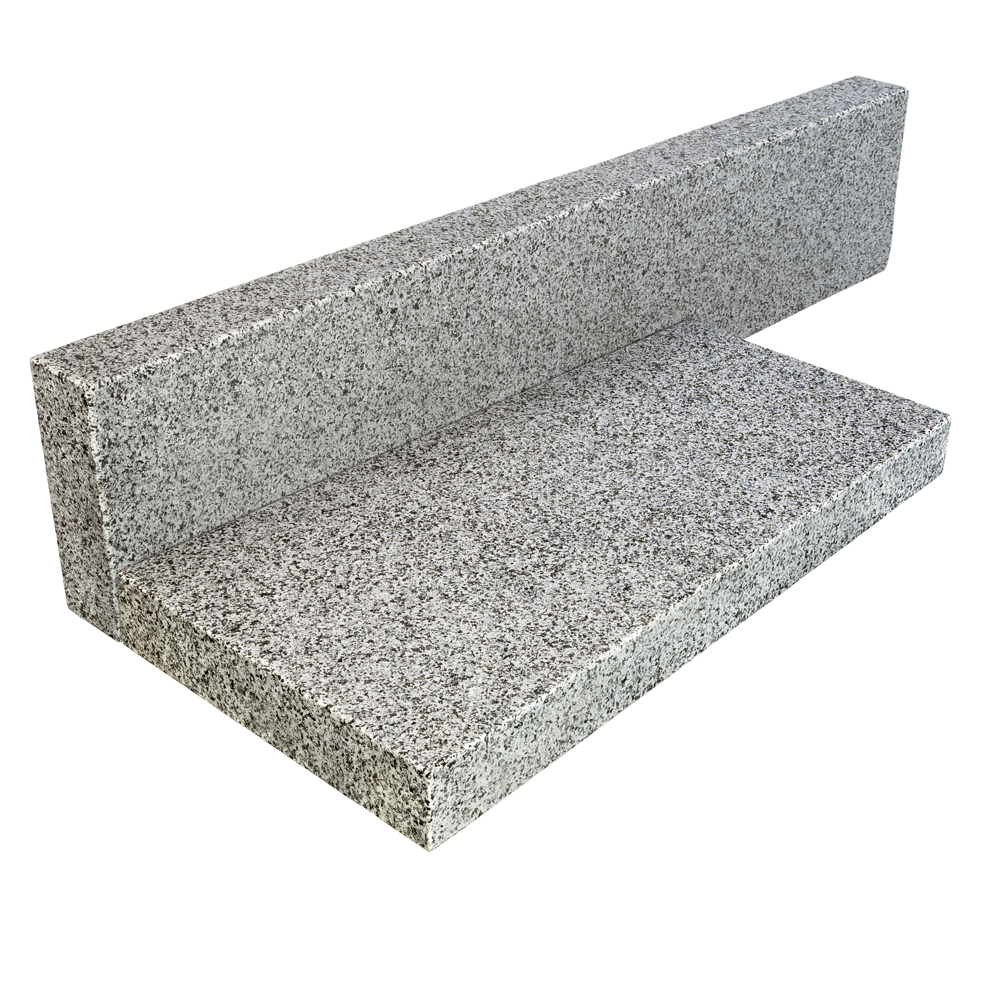 Der Endstein aus Granit erhält durch die geflammte Oberfläche ausreichend Rutsch- und Gleitwiderstand.