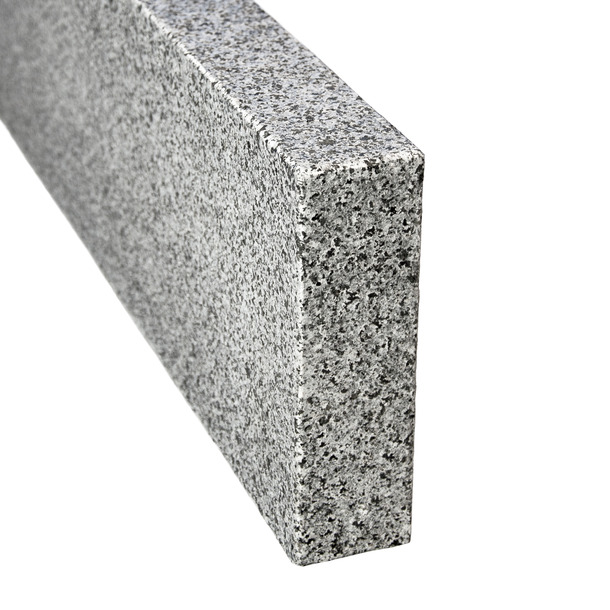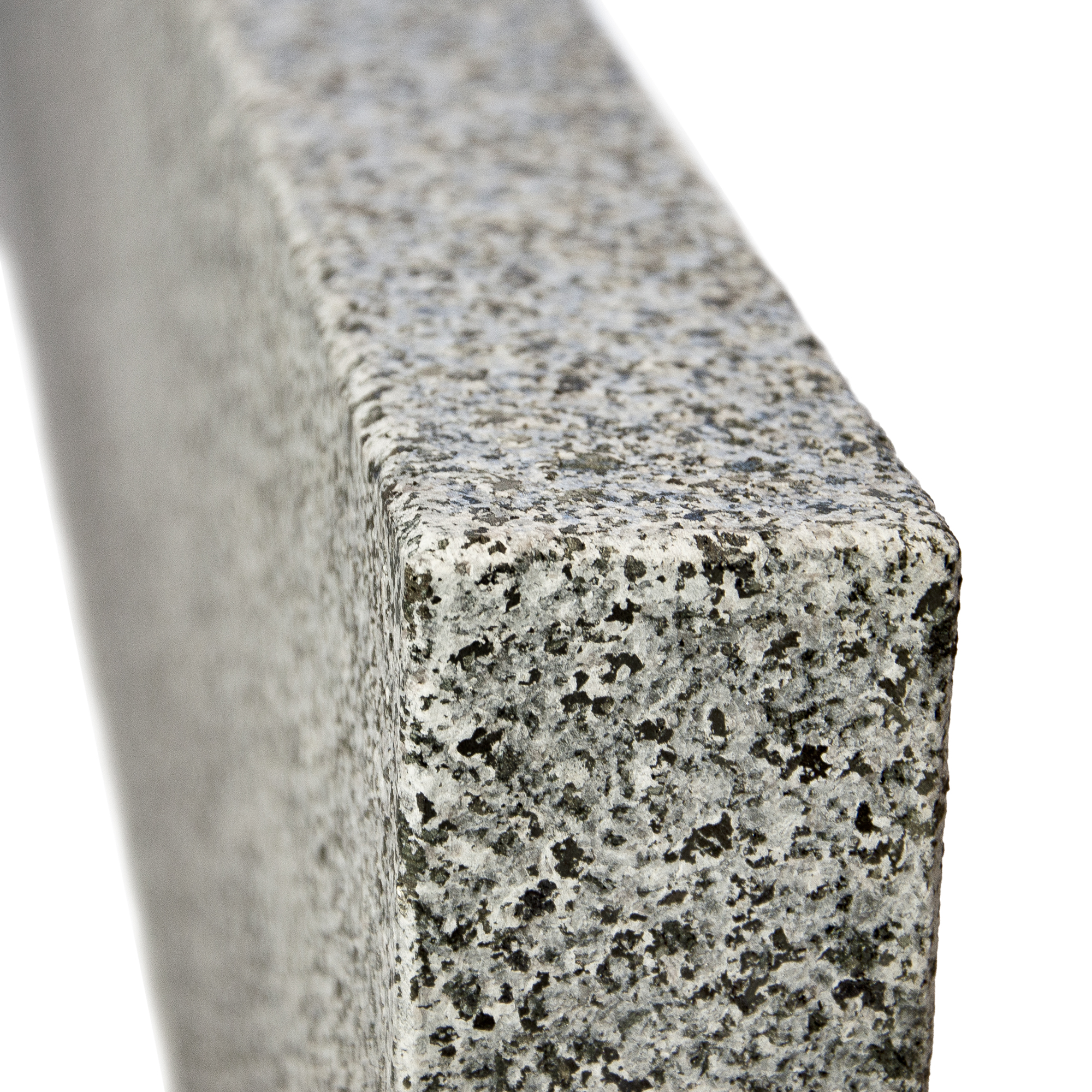 Der Endstein aus Granit erhält durch die geflammte Oberfläche ausreichend Rutsch- und Gleitwiderstand.