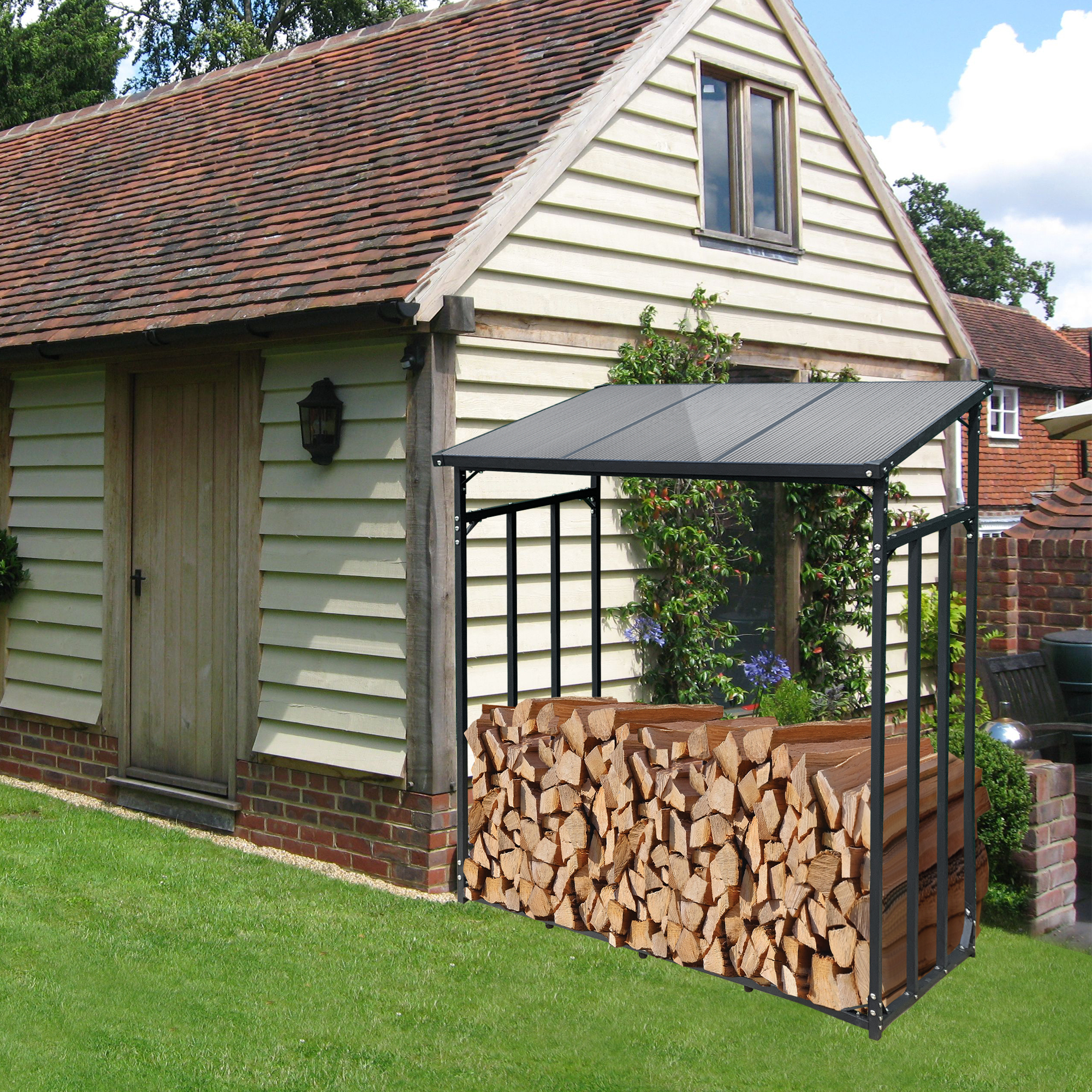 Mit dem Kaminholzregal das Feuerholz zuverlässig und sicher vor schlechter Witterung schützen.