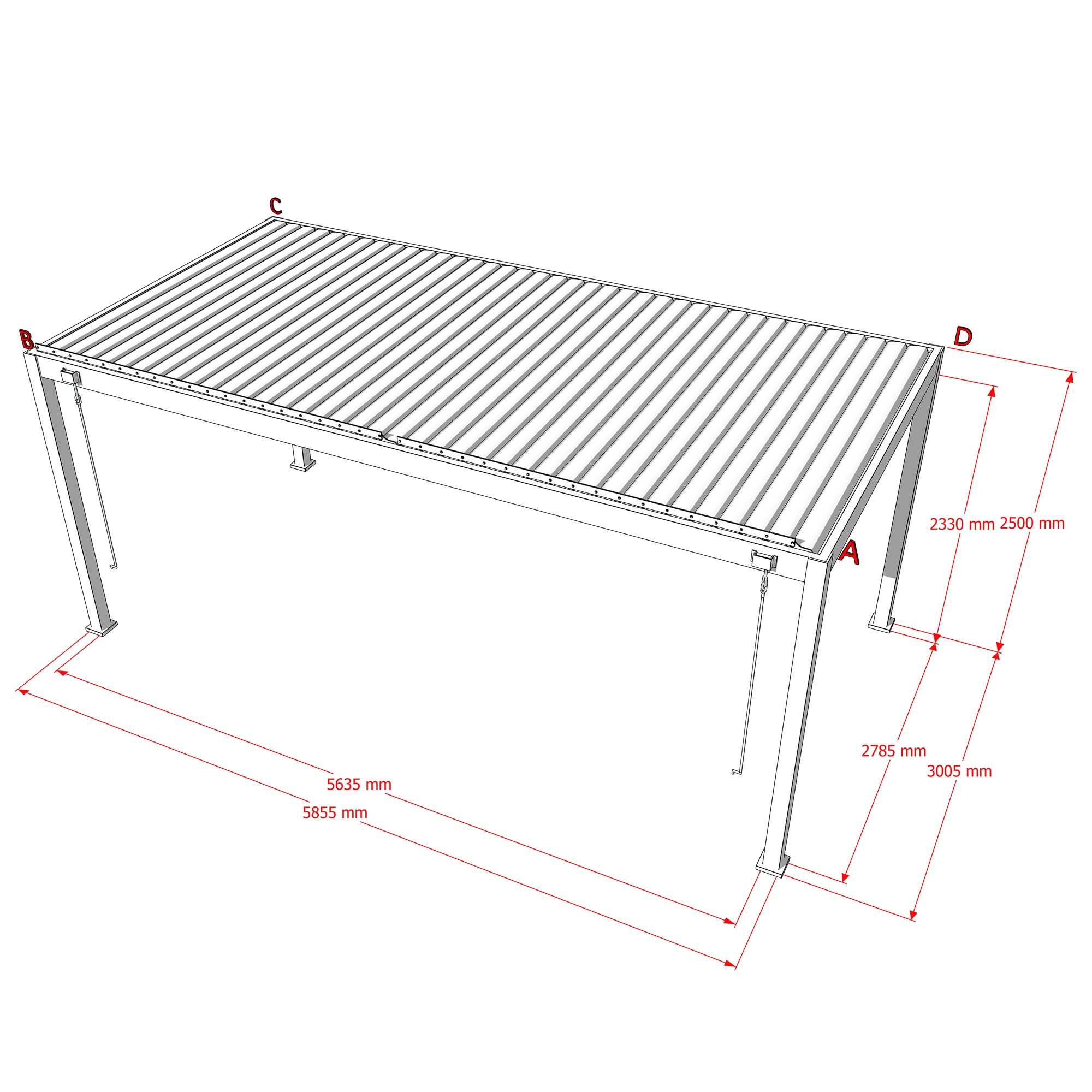 Maße Pergola (LxBxH): 3005x5855x2500 mm