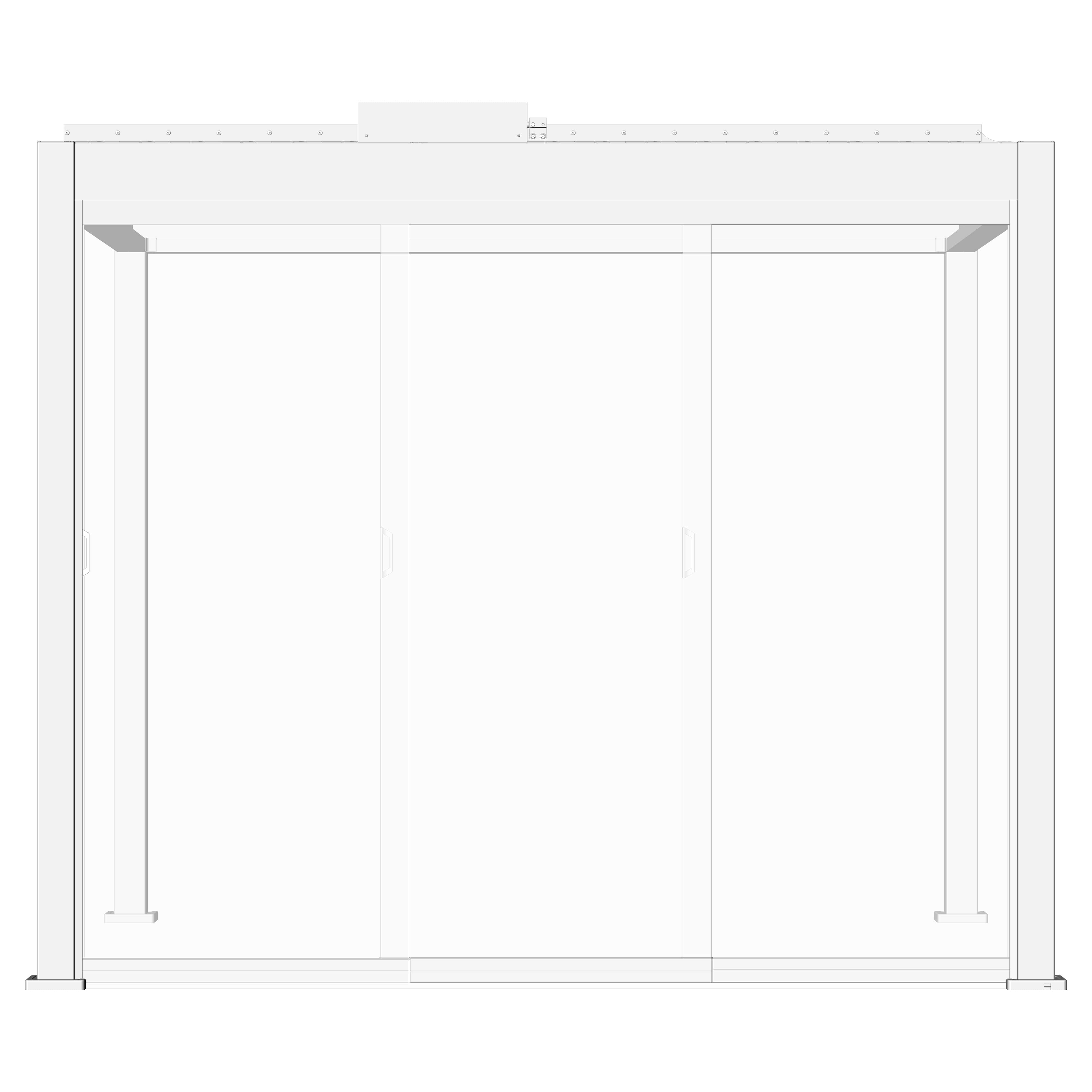 1x Glasschiebewand 2,9 x 2,35 Meter 3-türig Glas Klar Weiß
